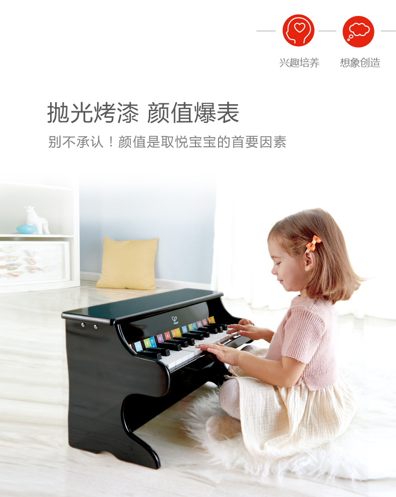 Hape儿童木制机械小钢琴 3-6岁男女小孩儿童音乐玩具早教儿童节礼物 25键钢琴黑色 E8463