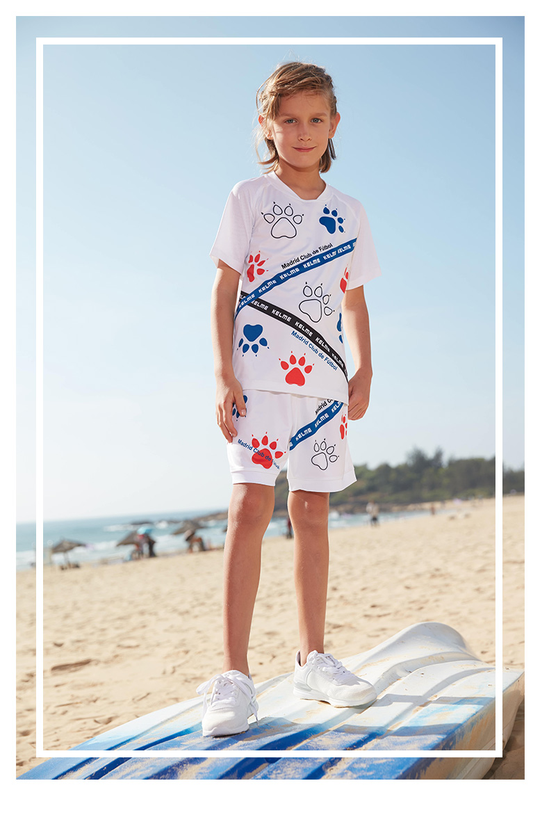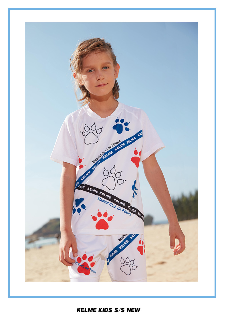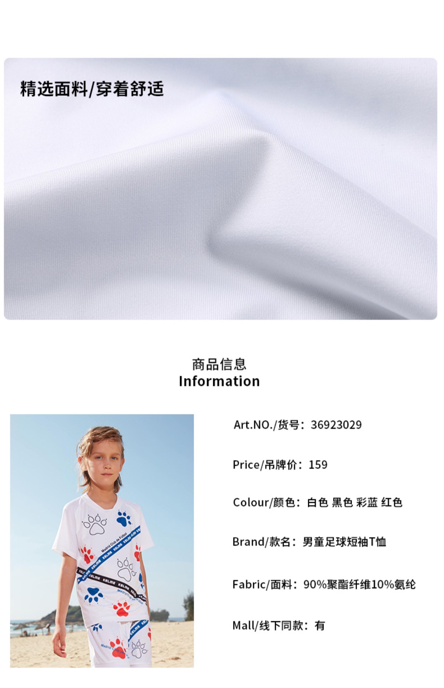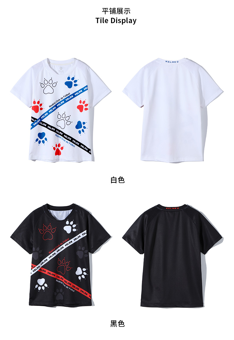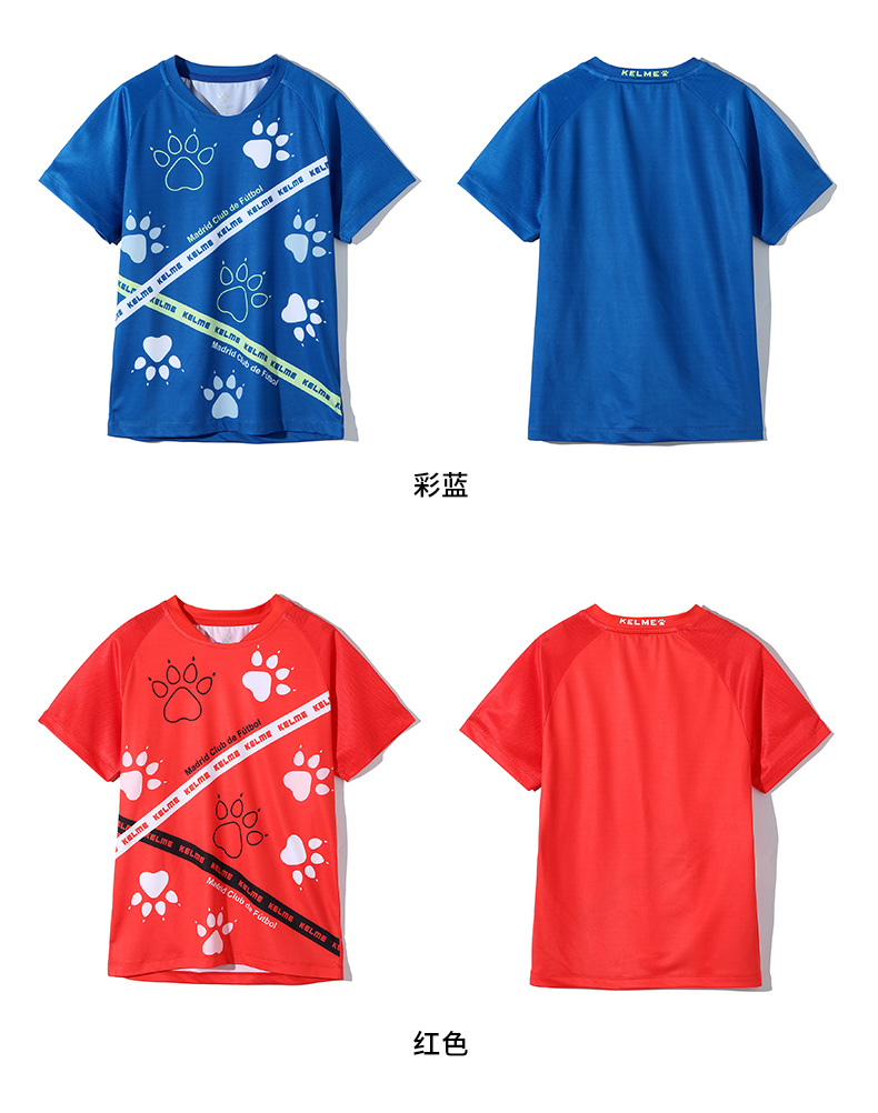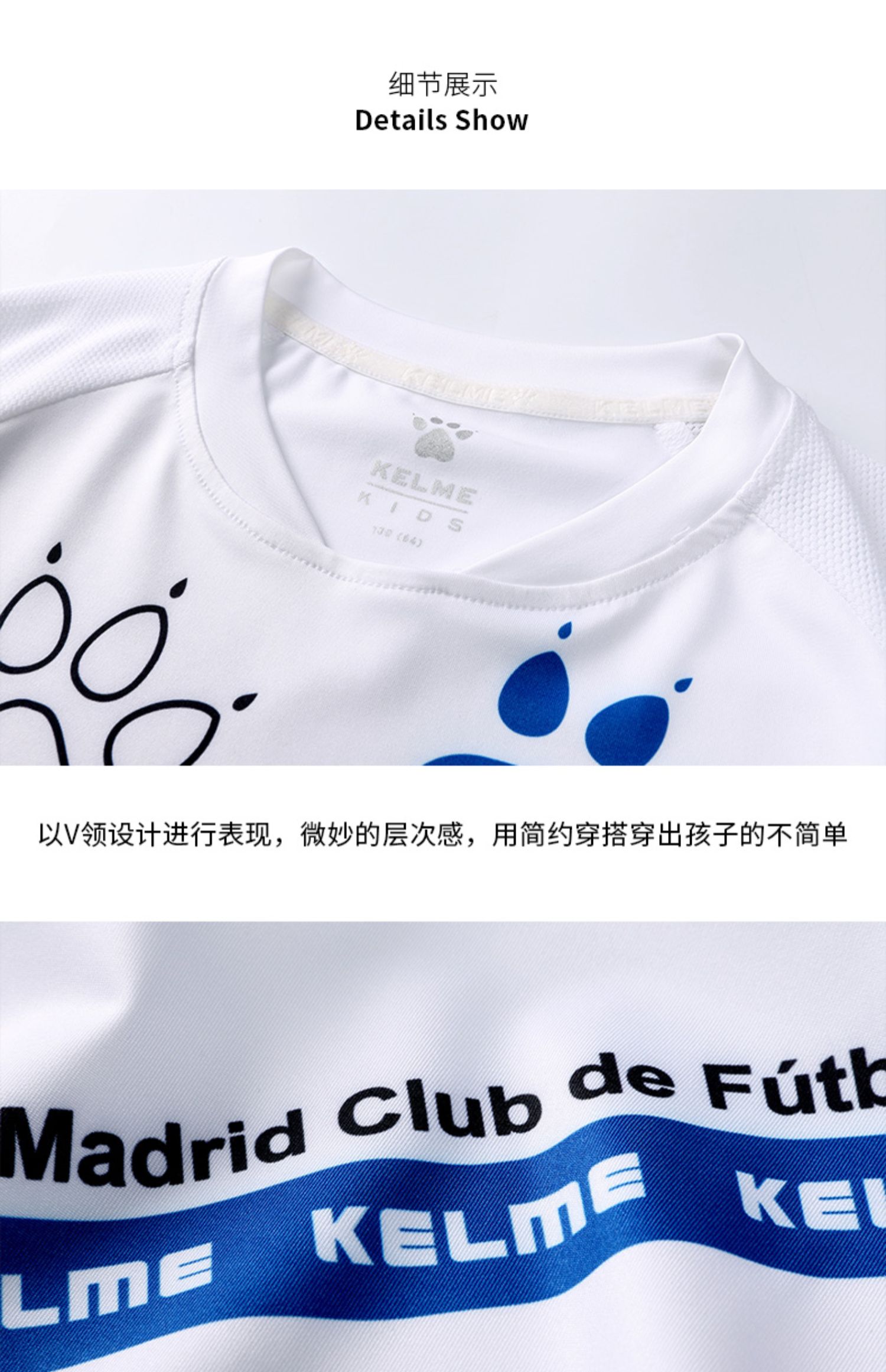 kelme(kids)男童短袖T恤打底衫logo印花中大童圆领童装儿童上衣