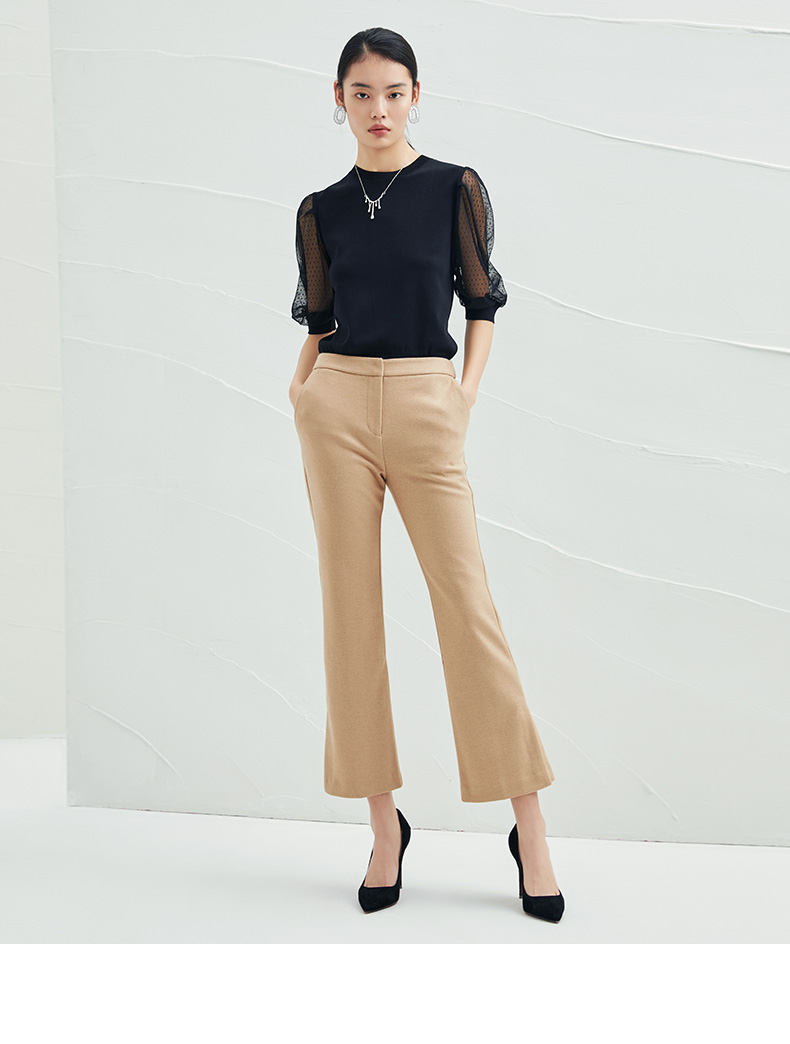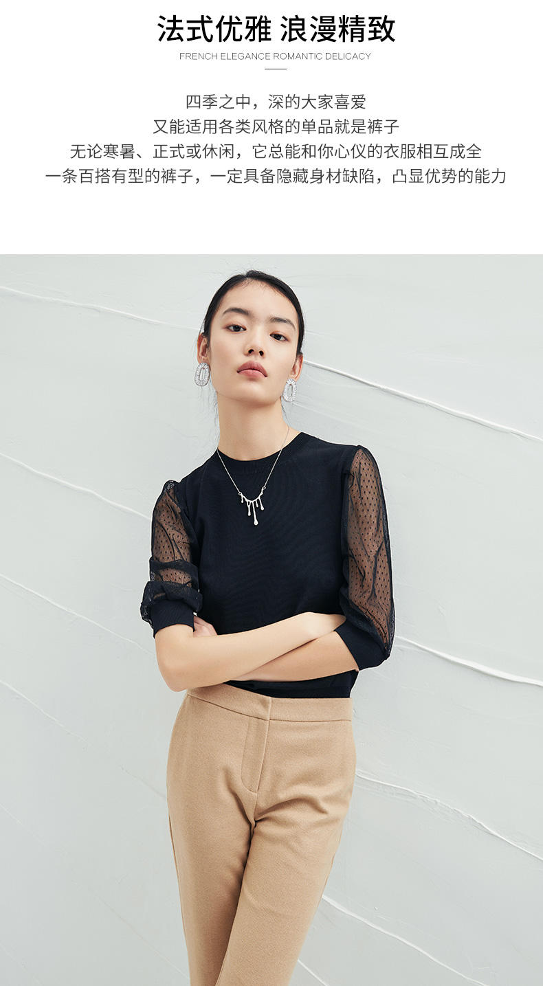 EITIE爱特爱品牌女装冬季修身OL风格长袖纯色针织衫女5801511