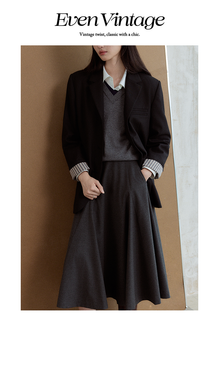 Even Vintage|优雅气质重工A字大裙摆高腰百褶裙显瘦半身裙中长款