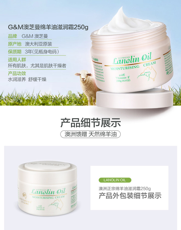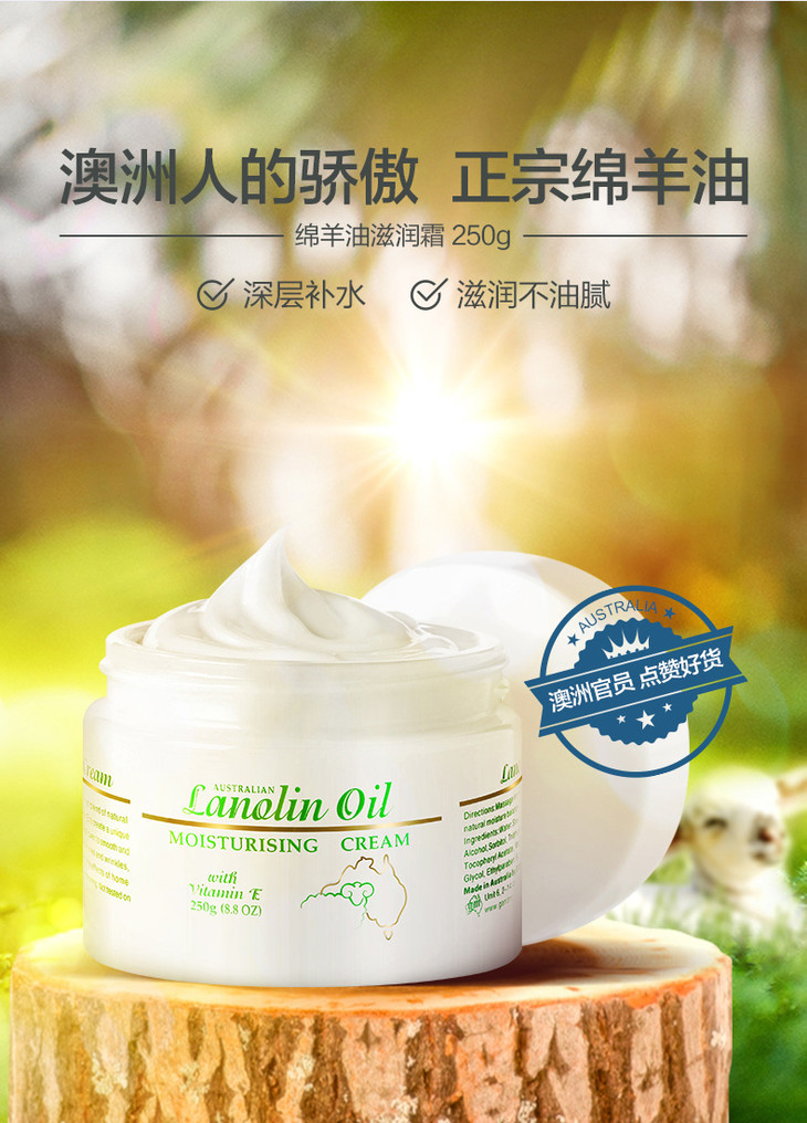 【澳洲原装进口绵羊油霜畅销5000万罐22年老品牌】澳芝曼澳洲绵羊油VE滋润面霜250g素颜补水保湿霜护肤