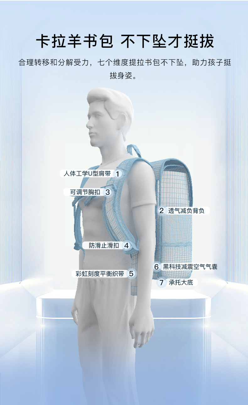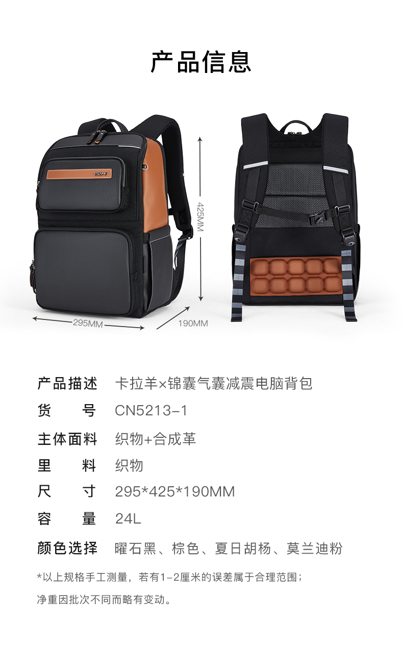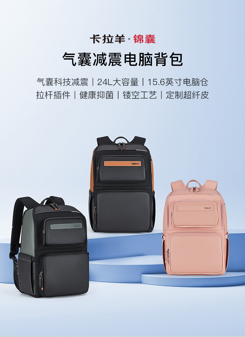 【气囊减震顶配】卡拉羊X锦囊7维防下坠减负24L双肩防盗电脑背包CN5213-1(TX)