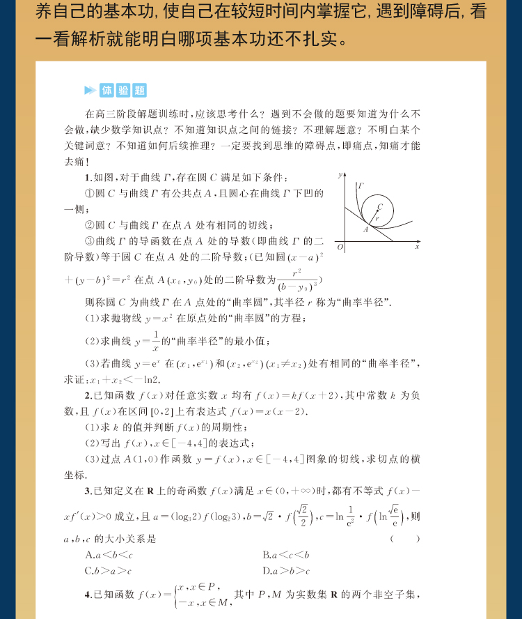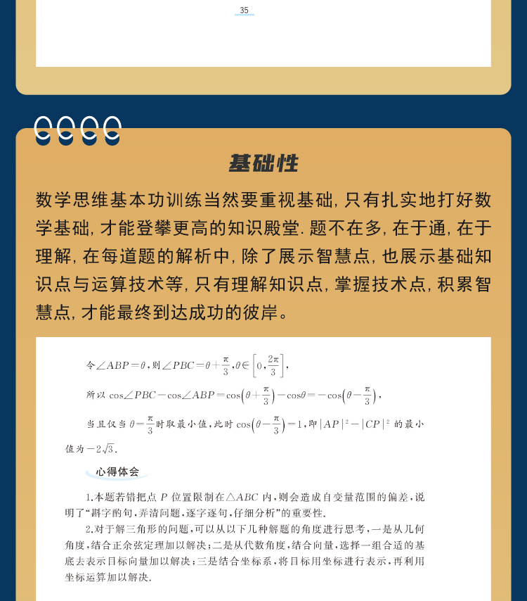 本书直面学生解题痛点,将高中数学基本功养育过程与数学解题中痛点解除有机结合,着眼每个数学基本功与求解中的技术点、智慧点融合,帮助学生有效提高成绩,提升思维能力。本书从养育数学核心素养的8个抓手入手,全书共有8章,第一章审题基本功,第二章运算基本功,第三章画图基本功,第四章技术基本功,第五章策略基本功,第六章表达基本功,第七章命题基本功,第八章建模基本功,每章包含9节,每节有3个例题,章后附8个体验题.涉及280个问题。