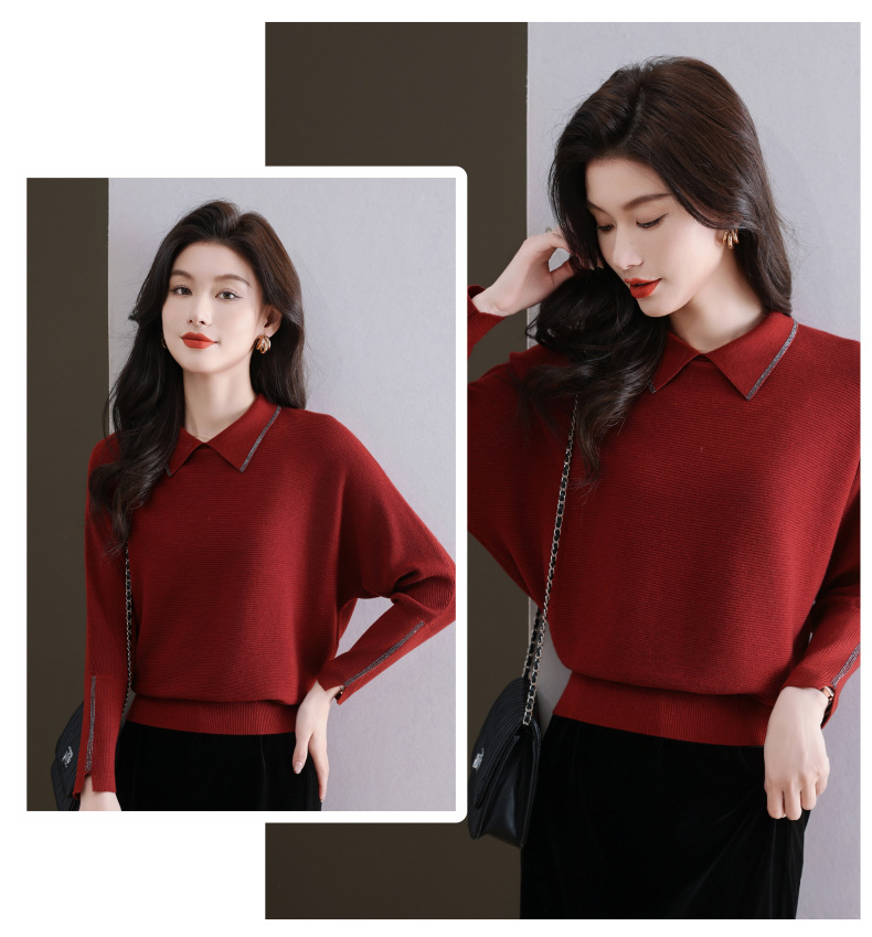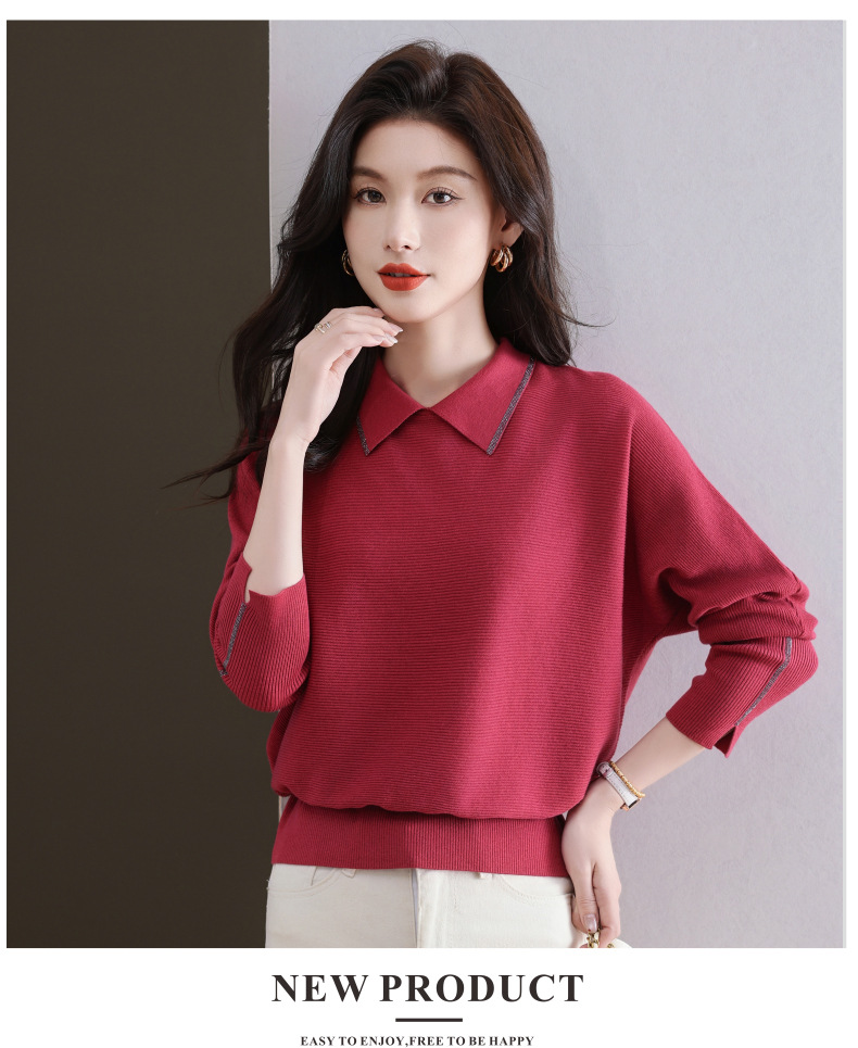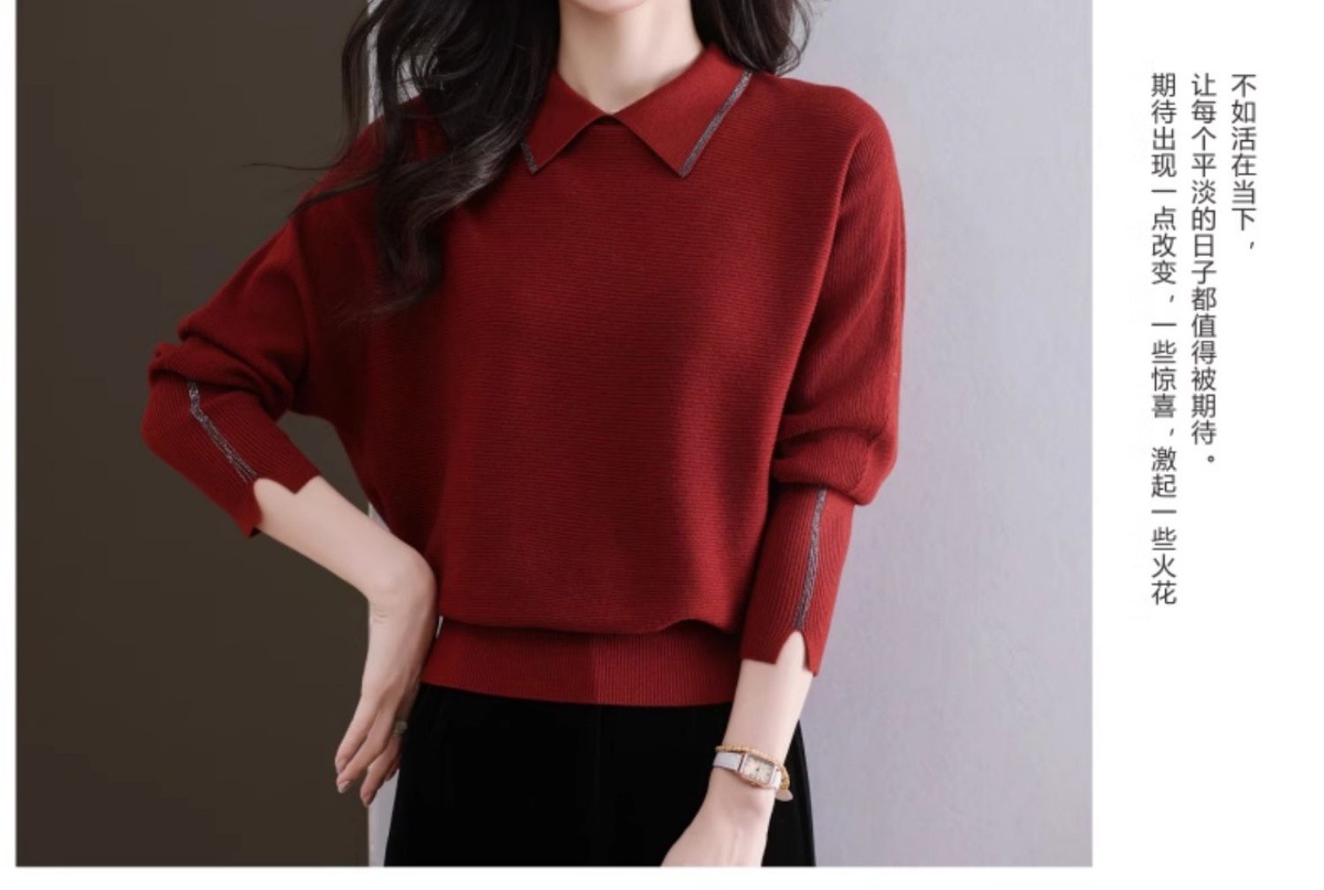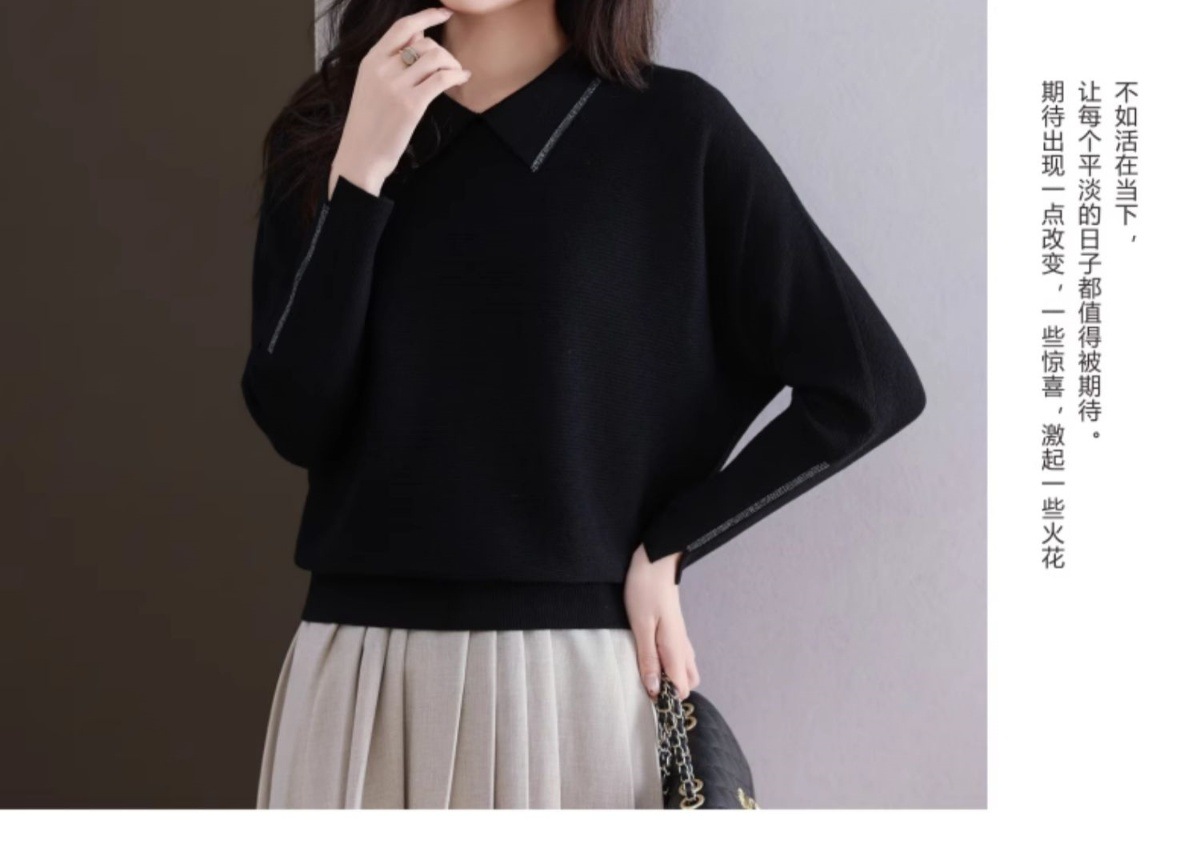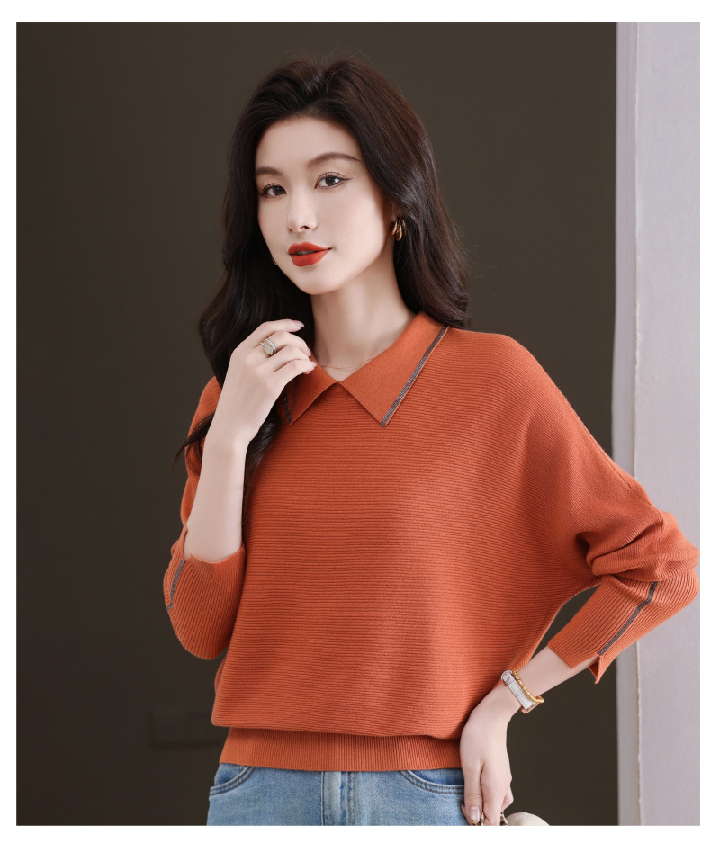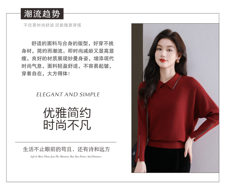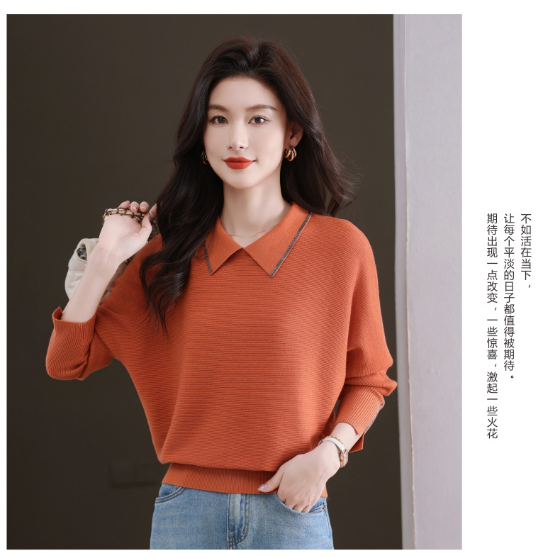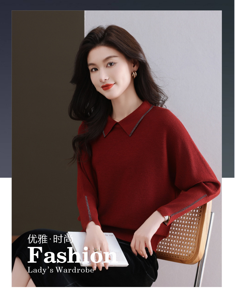 CC-5-6070秋冬季翻领针织打底衫女妈妈新款蝙蝠衫上衣宽松大码遮肚毛衣内搭