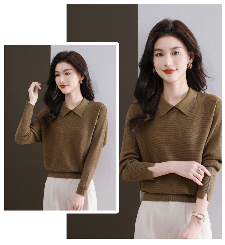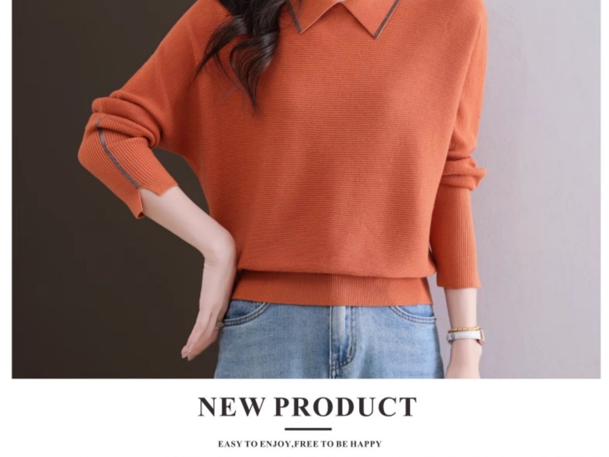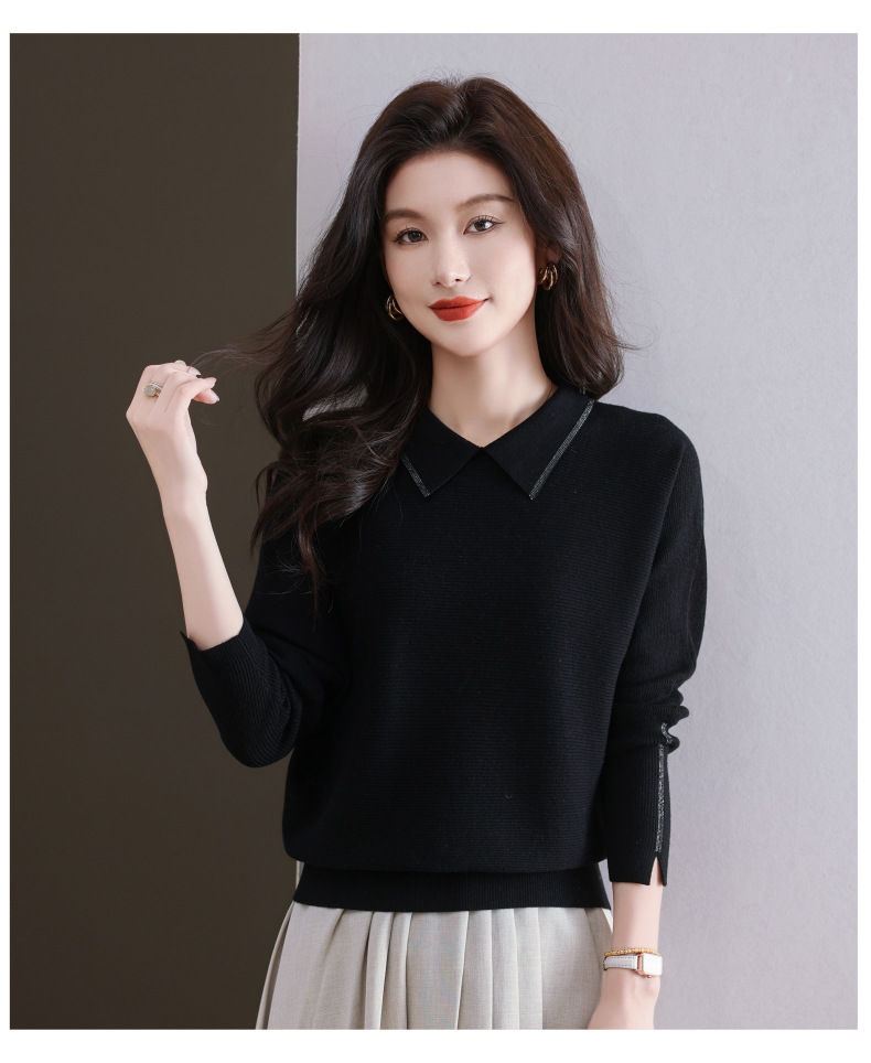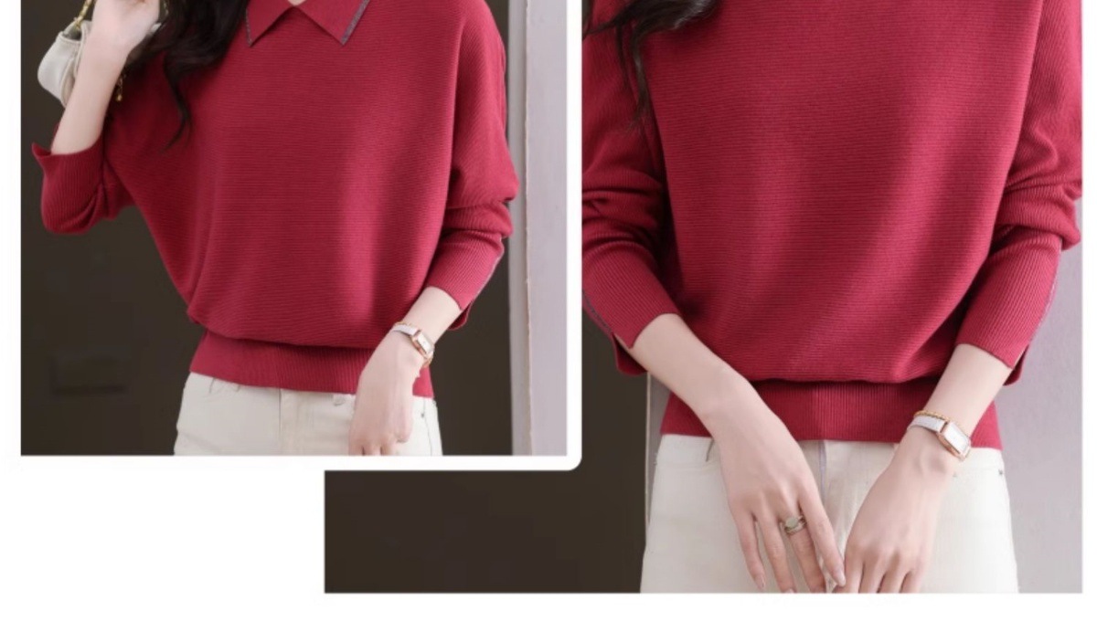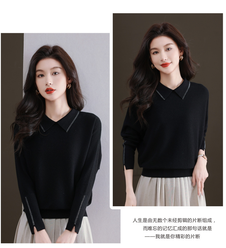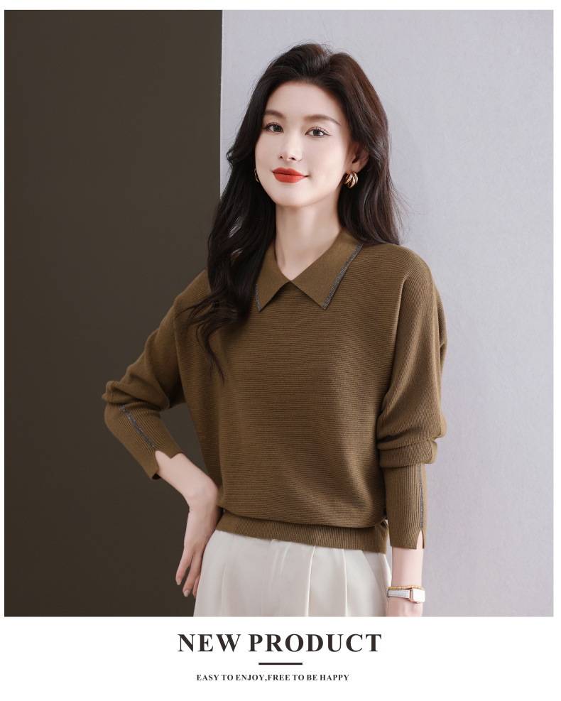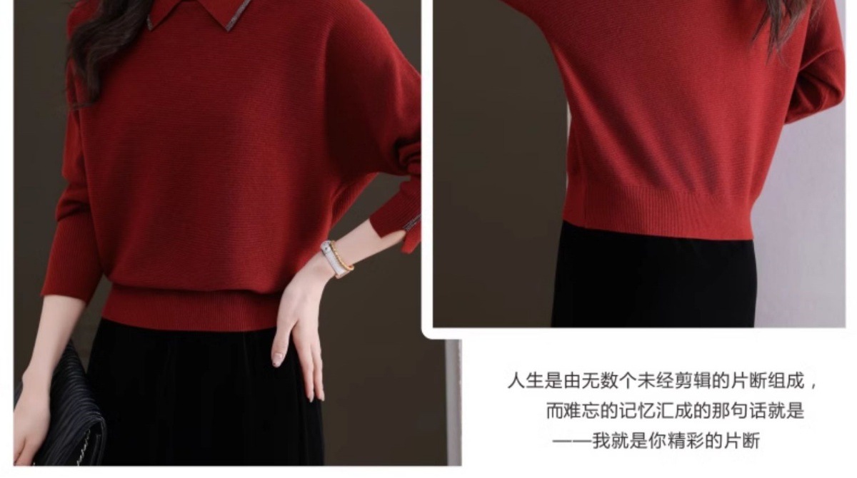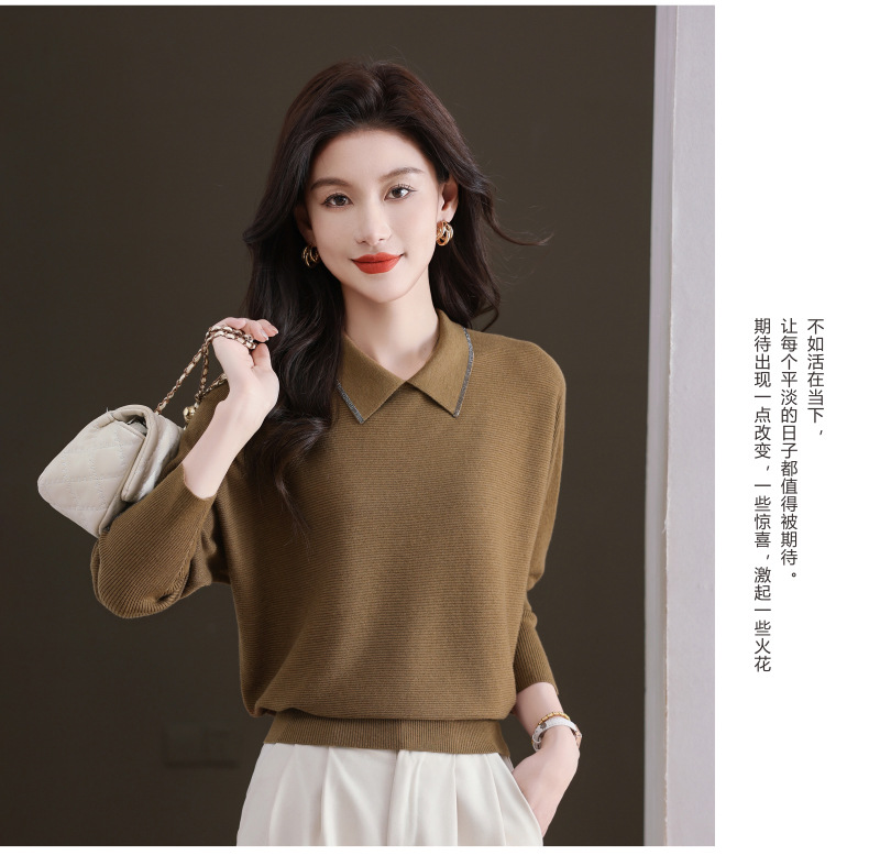 CC-5-6070秋冬季翻领针织打底衫女妈妈新款蝙蝠衫上衣宽松大码遮肚毛衣内搭