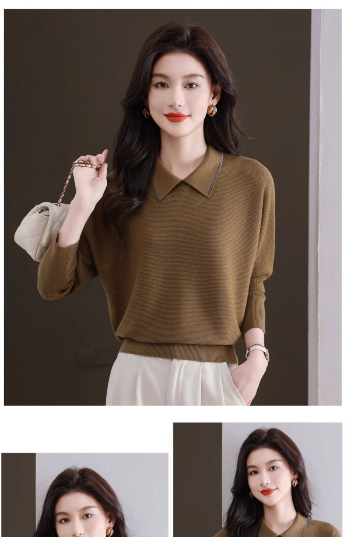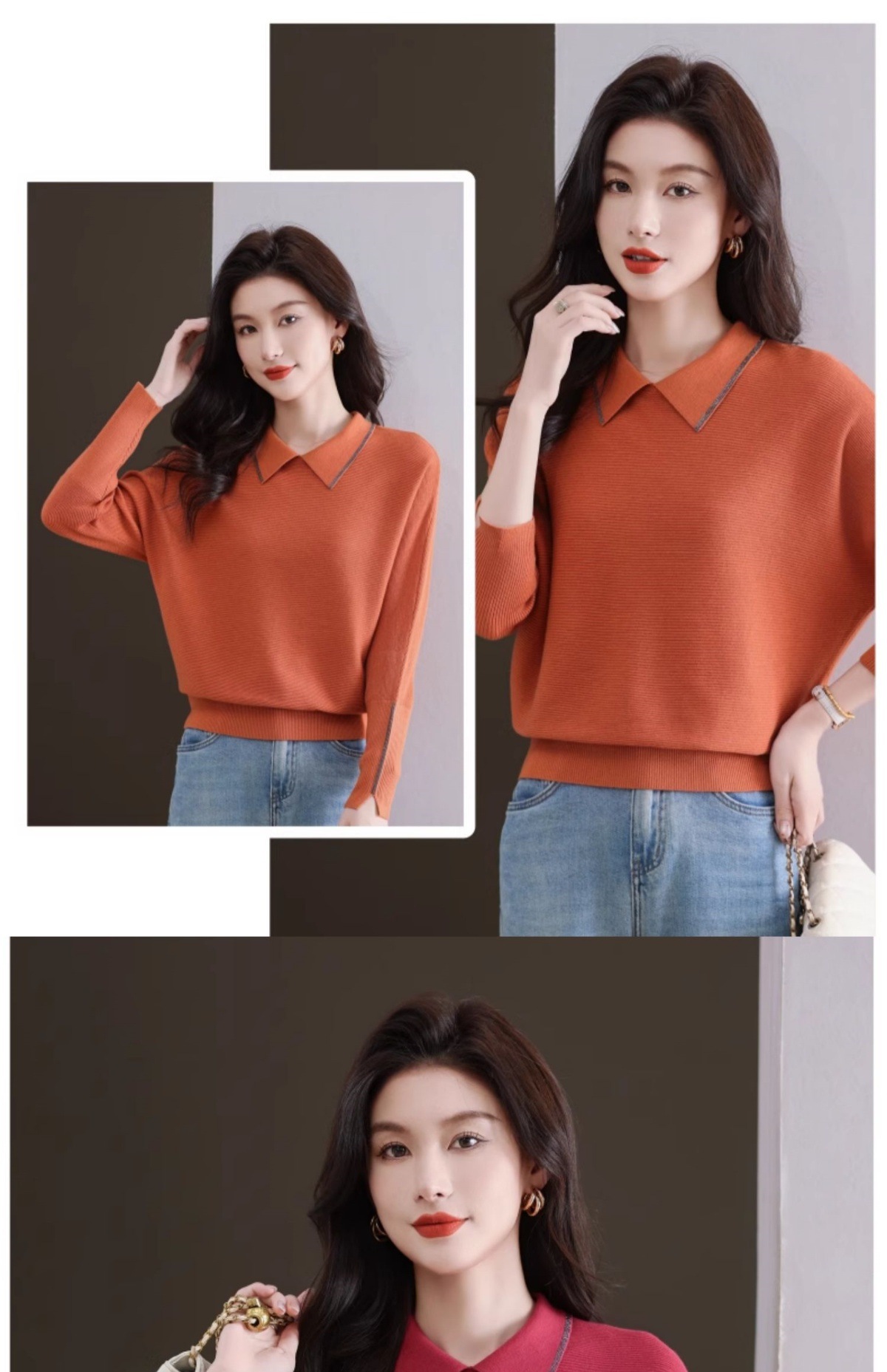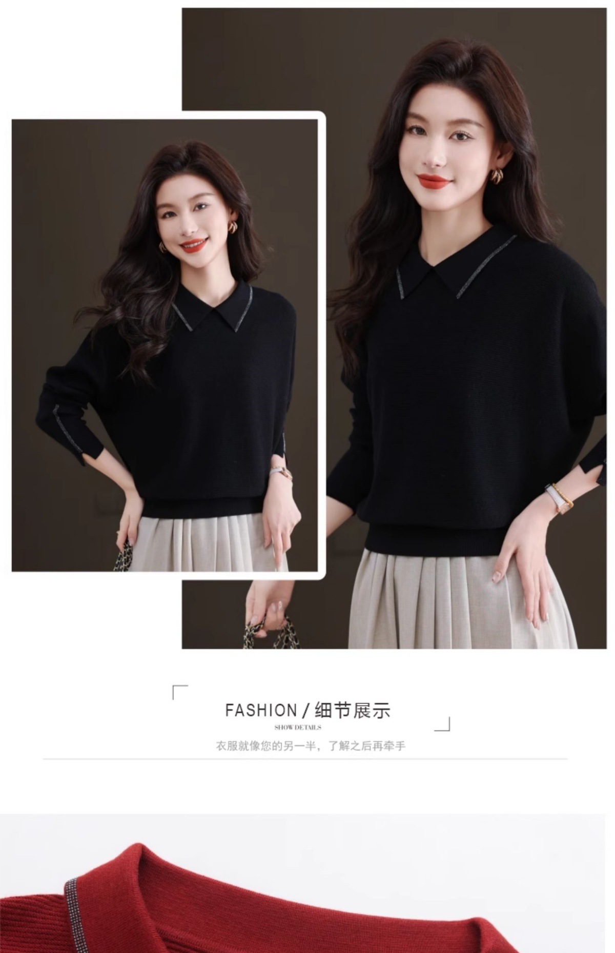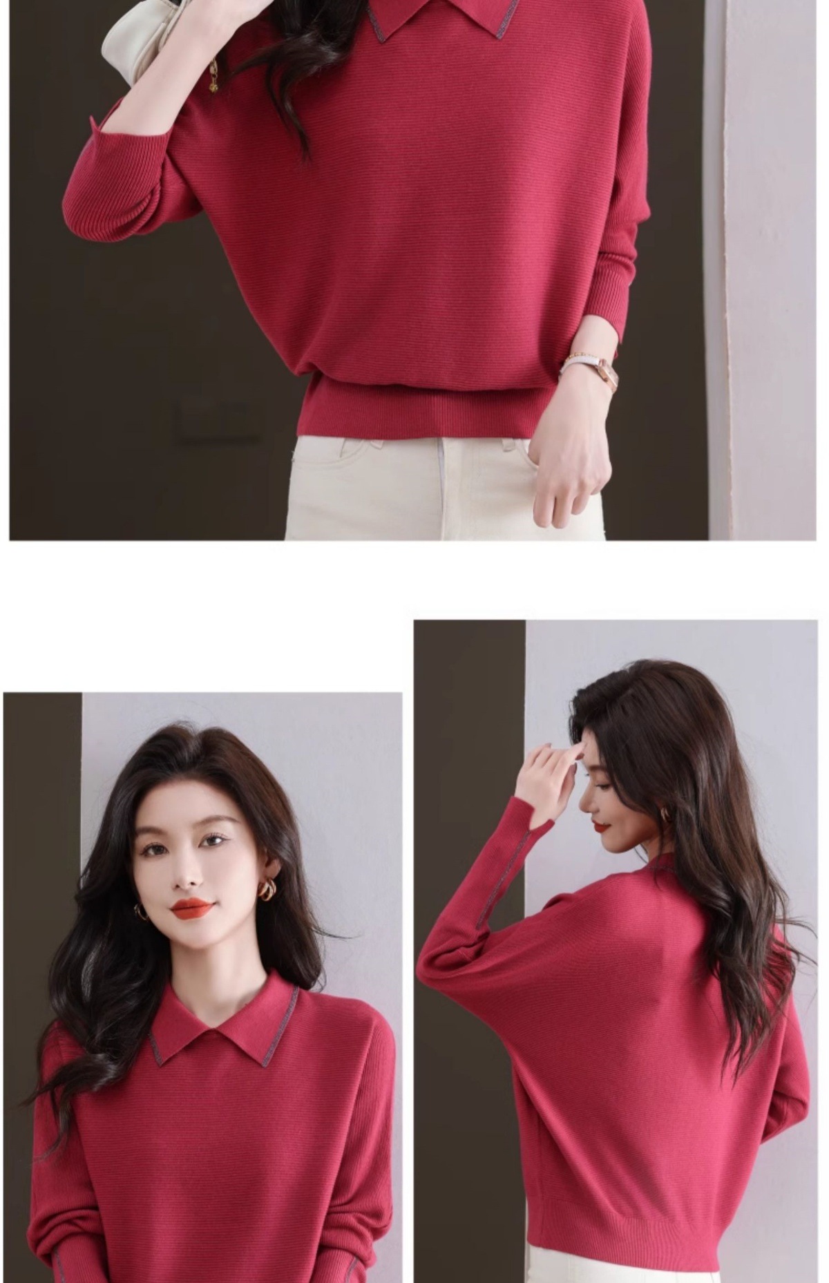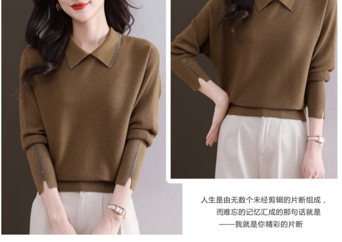 CC-5-6070秋冬季翻领针织打底衫女妈妈新款蝙蝠衫上衣宽松大码遮肚毛衣内搭