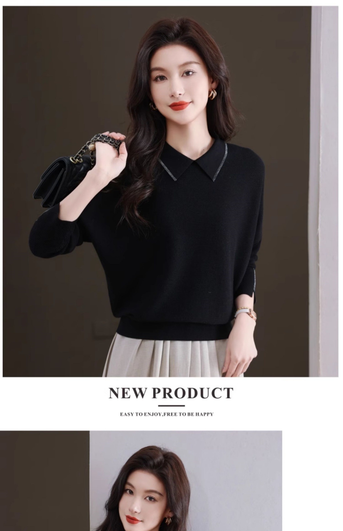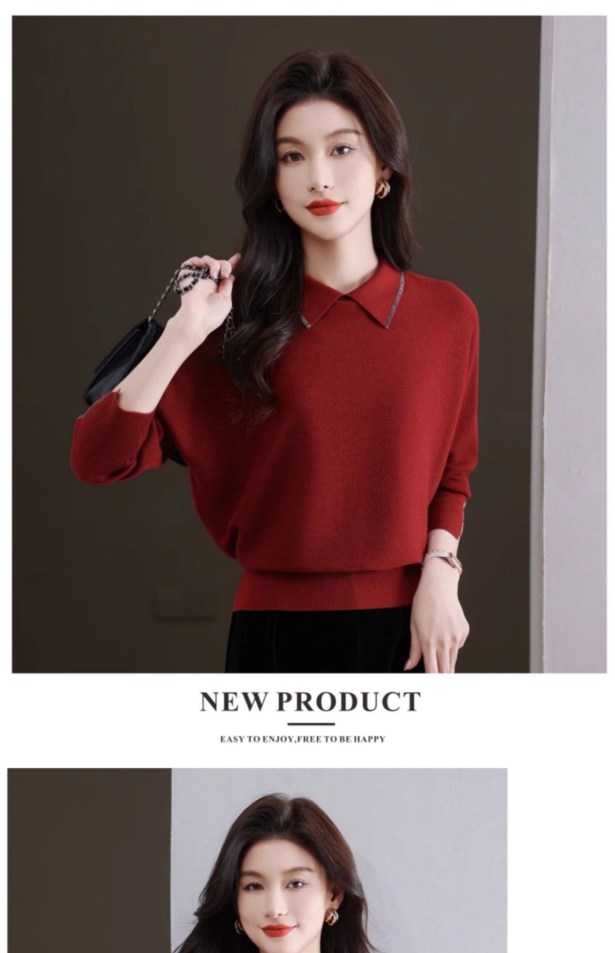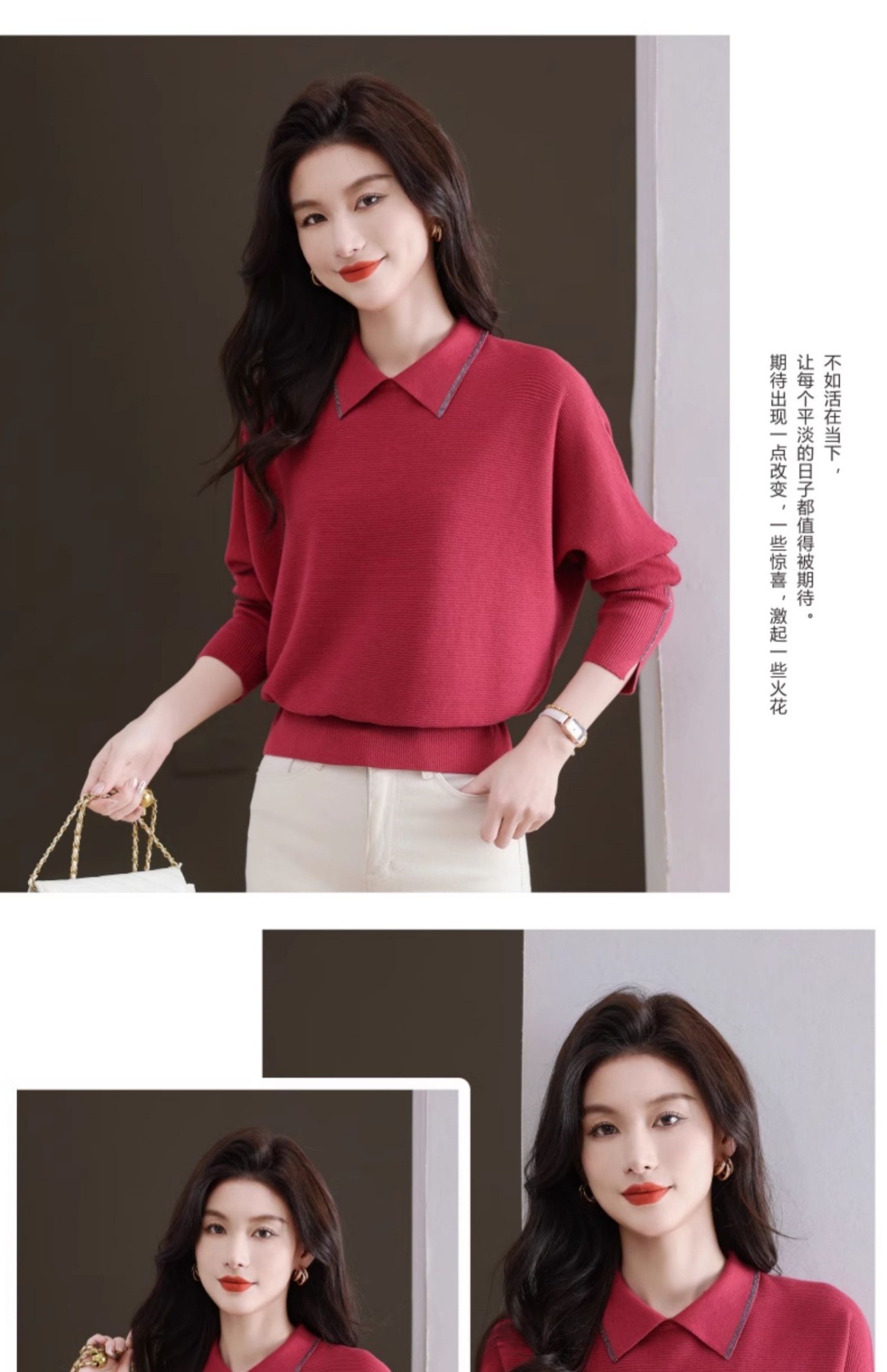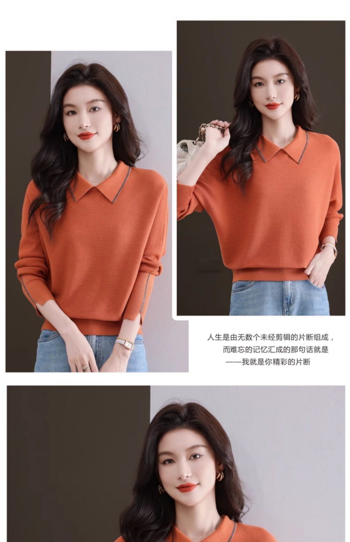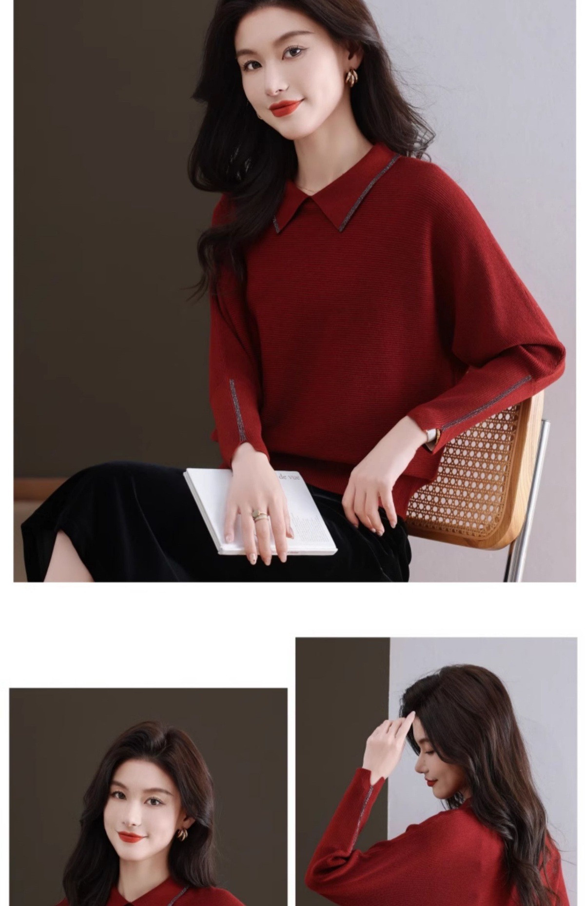 CC-5-6070秋冬季翻领针织打底衫女妈妈新款蝙蝠衫上衣宽松大码遮肚毛衣内搭