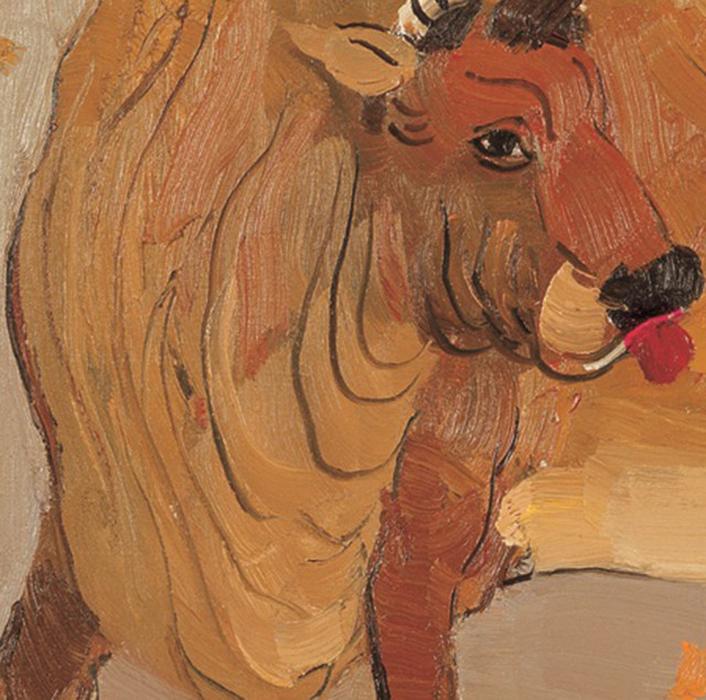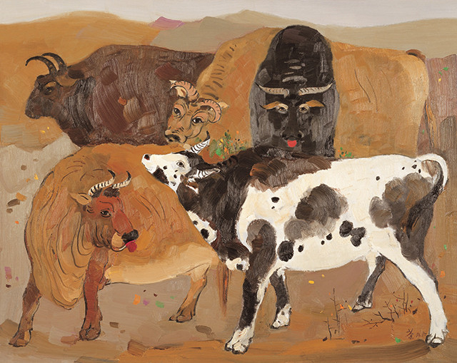 我授课时对学生讲过,艺术中的公式是1+1=1,即作品中两个或两个以上的个体应结合成一个整体,《五牛图》中我拟将单独的五牛构成一个整体之牛。