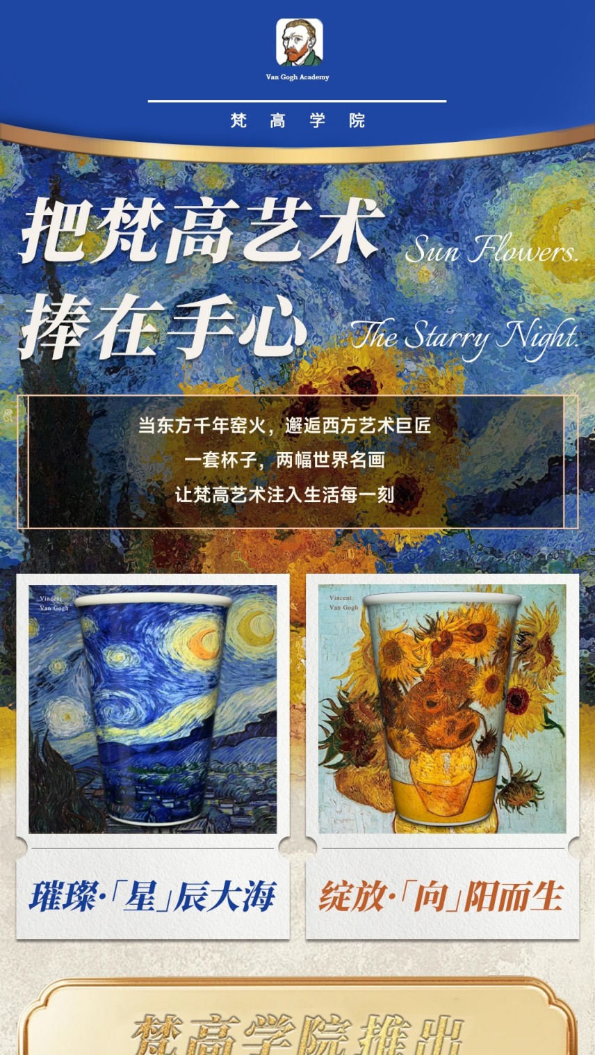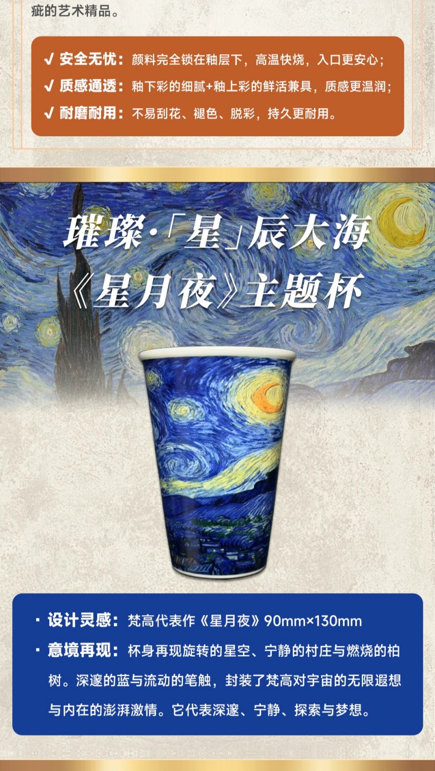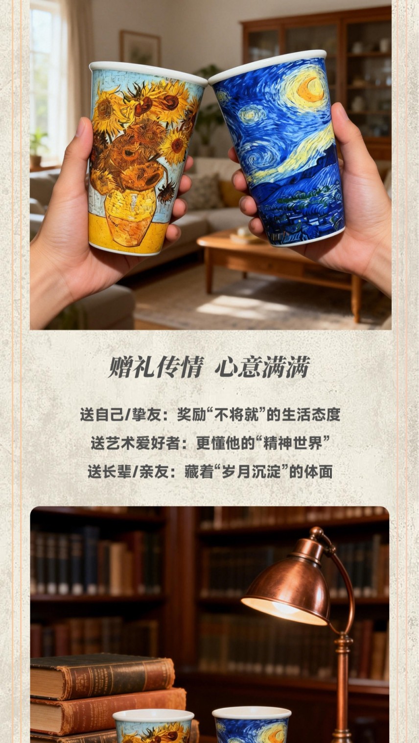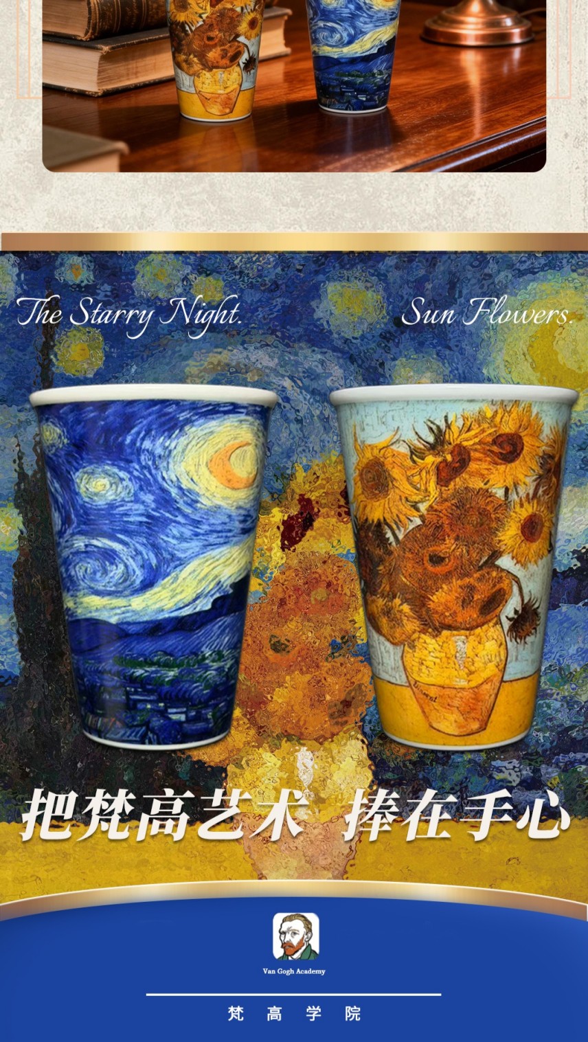 【梵高学院主题杯向日葵、星空杯】正版艺术保障:梵高学院官方正版授权,复刻梵高传世名作《星月夜》《向日葵》(72小时发货)