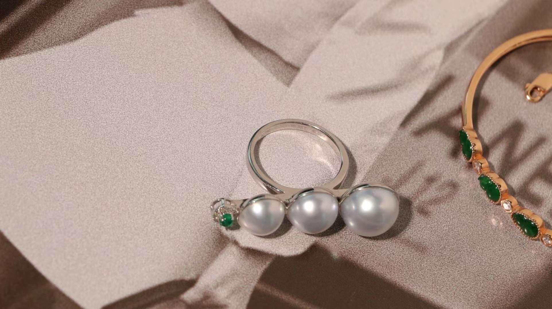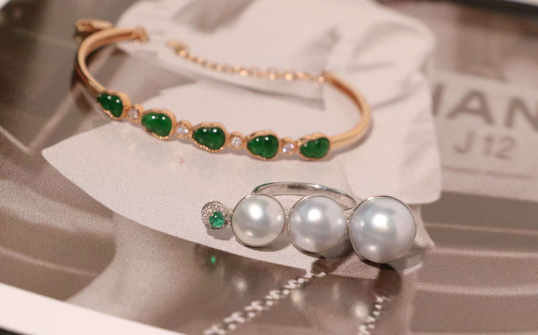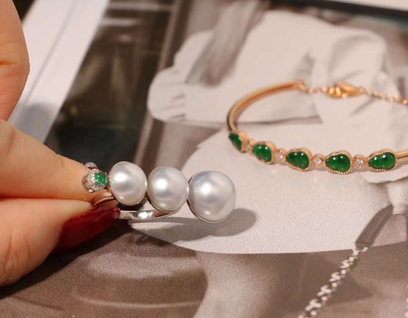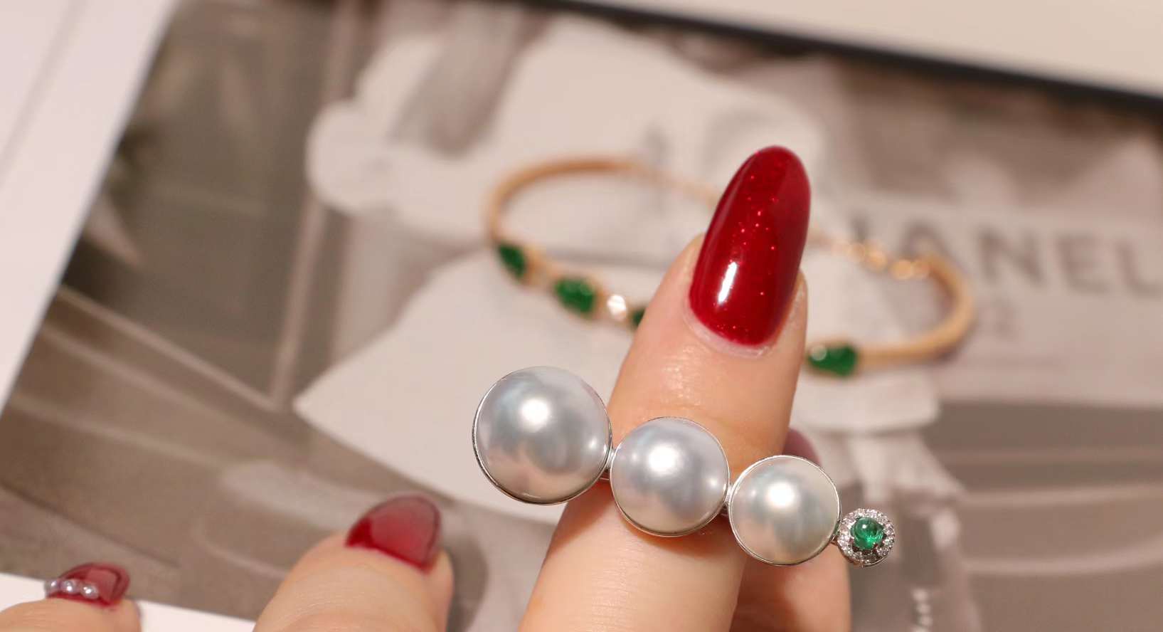 戒指材质是澳白(切割成半颗)+祖母绿+钻石+18k金。