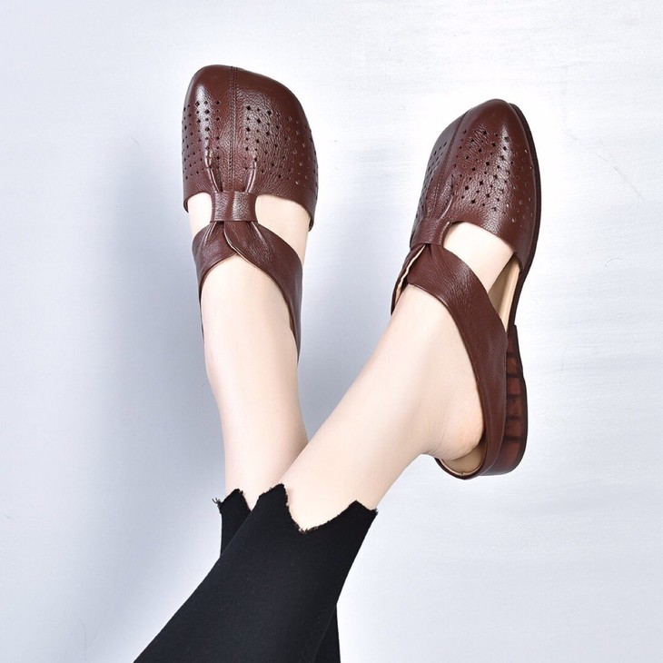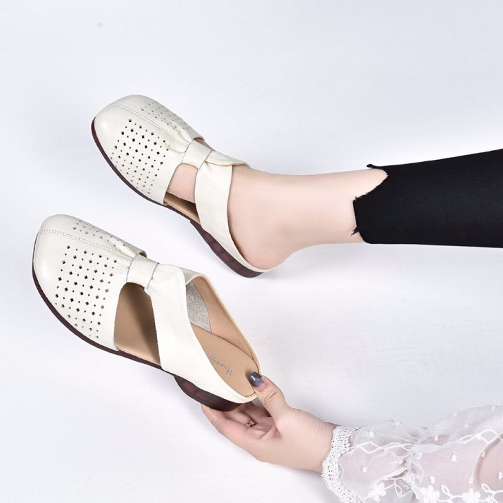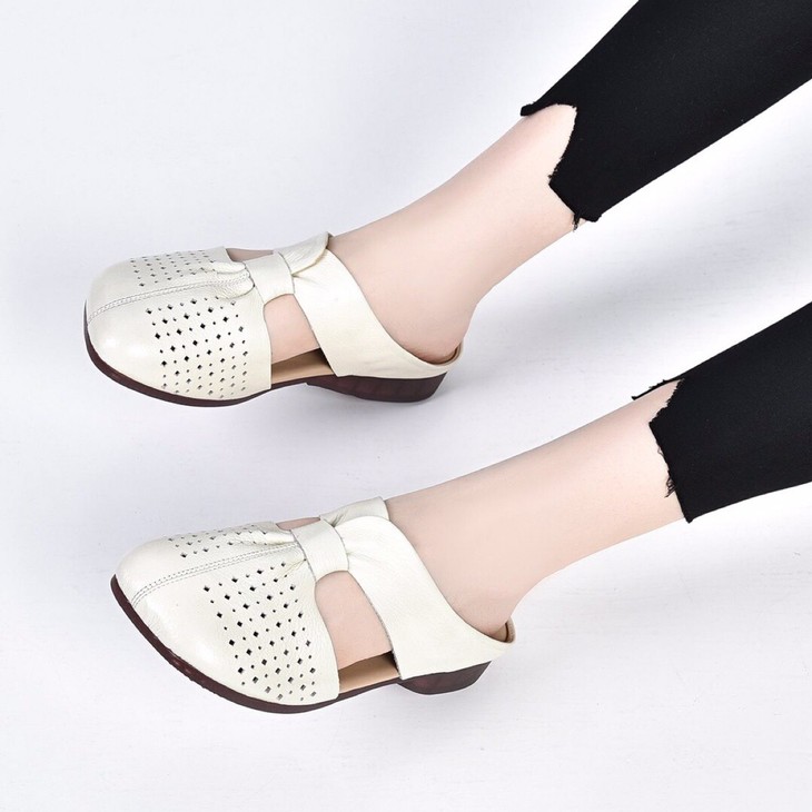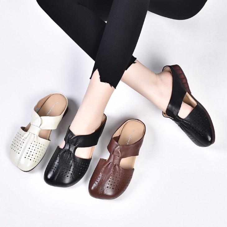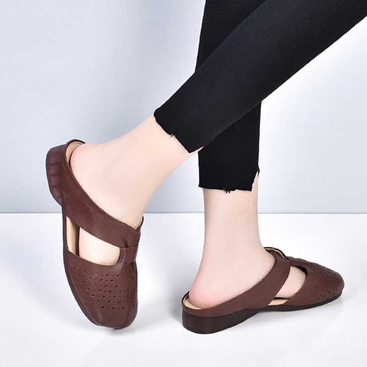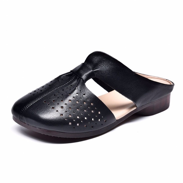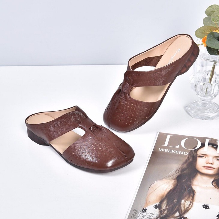 SY-真皮半拖鞋女夏季外穿2021年新款妈妈凉拖鞋软底舒适软皮拖鞋