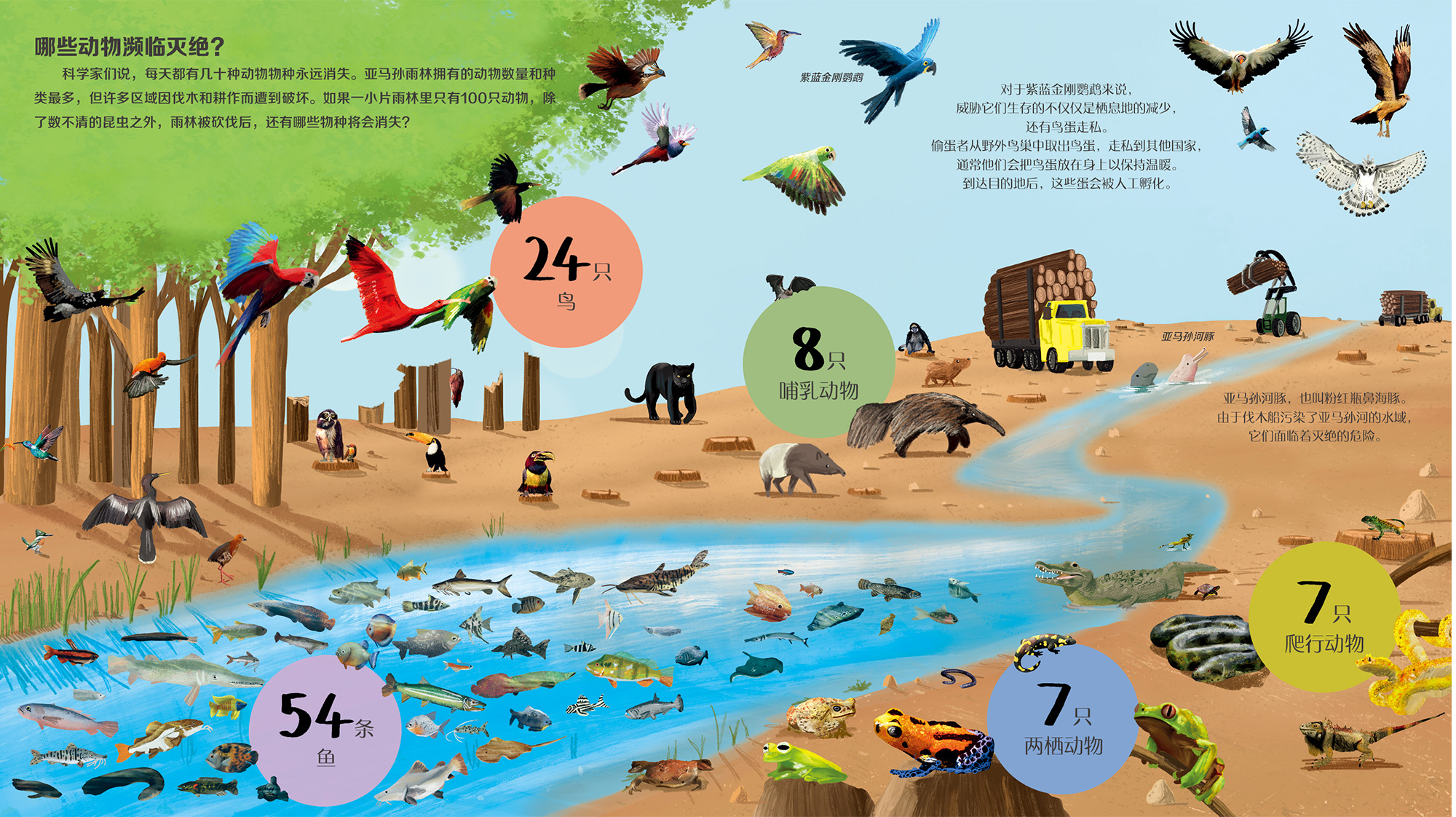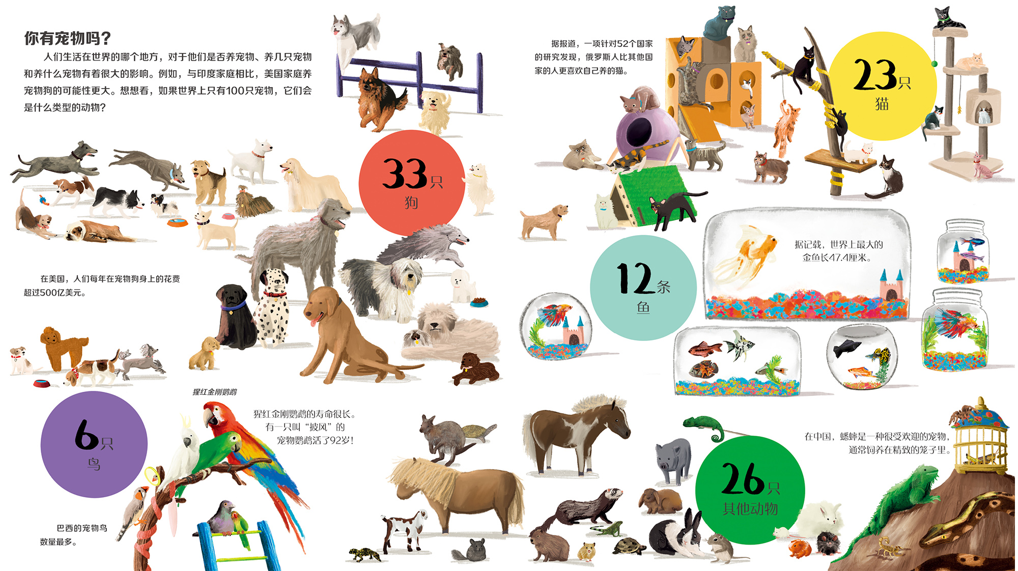 视角独特,将世界上数量惊人的动物简化成 100 只,把纷繁的物种信息用百分比的方式有趣、简明地呈现出来,便于孩子理解。