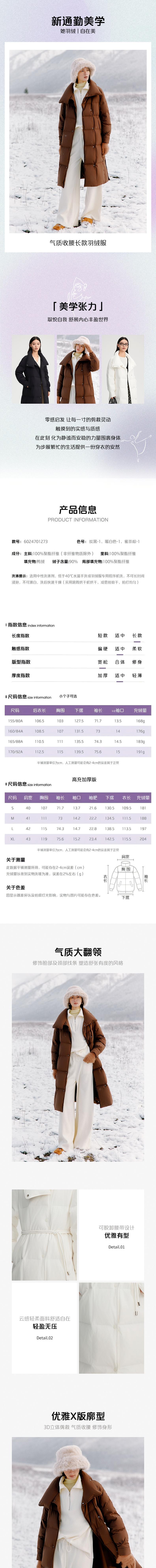 艾莱依 女气质收腰长款羽绒服 6024701273