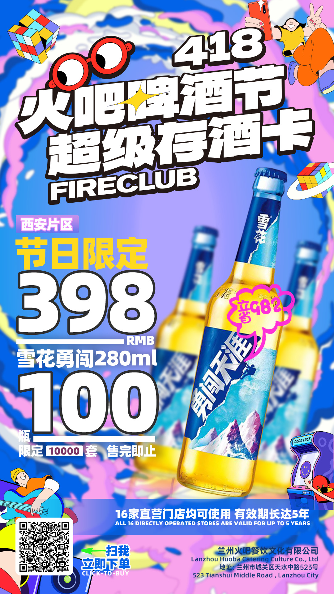 【西安通用】4月8日火吧啤酒节—超值存酒卡—398元100瓶雪花勇闯280ml