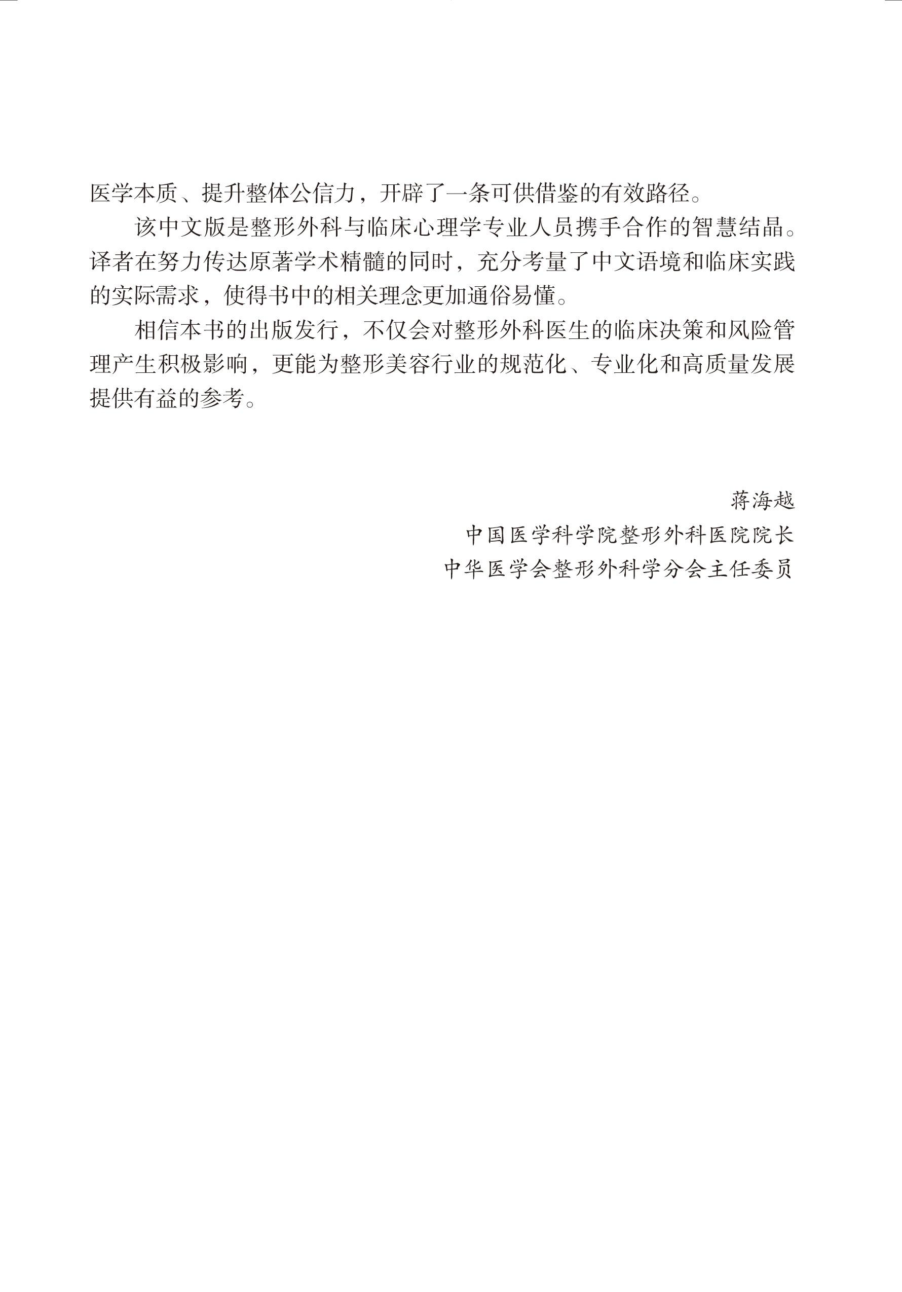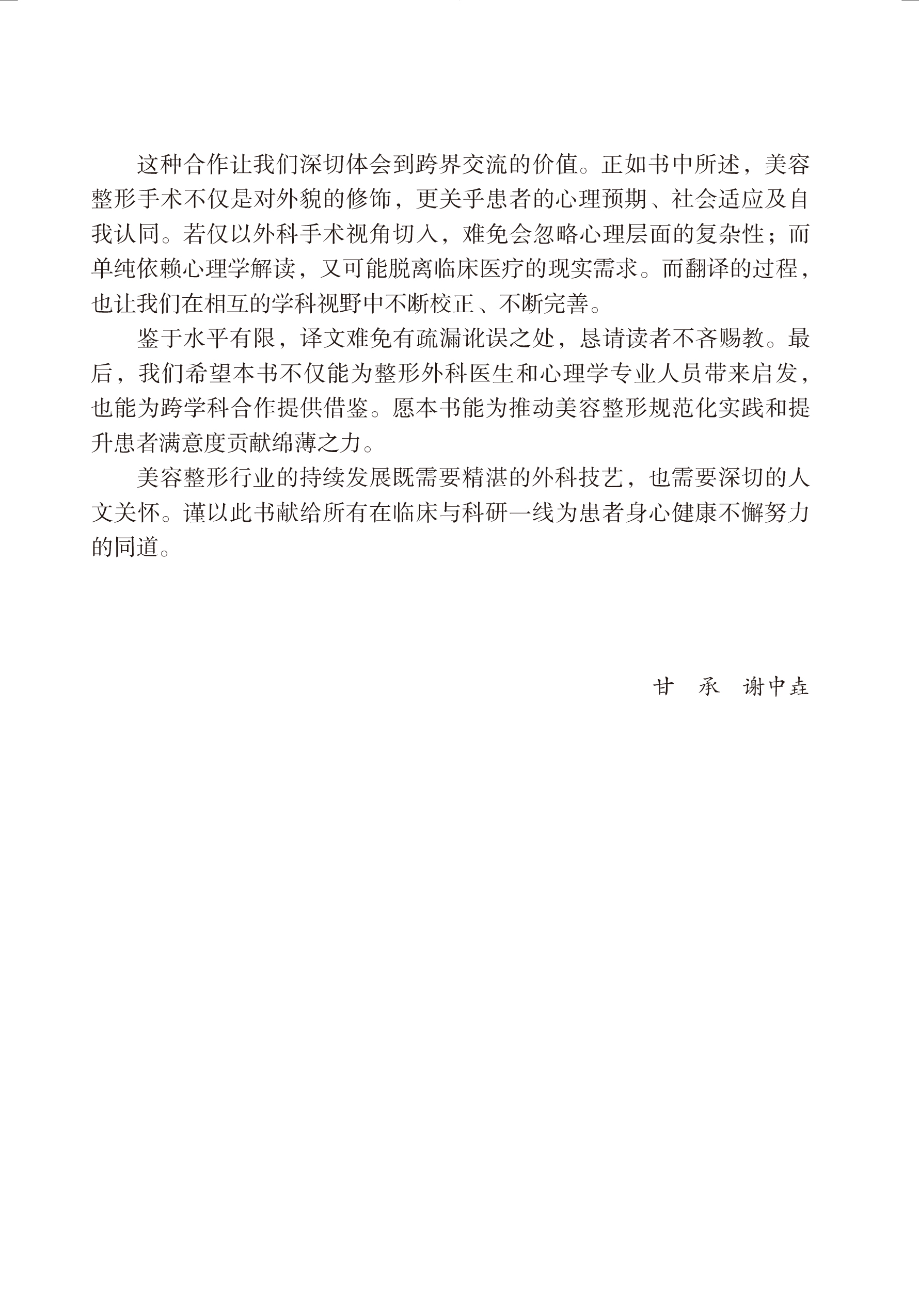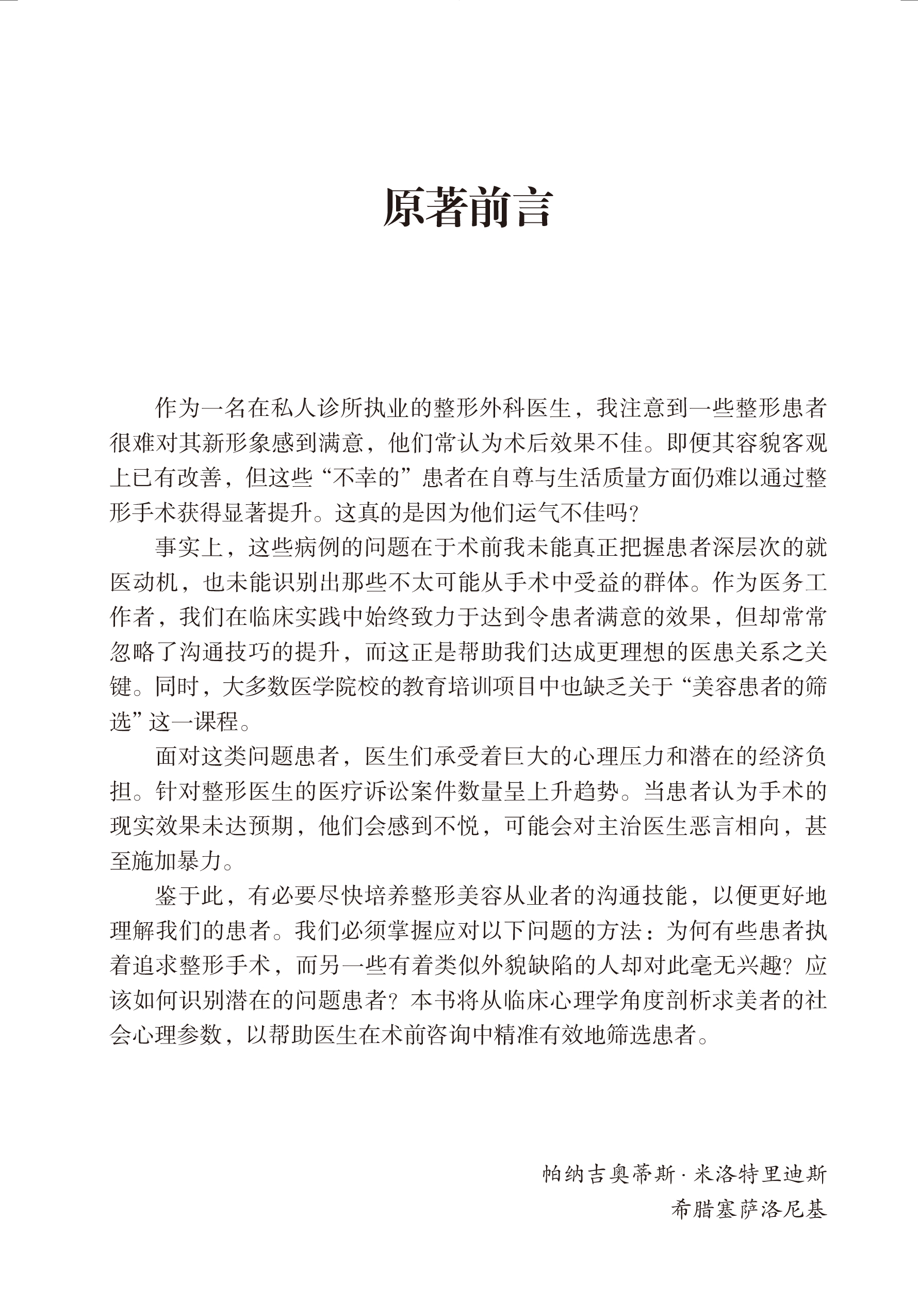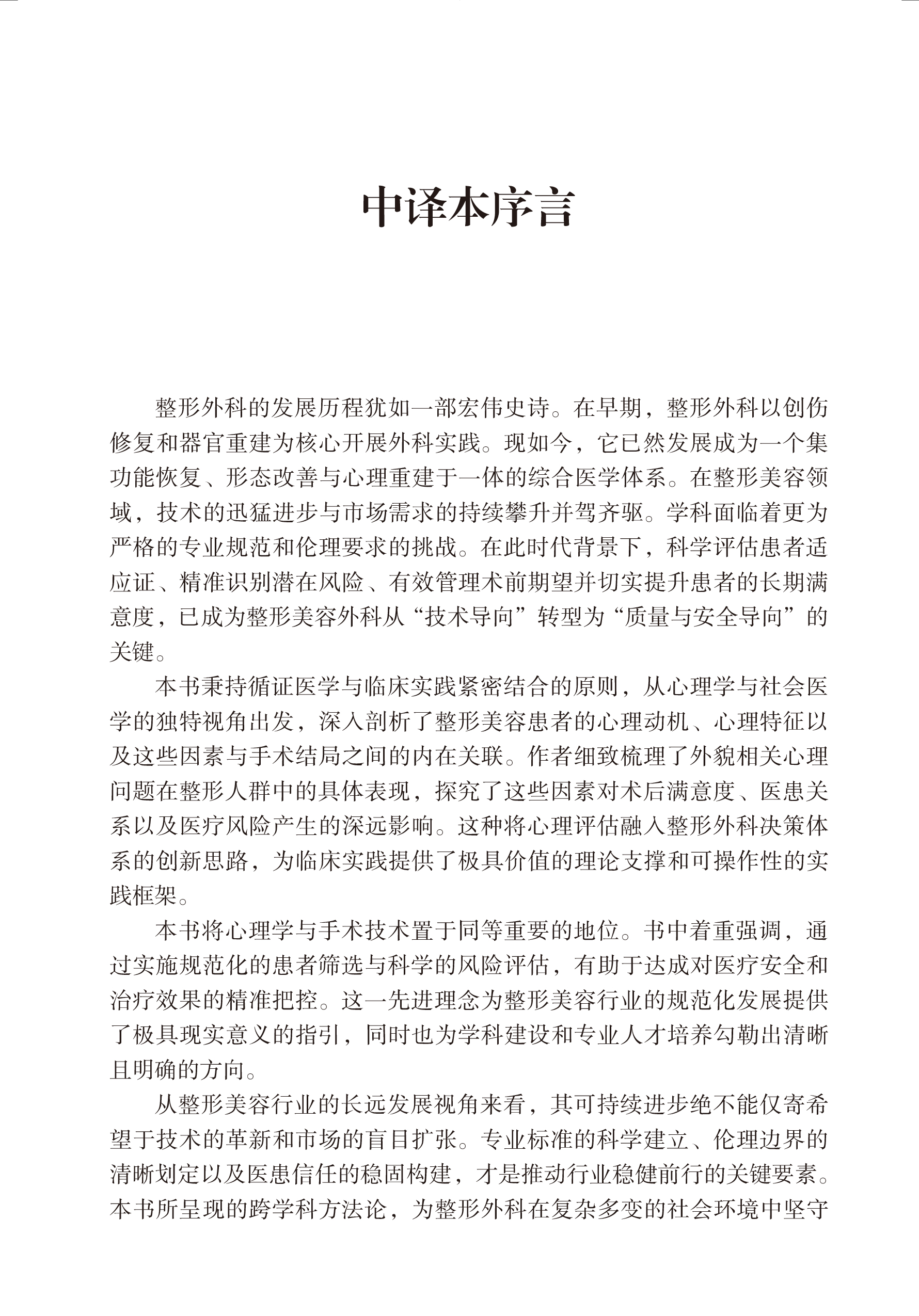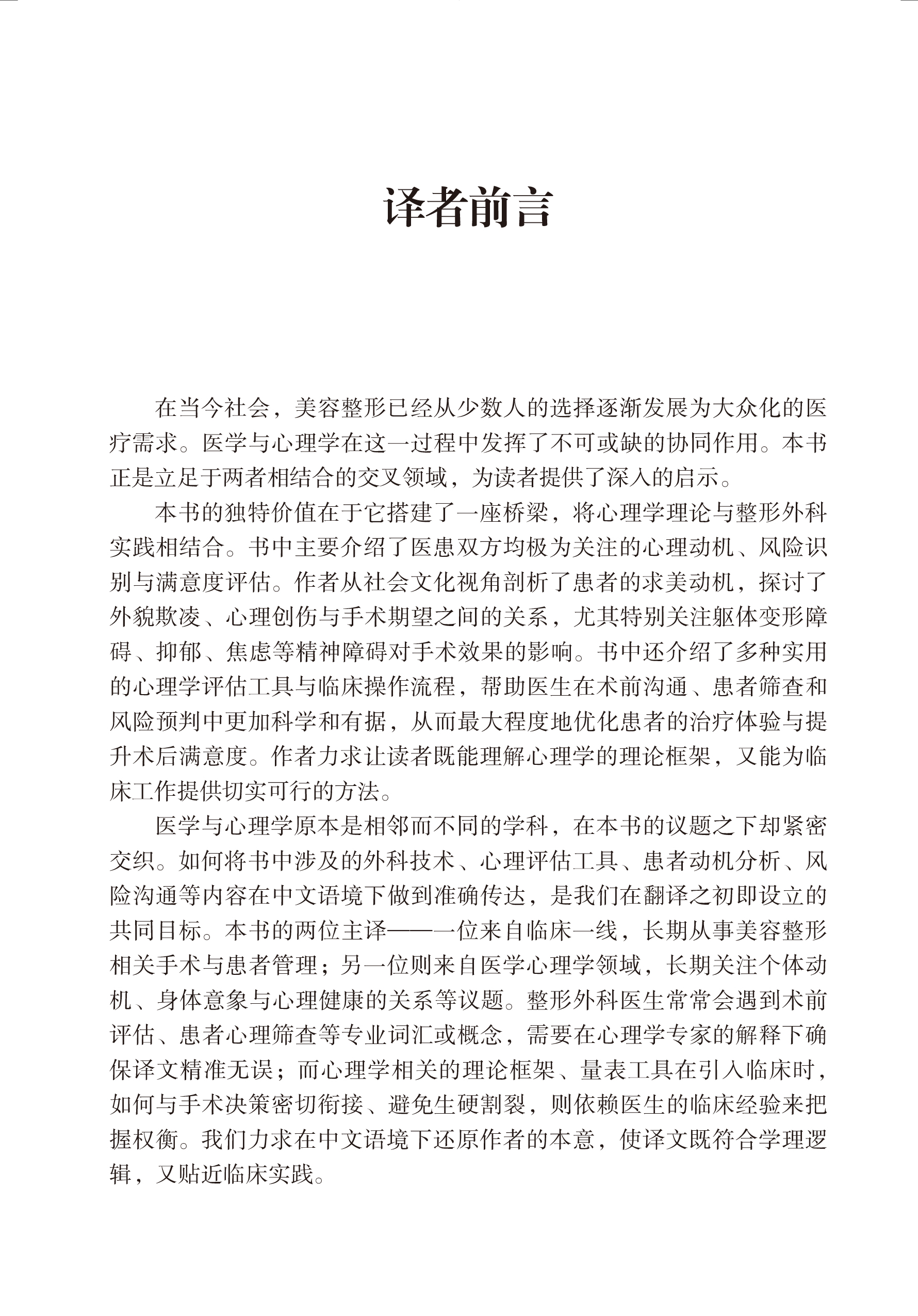 美容整形患者心理解析——术后满意度提升临床指导 主 译 : 甘 承 谢中垚