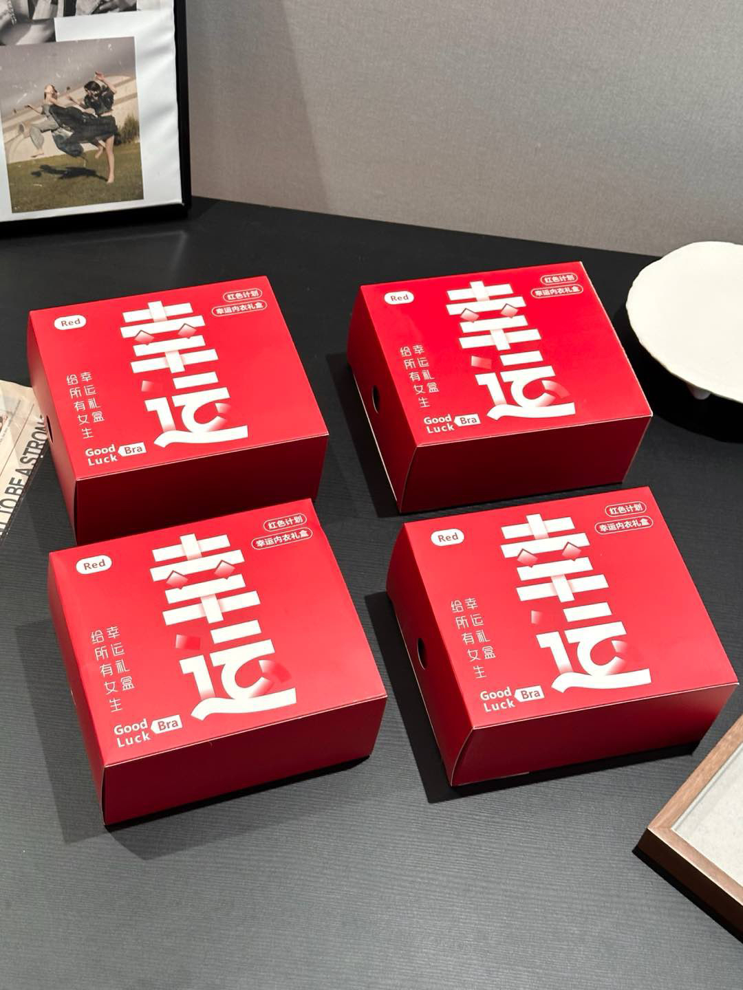 带礼盒的内衣套装哈,幸运红系列,一件文胸一件内裤,送人自留都很好