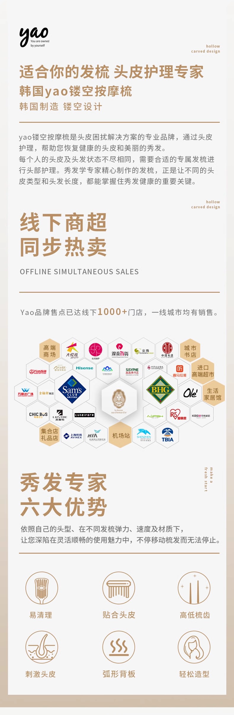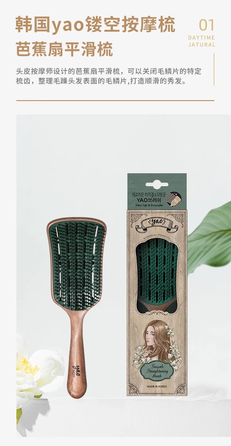 韩国Yao镂空按摩梳芭蕉扇平滑按摩梳