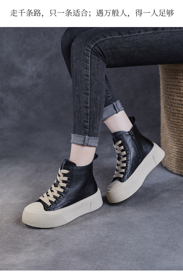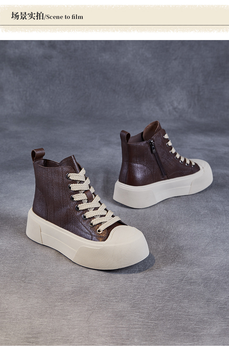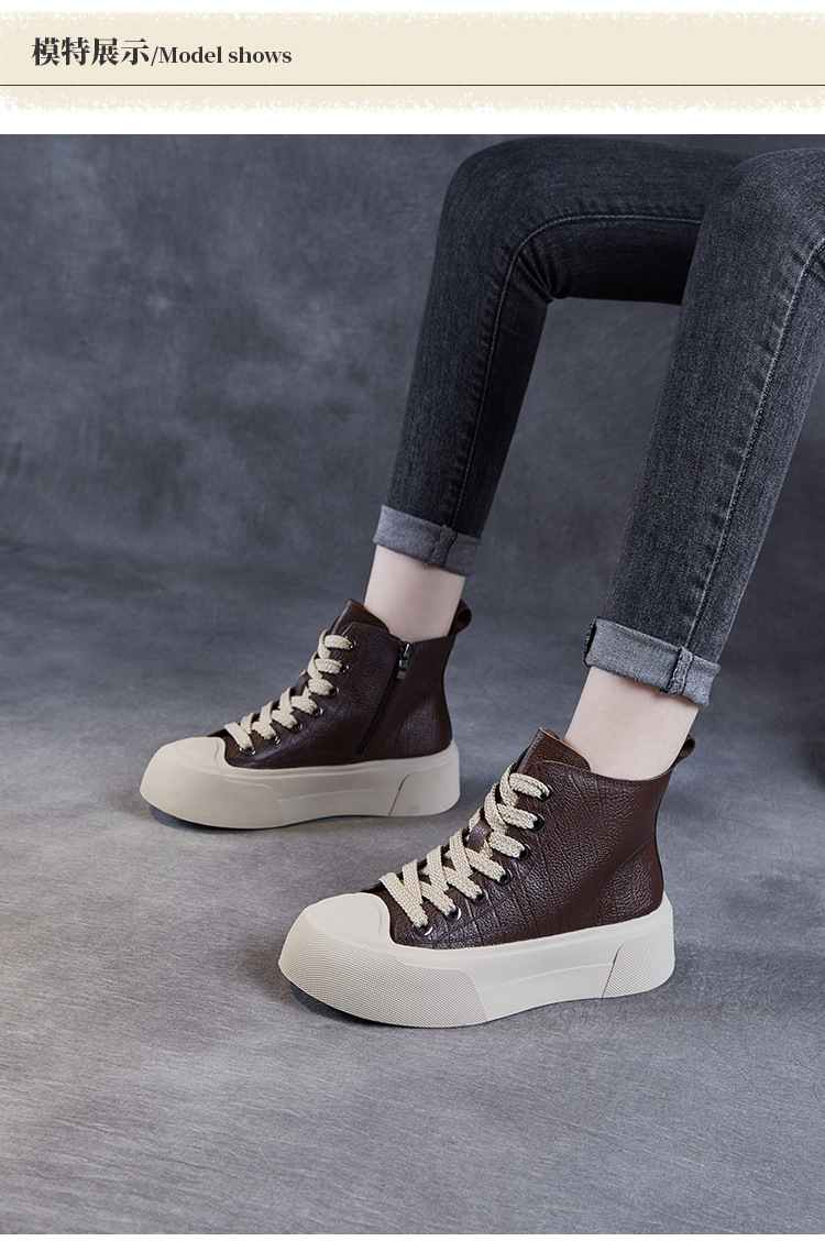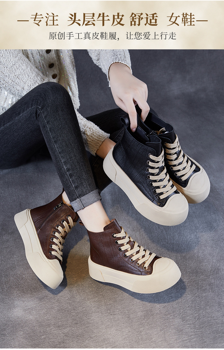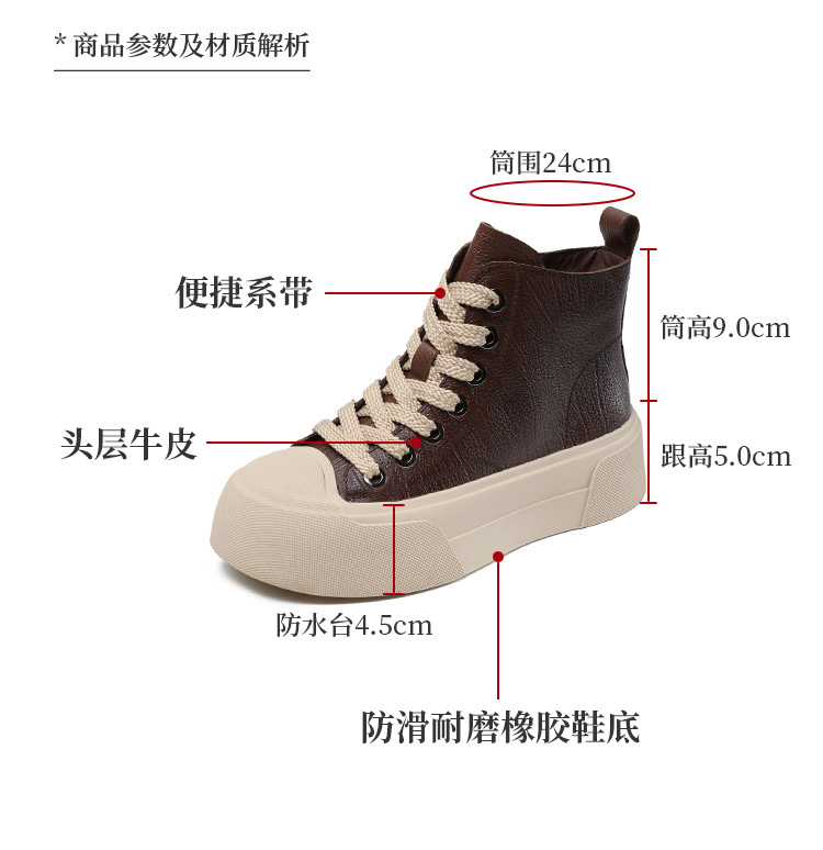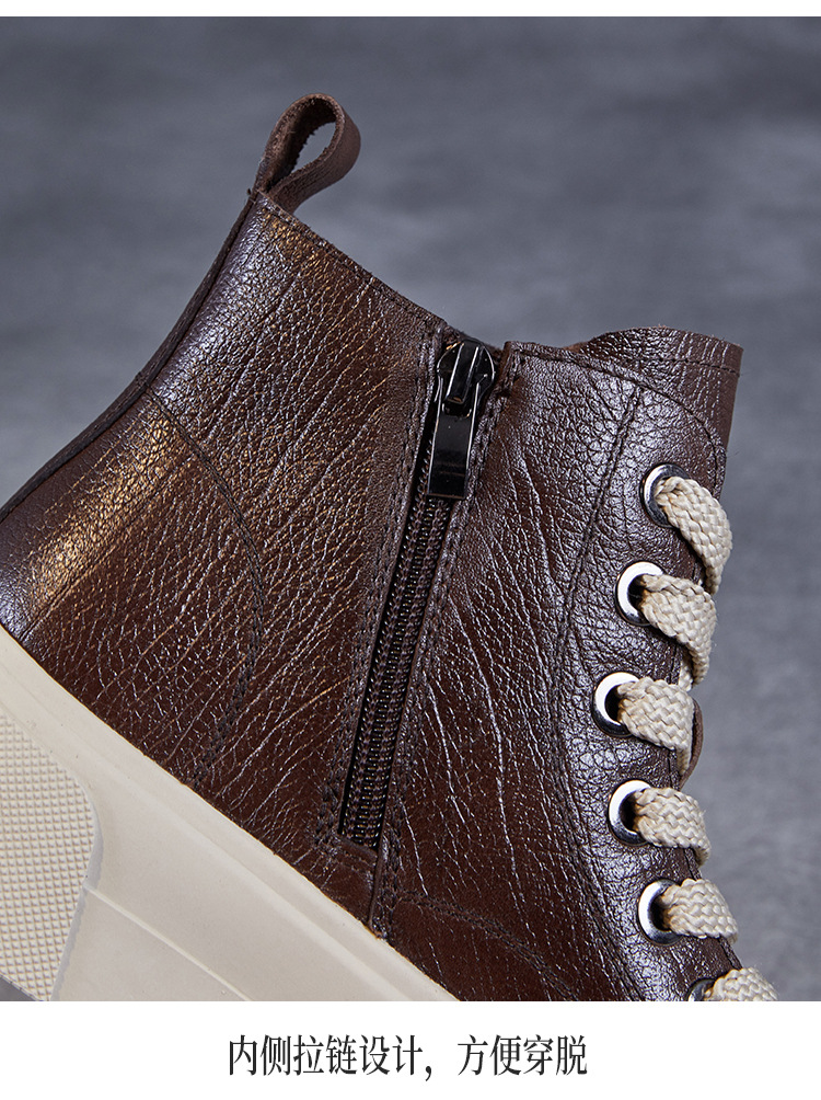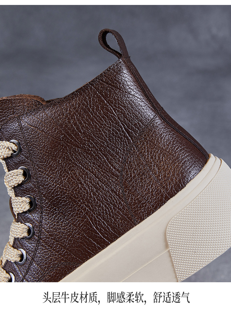 复古真皮短靴厚底百搭高帮,休闲系带女板鞋牛皮马丁单靴 ZM24X981