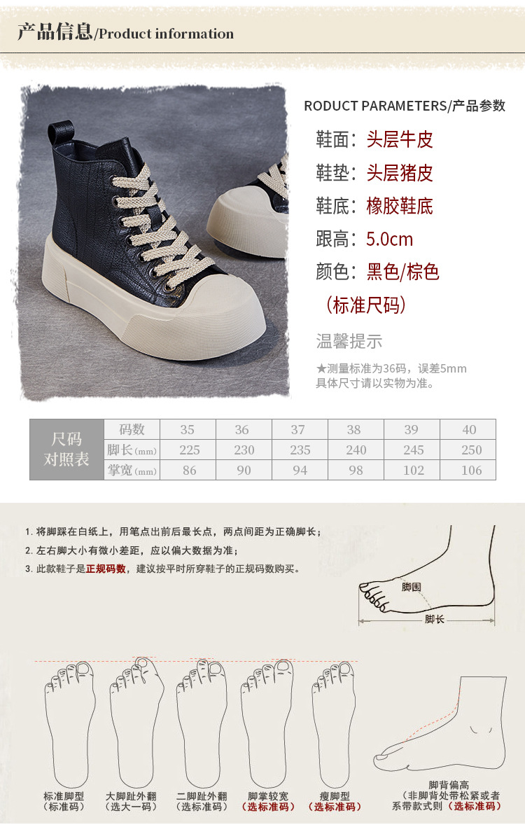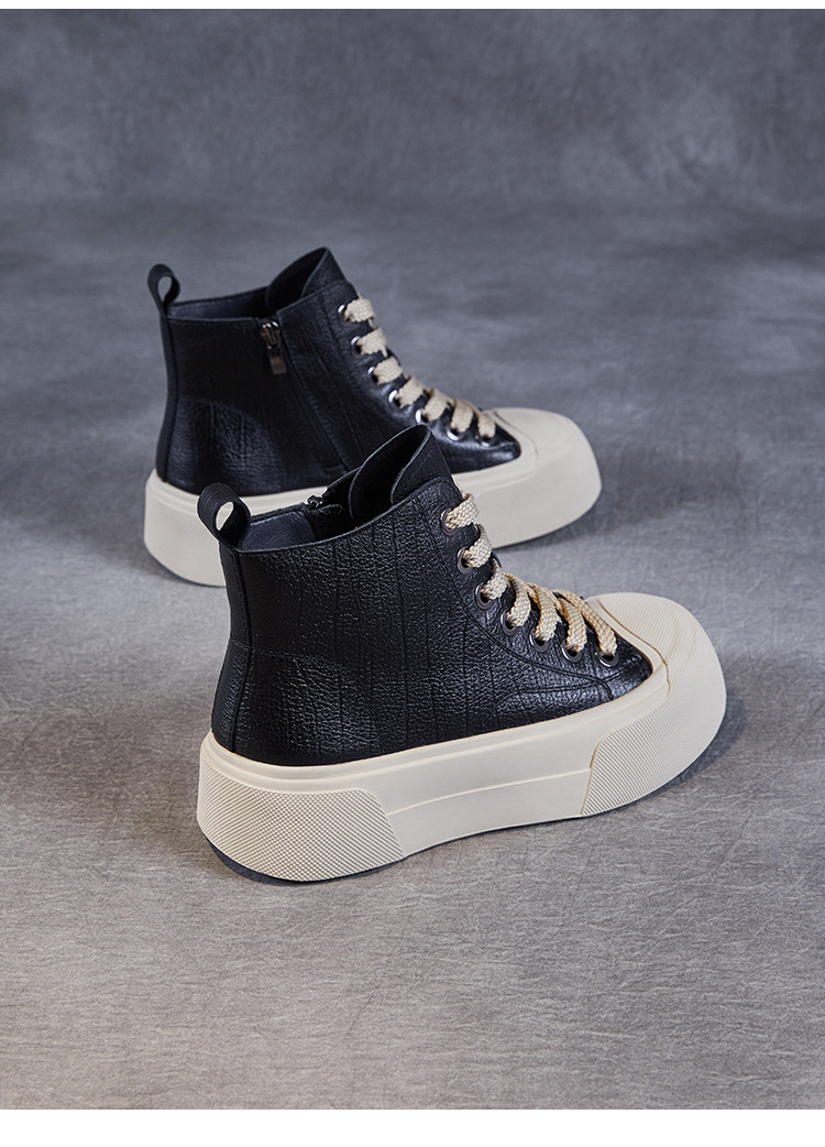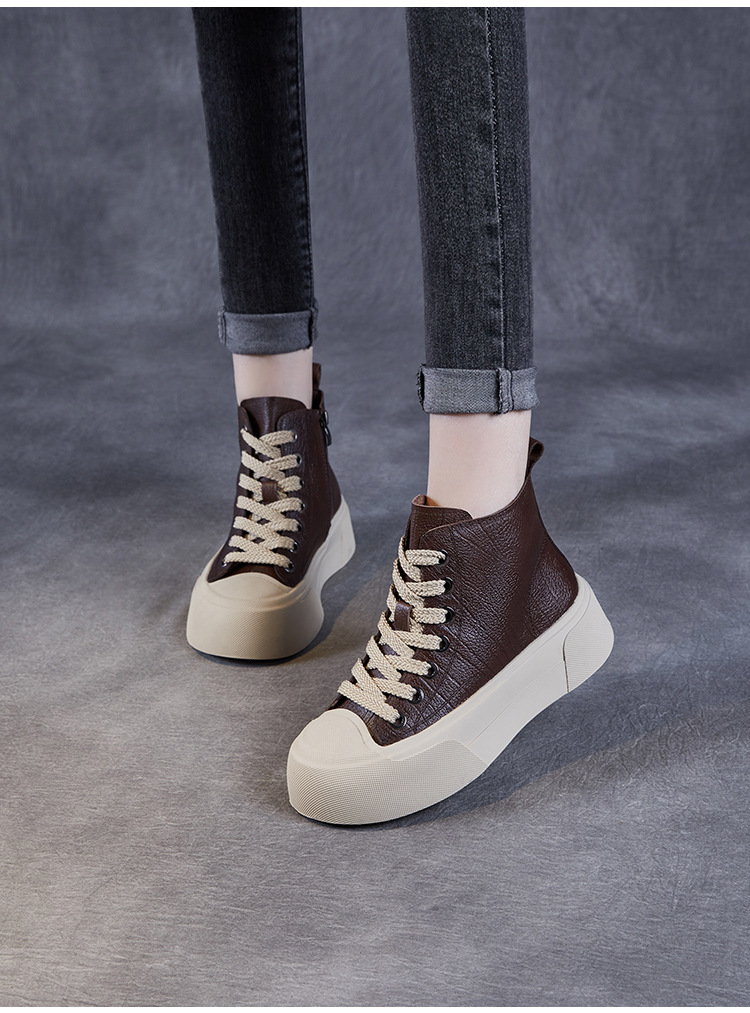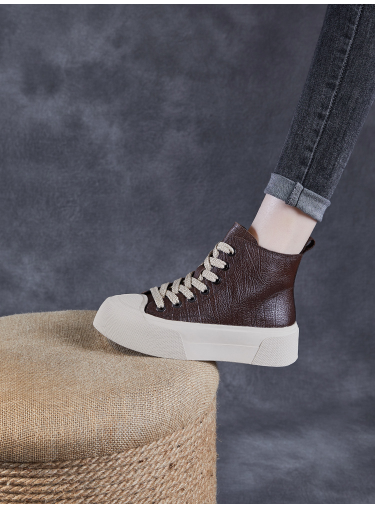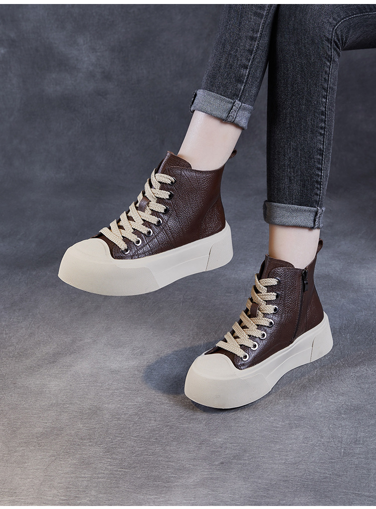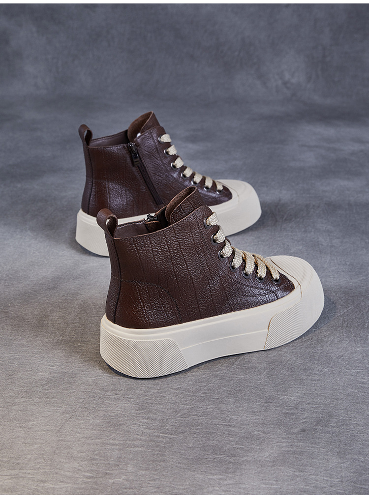 复古真皮短靴厚底百搭高帮,休闲系带女板鞋牛皮马丁单靴 ZM24X981