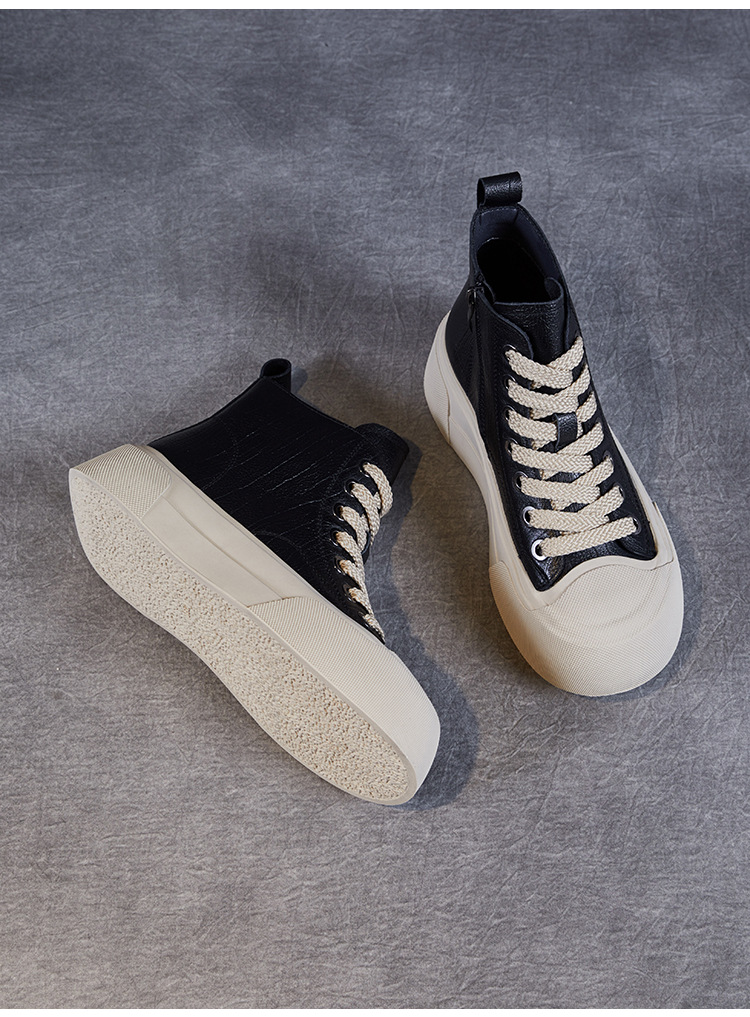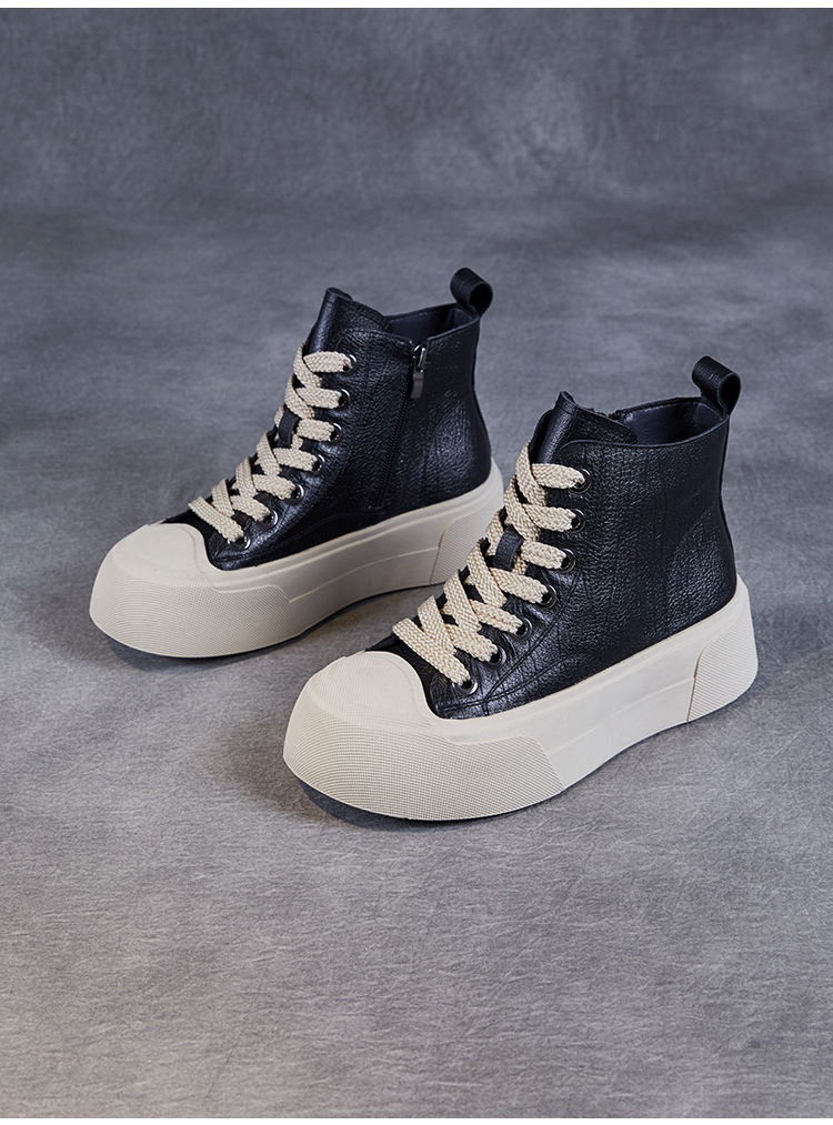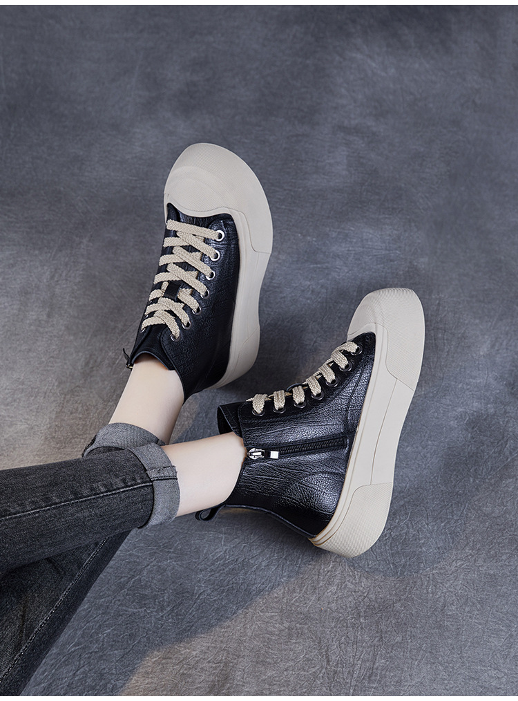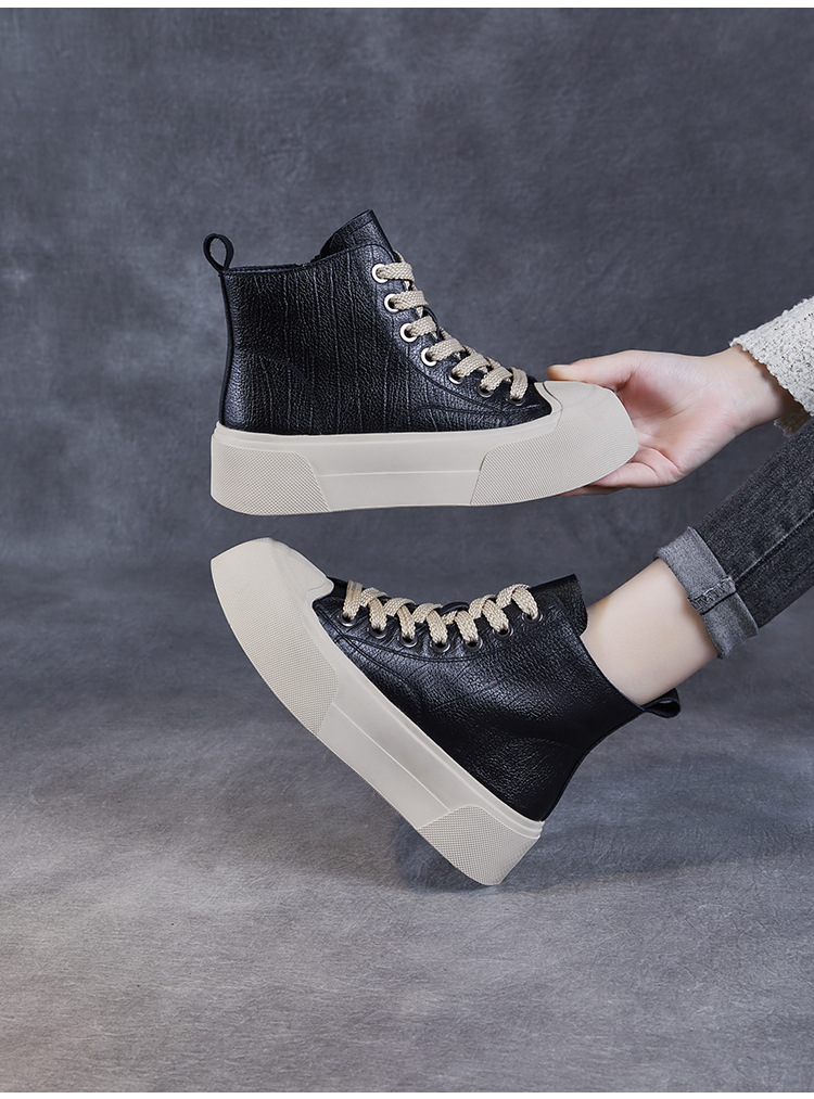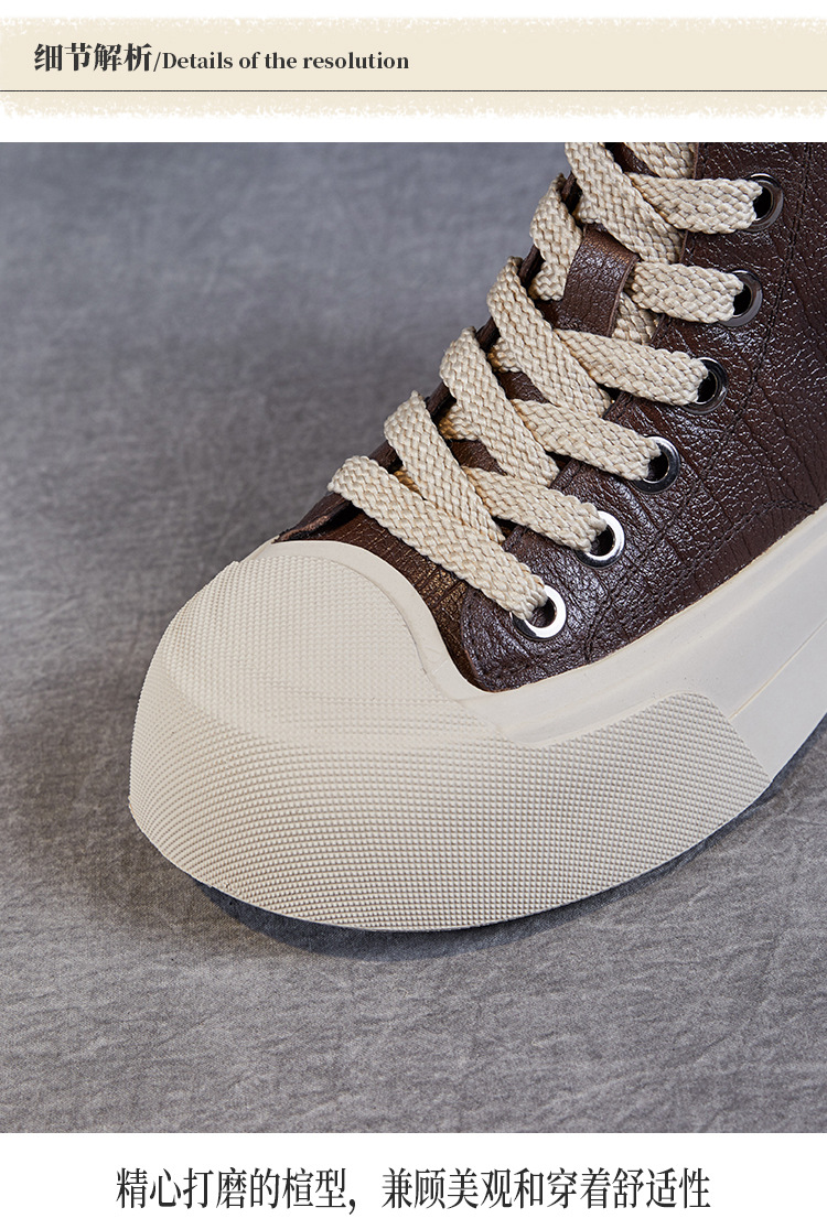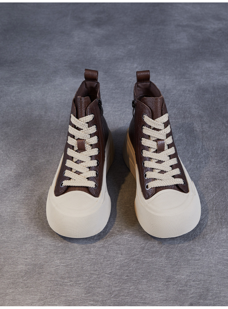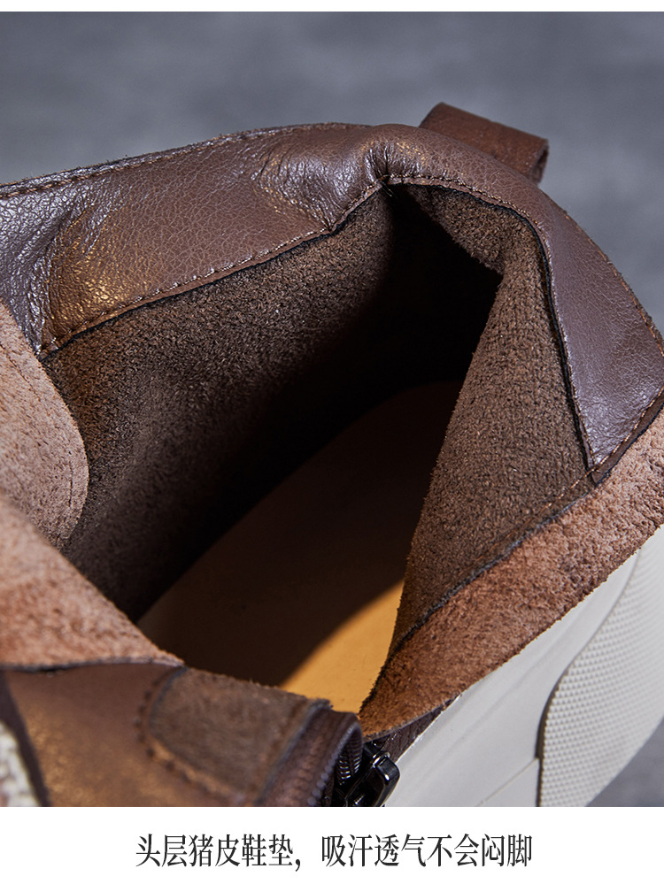 复古真皮短靴厚底百搭高帮,休闲系带女板鞋牛皮马丁单靴 ZM24X981