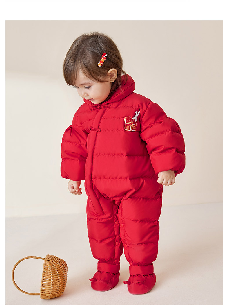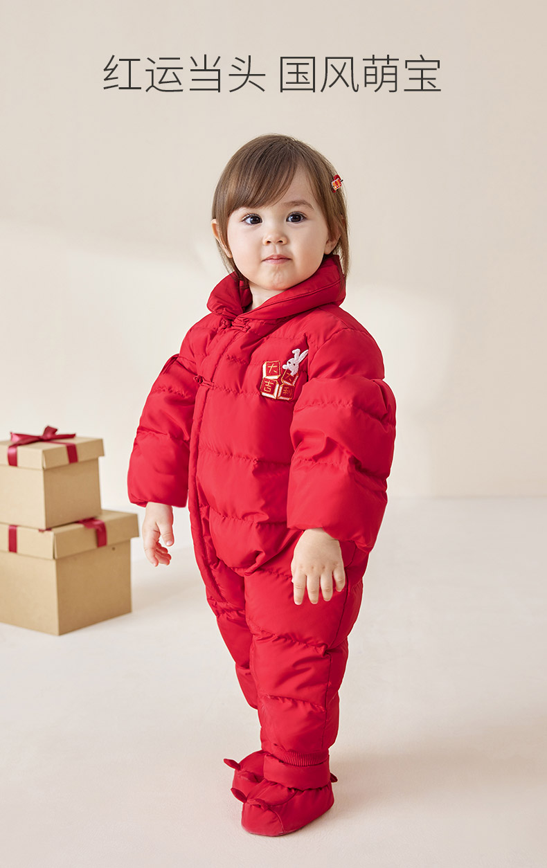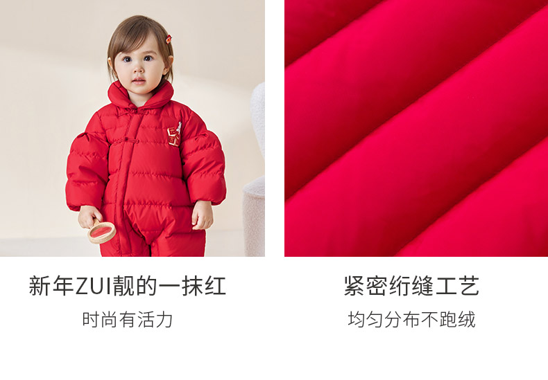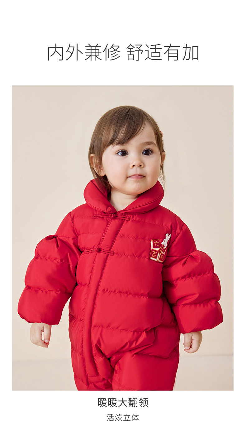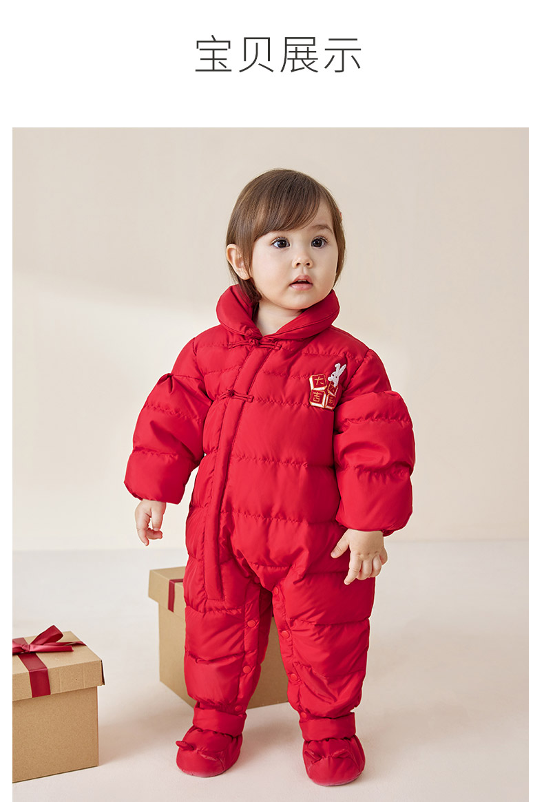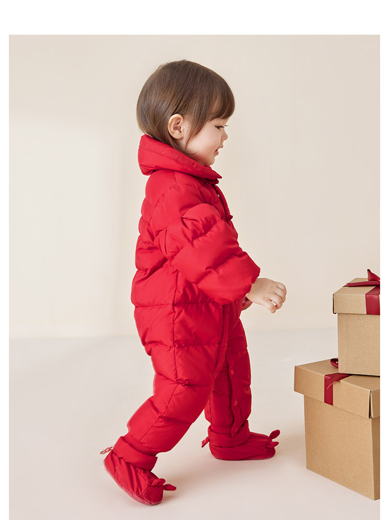 【商场同款】英氏宝宝连体羽绒服冬季款婴儿哈衣爬服冬款超韧绒
