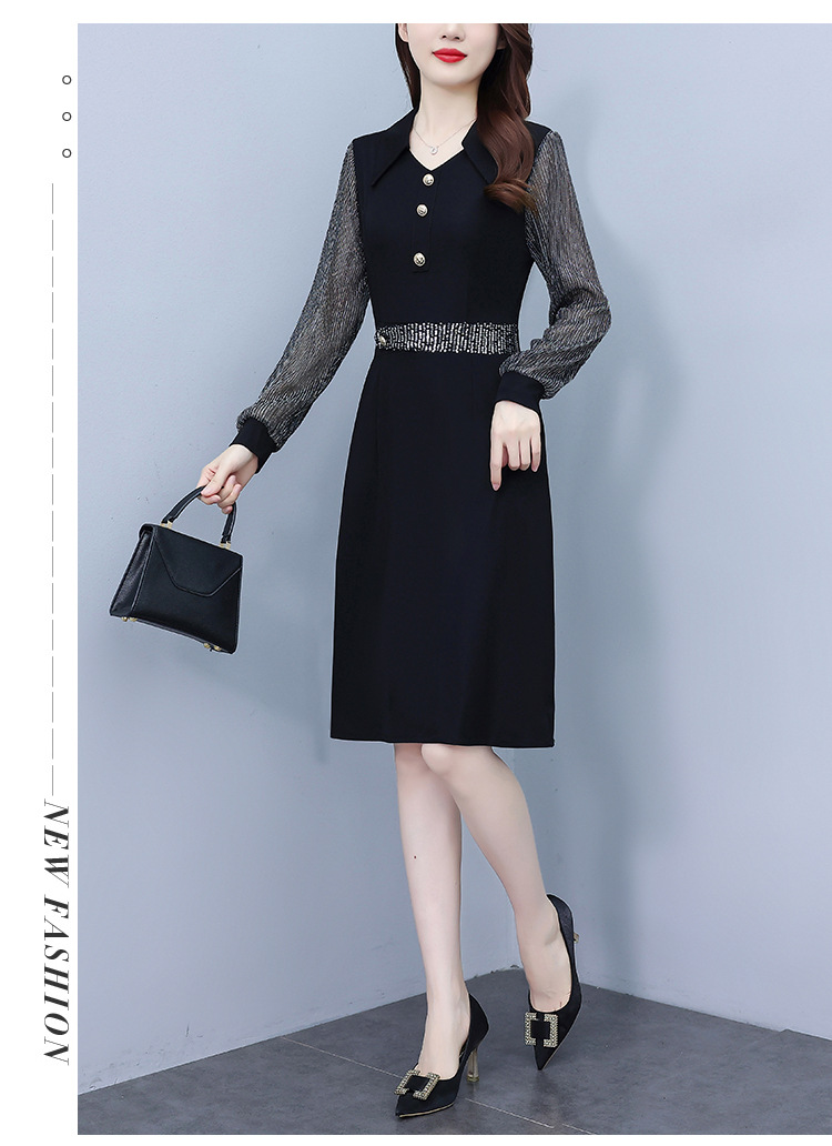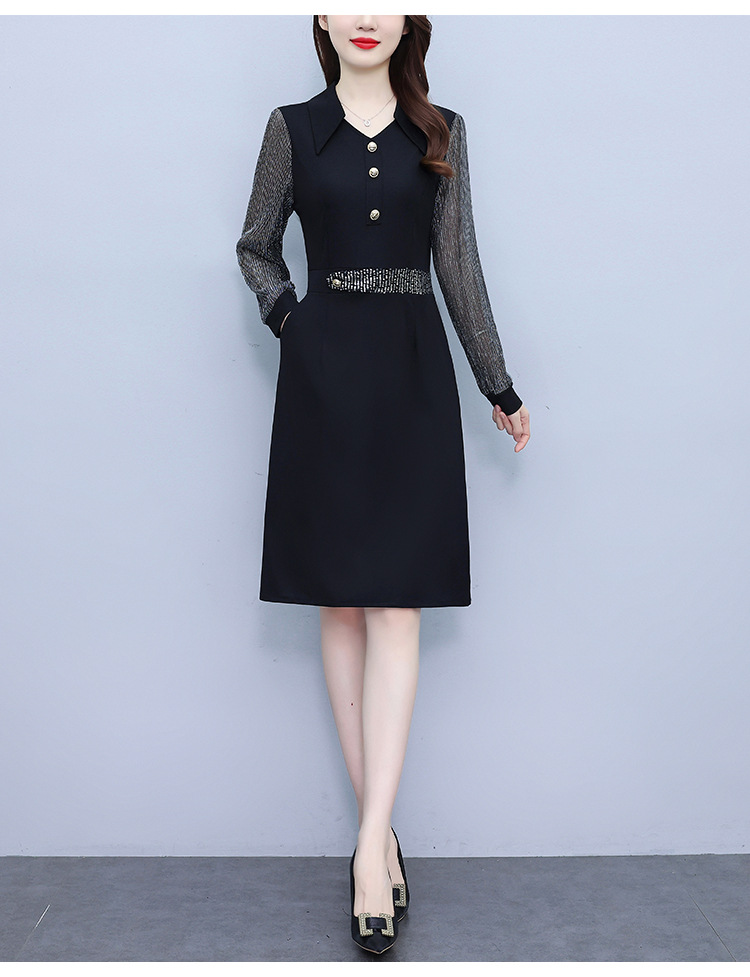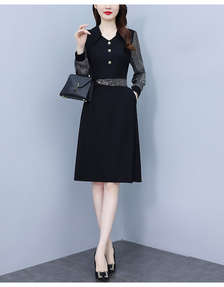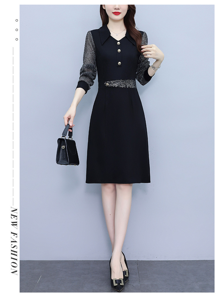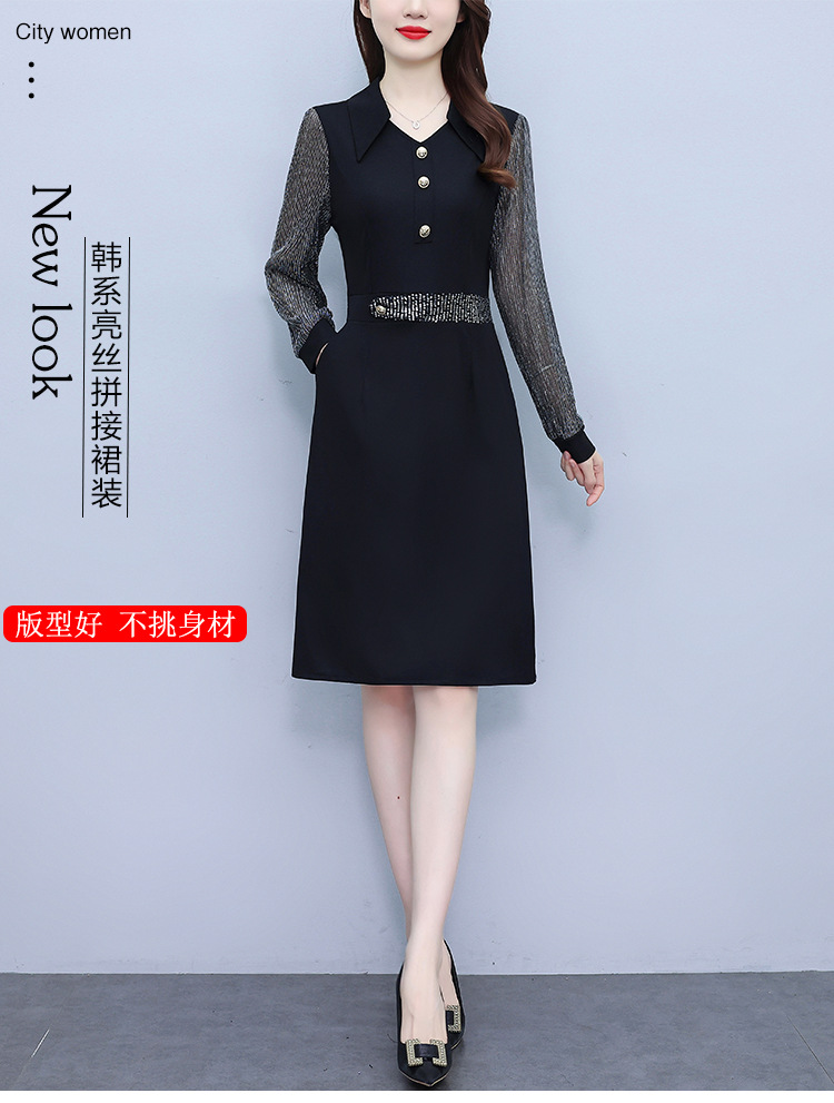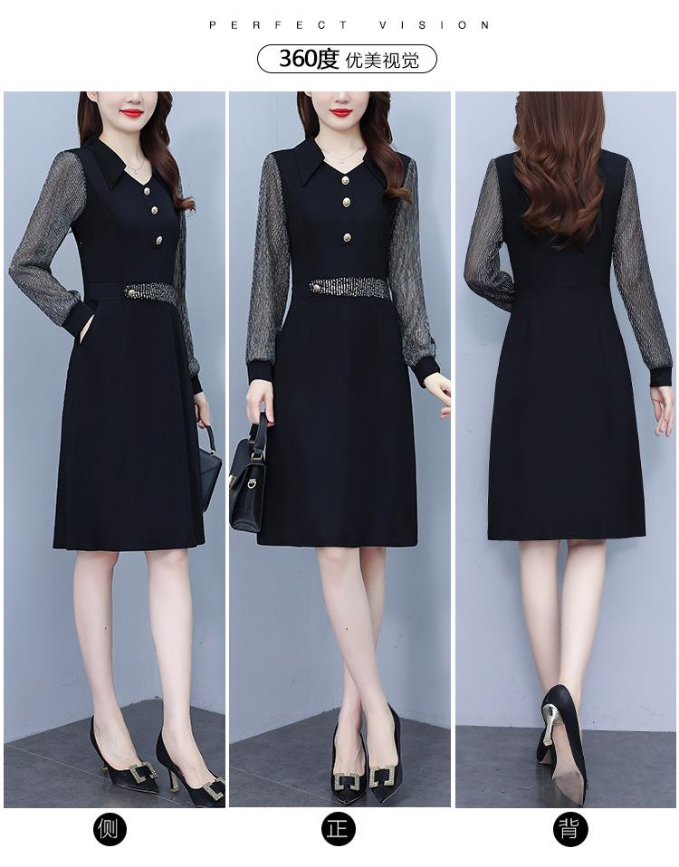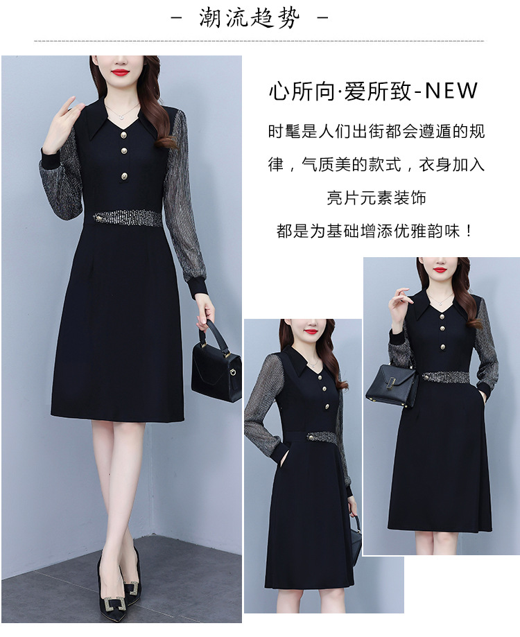 雀说新款时尚洋气翻领拼接假两件减龄显瘦中长款AL2535