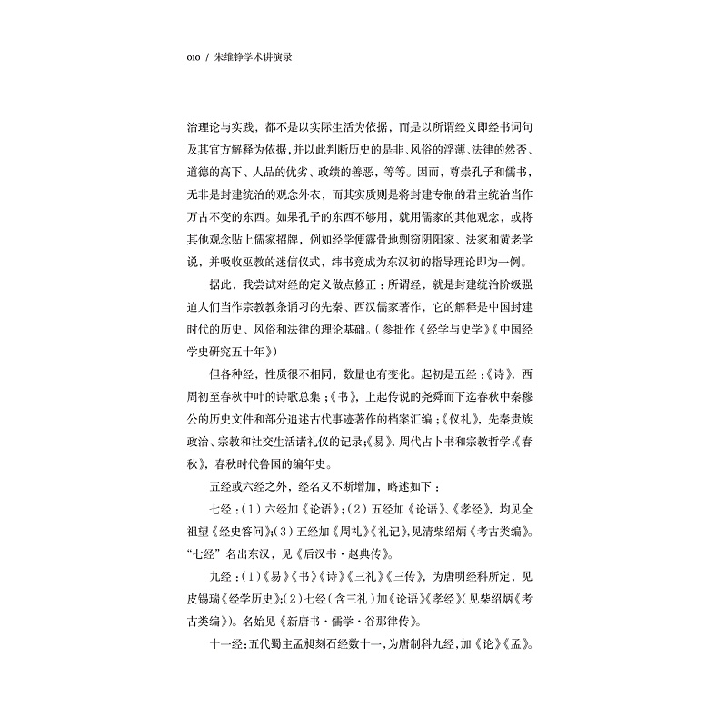 朱先生治学严谨、功力深湛,是中国经学史、中国思想文化史、中国学术史、中国史学史、中西文化交流史和中国近代史等多个领域的著名历史学家,在海内外享有很高声誉。本书收录了朱先生在经学史、史学史、中西文化交流等方面的演讲录,颇有章太炎之国学演讲录之风。本书通俗易懂,适合社会各界人士阅读。