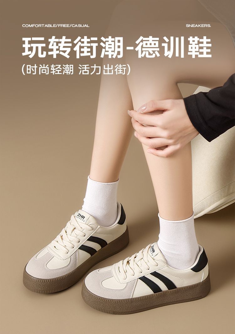 ZHR厚底增高德训鞋女2025春秋新款复古百搭运动休闲鞋超轻便女鞋