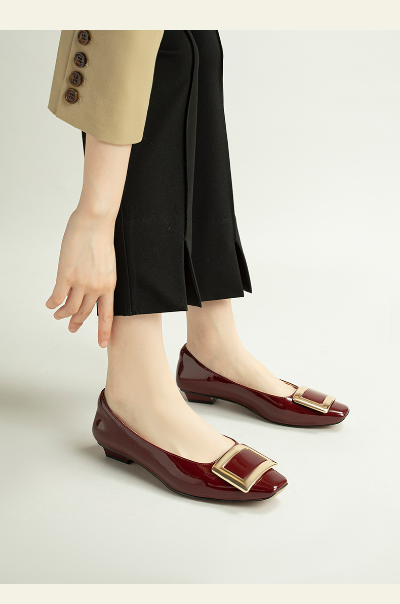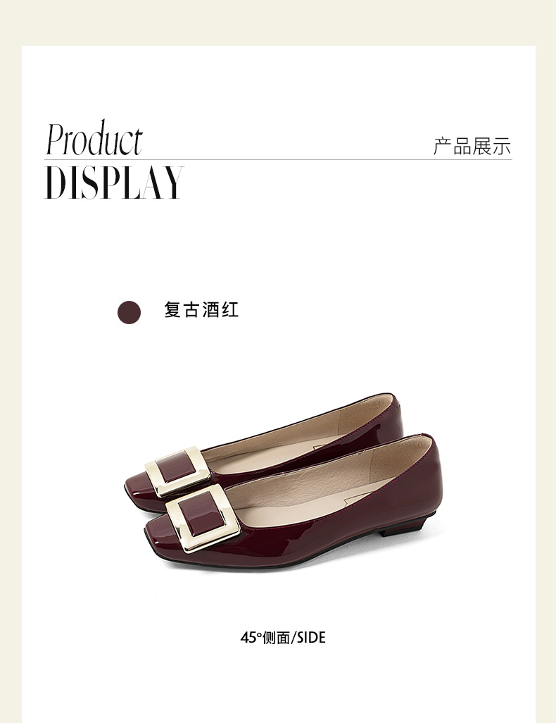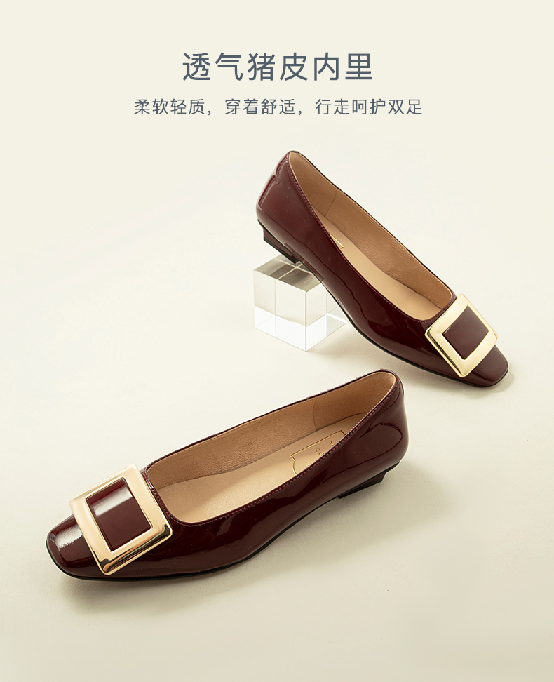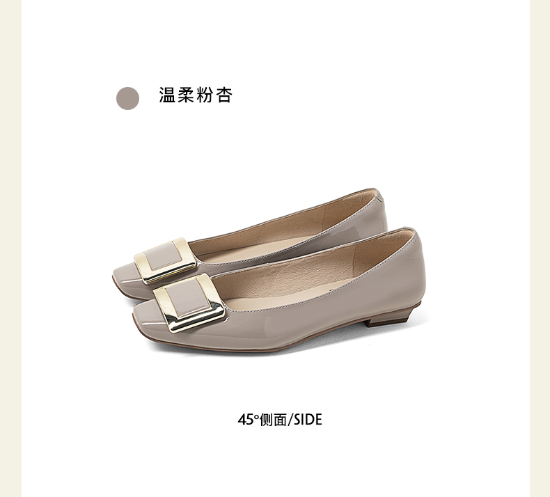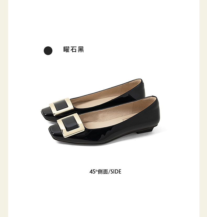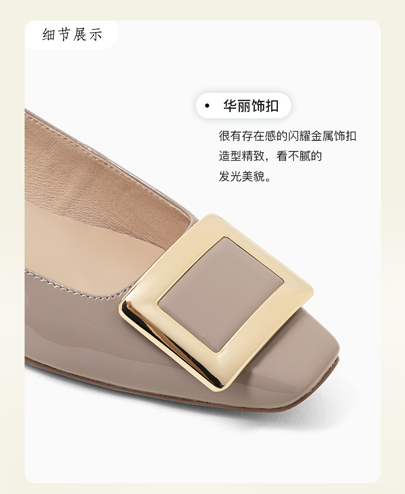 康莉KYQ2A605粗跟单鞋春季新款方扣低跟漆皮气质平底鞋舒适通勤
