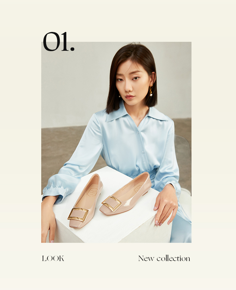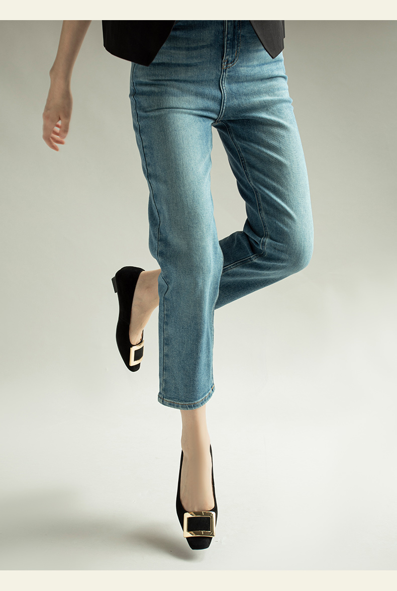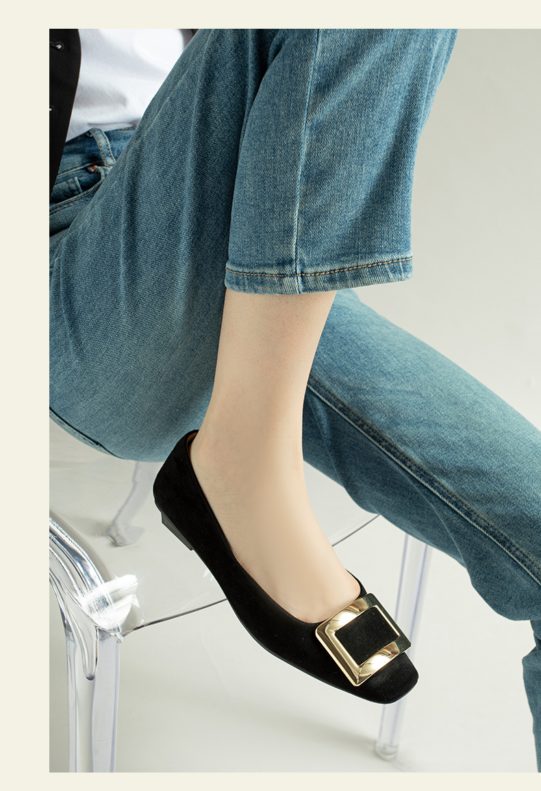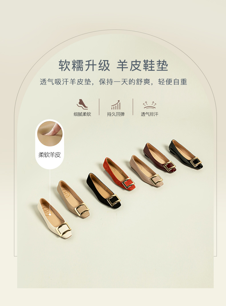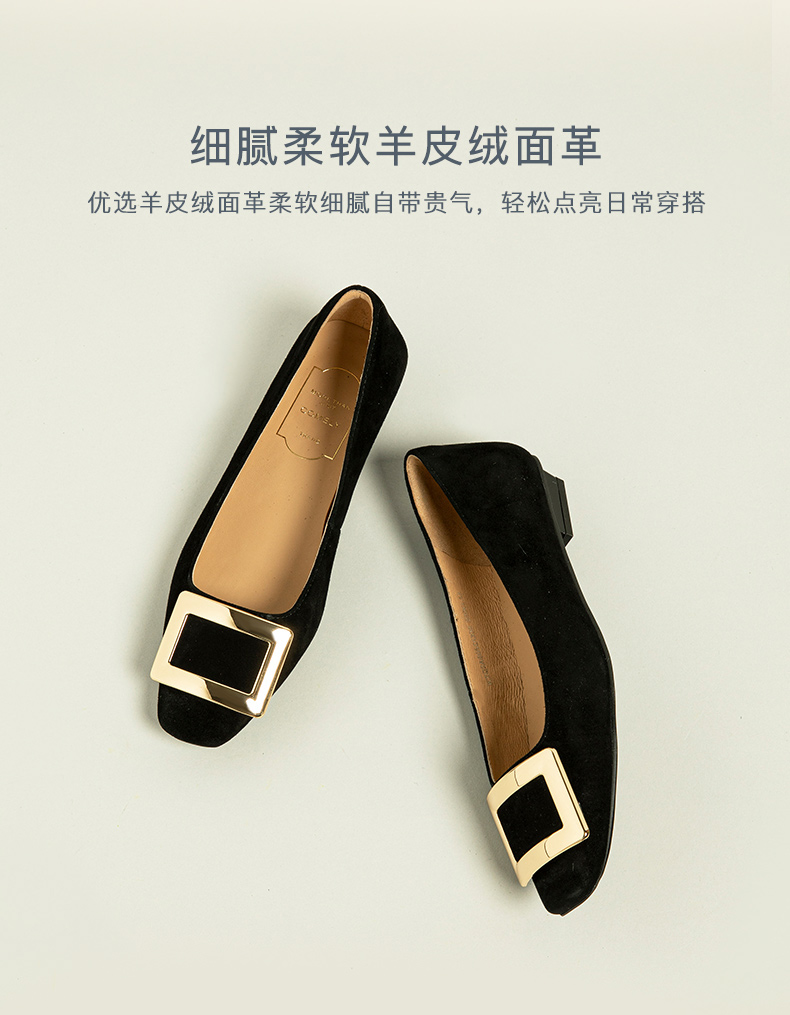 康莉KYQ2A605粗跟单鞋春季新款方扣低跟漆皮气质平底鞋舒适通勤