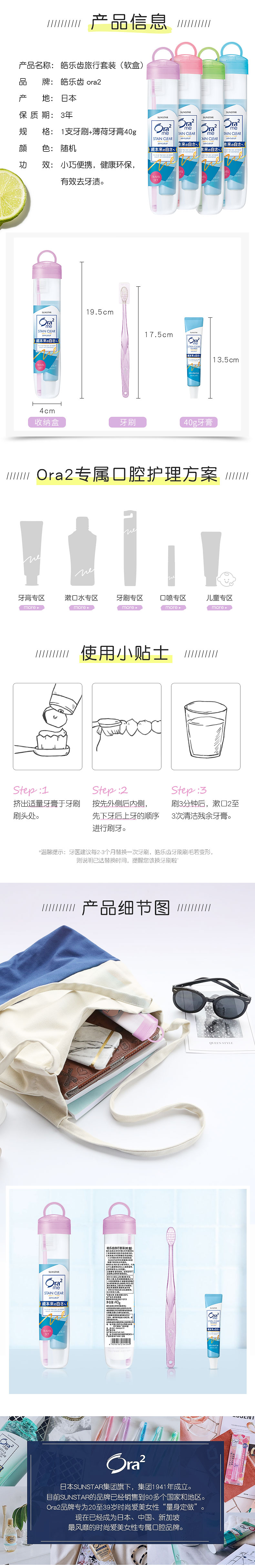 【品牌直发】日本进口ora2皓乐齿牙刷牙膏旅行装软盒便携果味清洁牙齿颜色随机