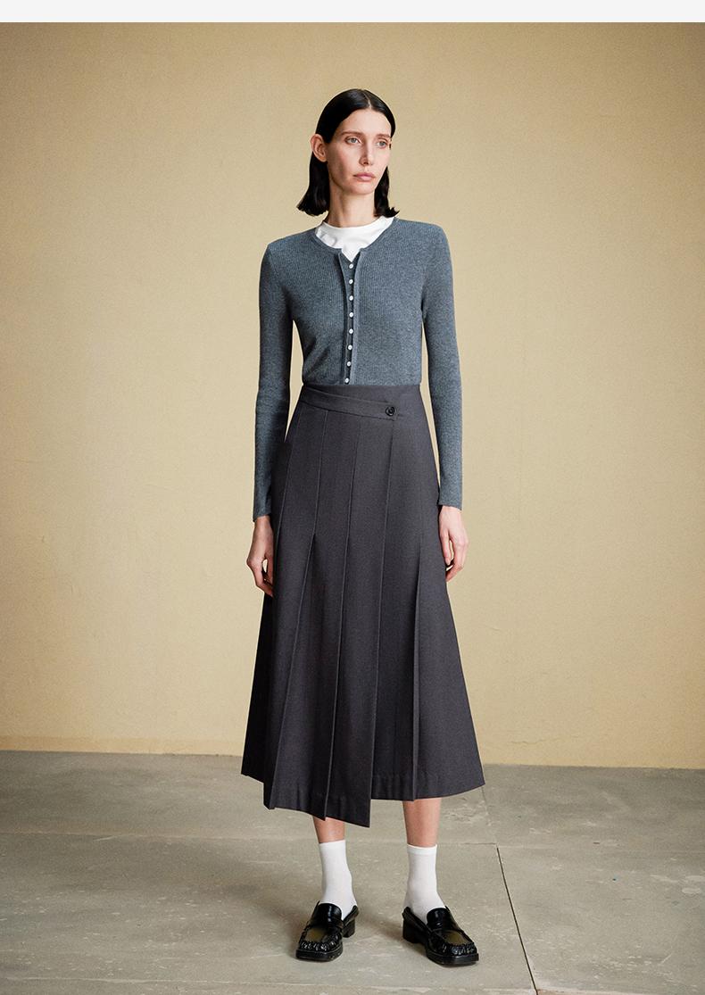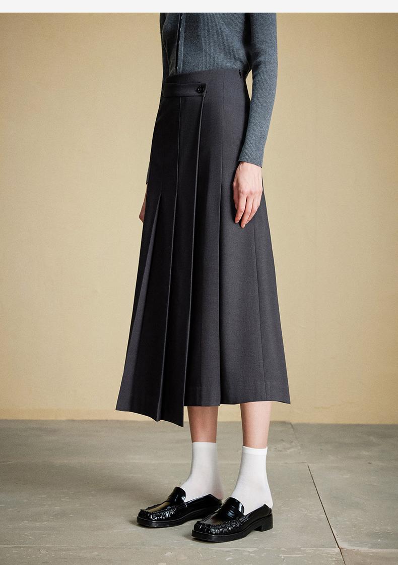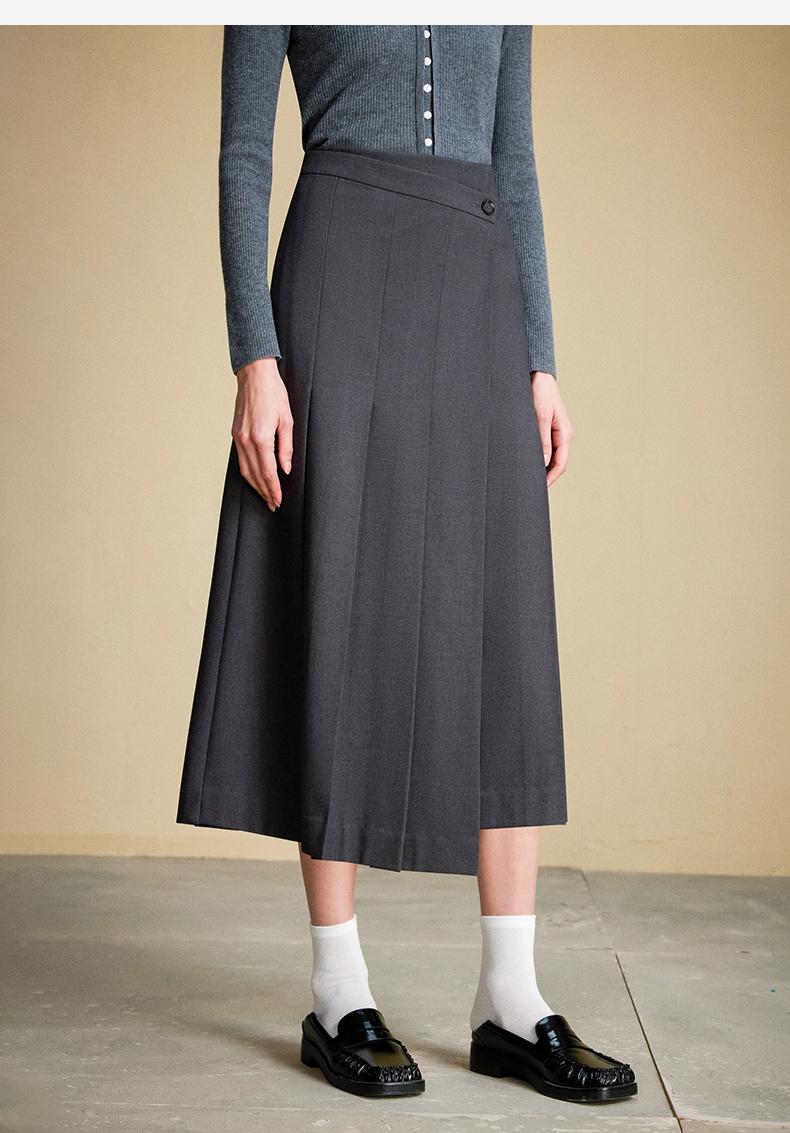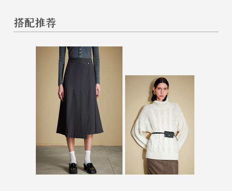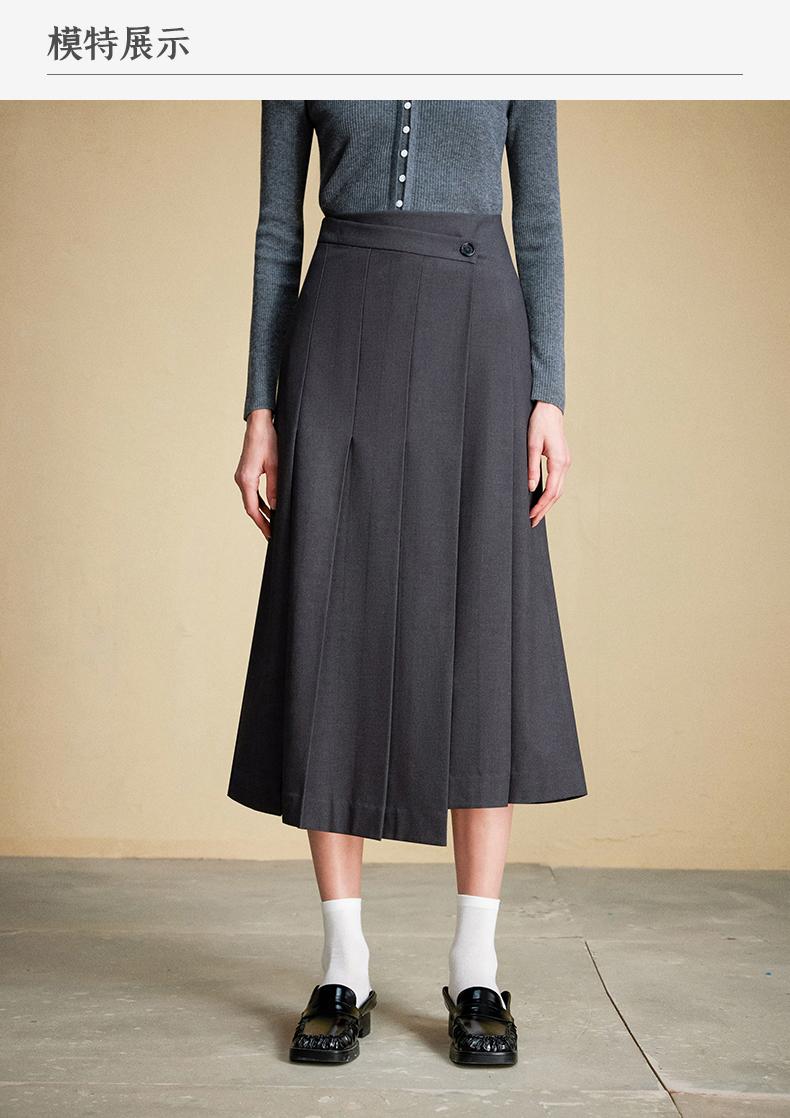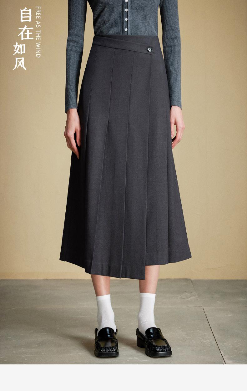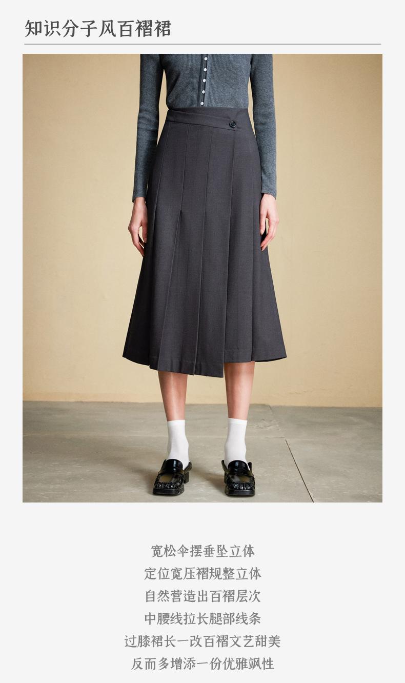 西嘉C+IMPRESS/西嘉知识分子风半身裙女秋冬不对称搭片设计感高腰百褶BQ2304031