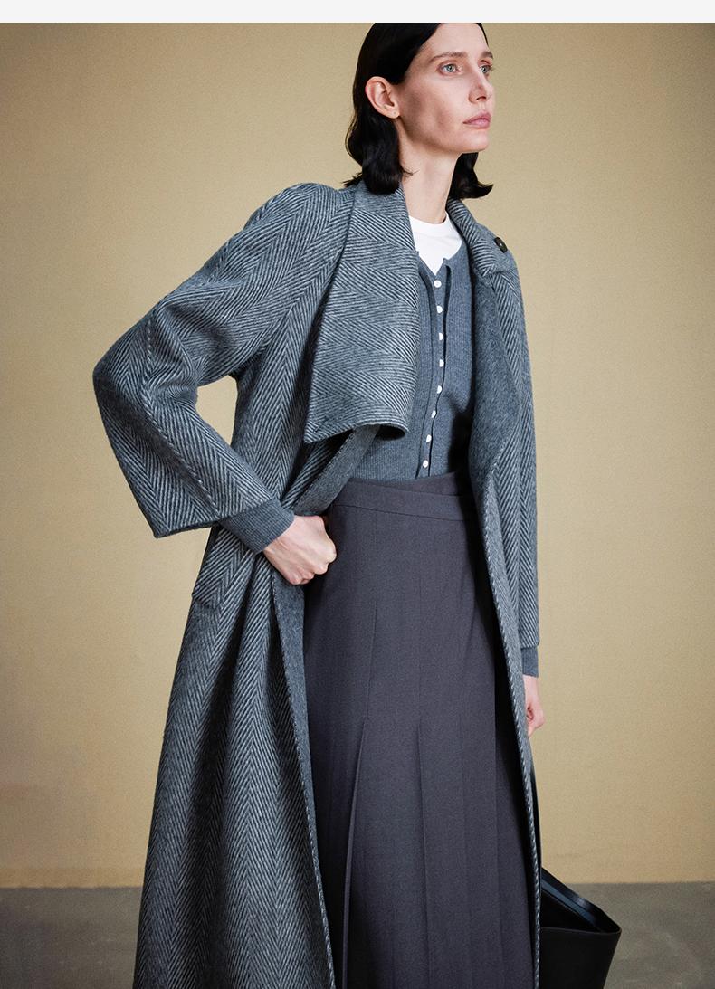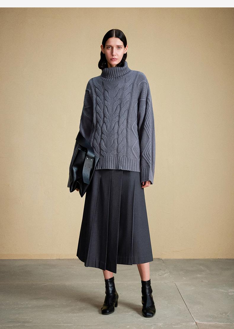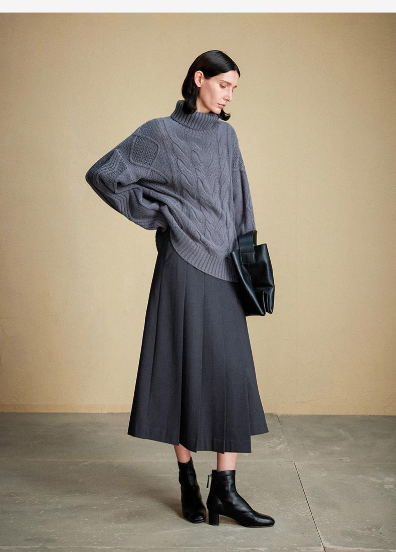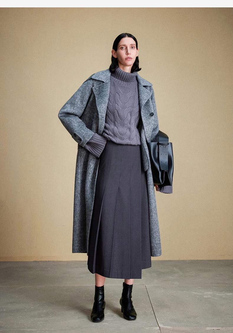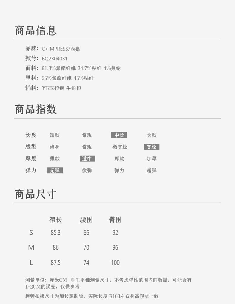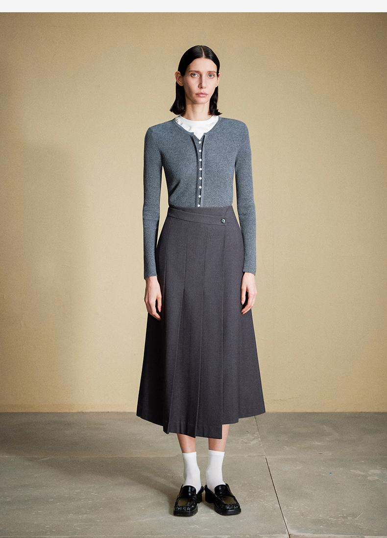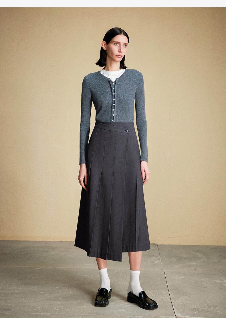 西嘉C+IMPRESS/西嘉知识分子风半身裙女秋冬不对称搭片设计感高腰百褶BQ2304031