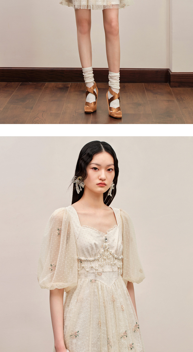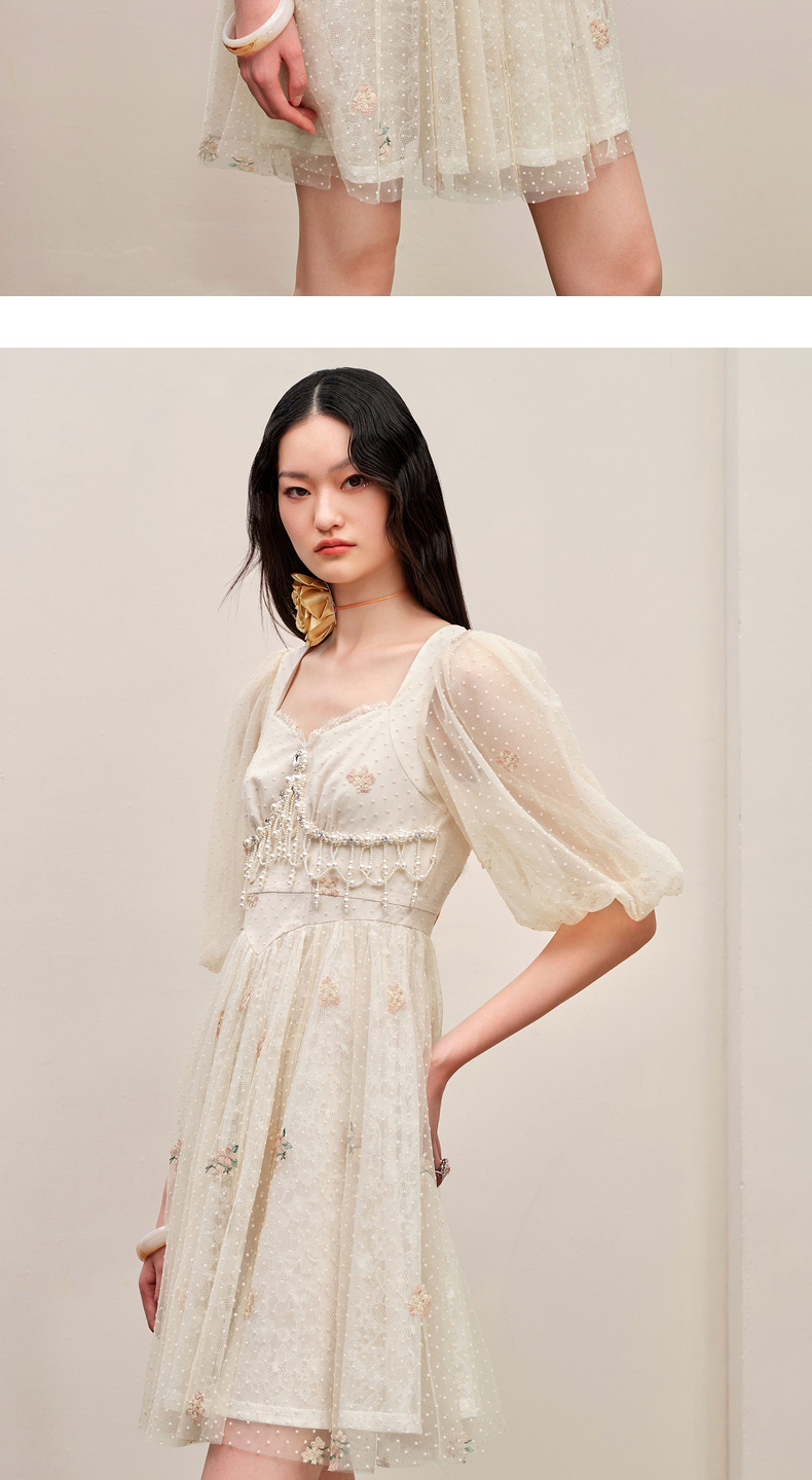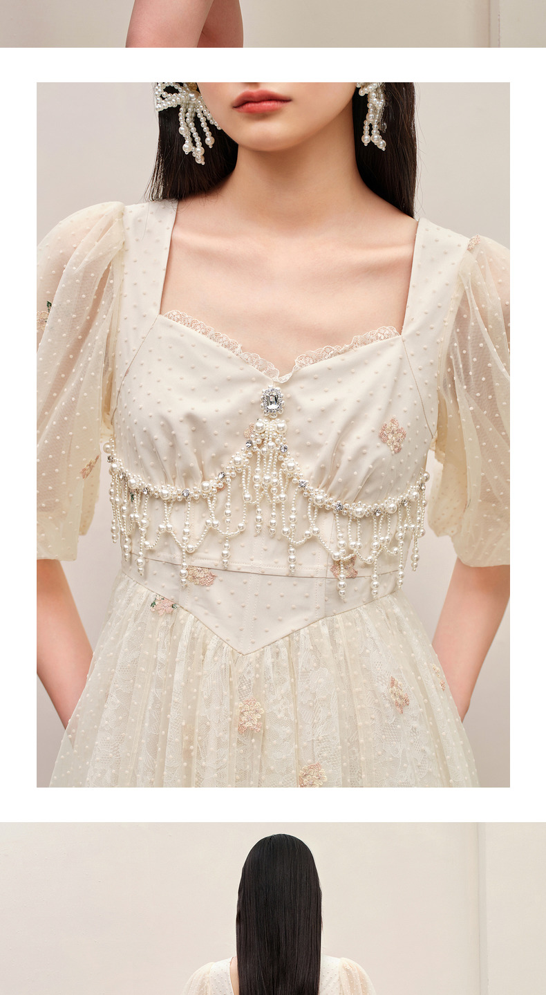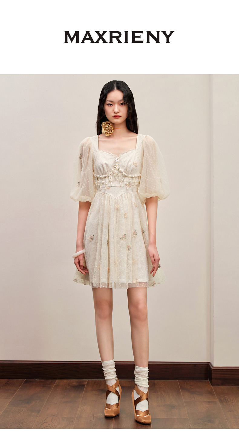 MAXRIENY华丽宫廷连衣裙泡泡袖裙子订婚领证小礼裙(货号:MC88DR385)