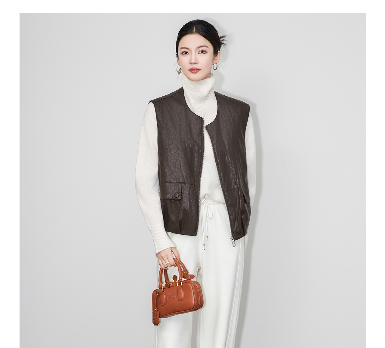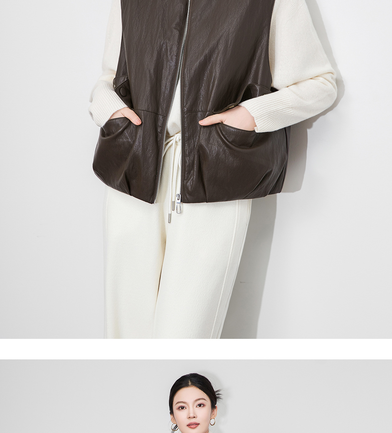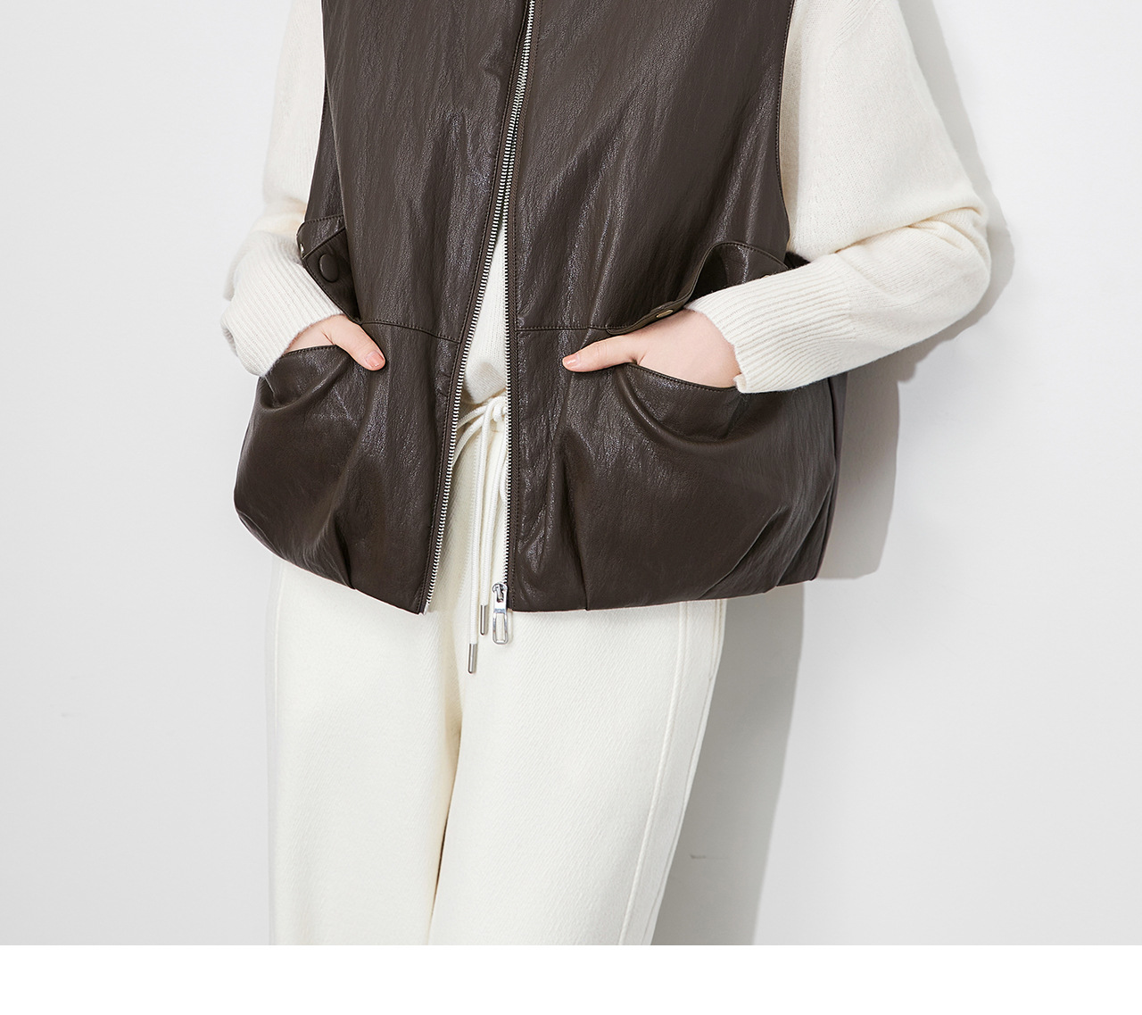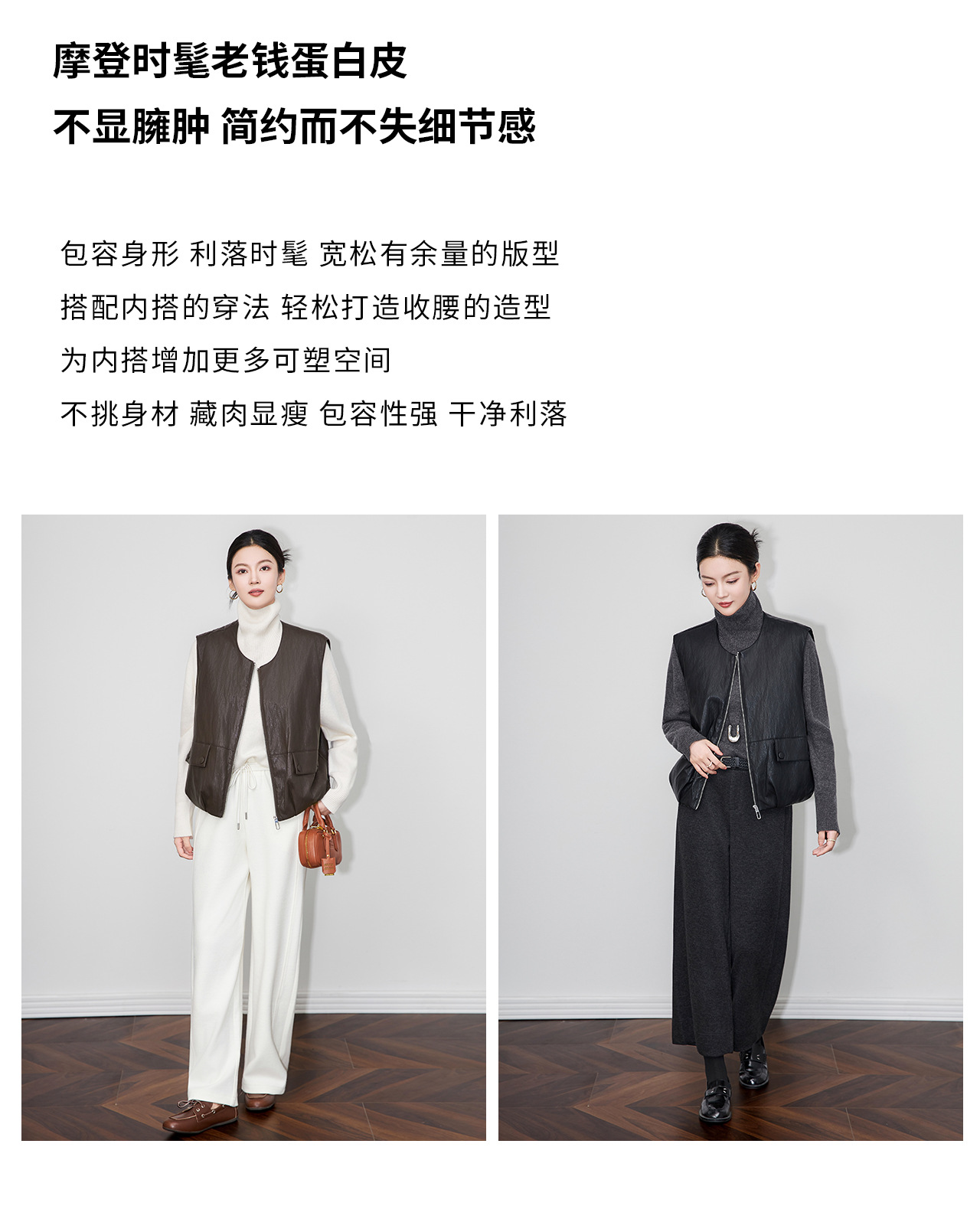「高货wl」全新升级【铂金会员367/天猫499/差价132】(04425)洛诗琳2025秋冬老钱风蛋白皮PU轻薄白鸭绒羽绒服马甲外套