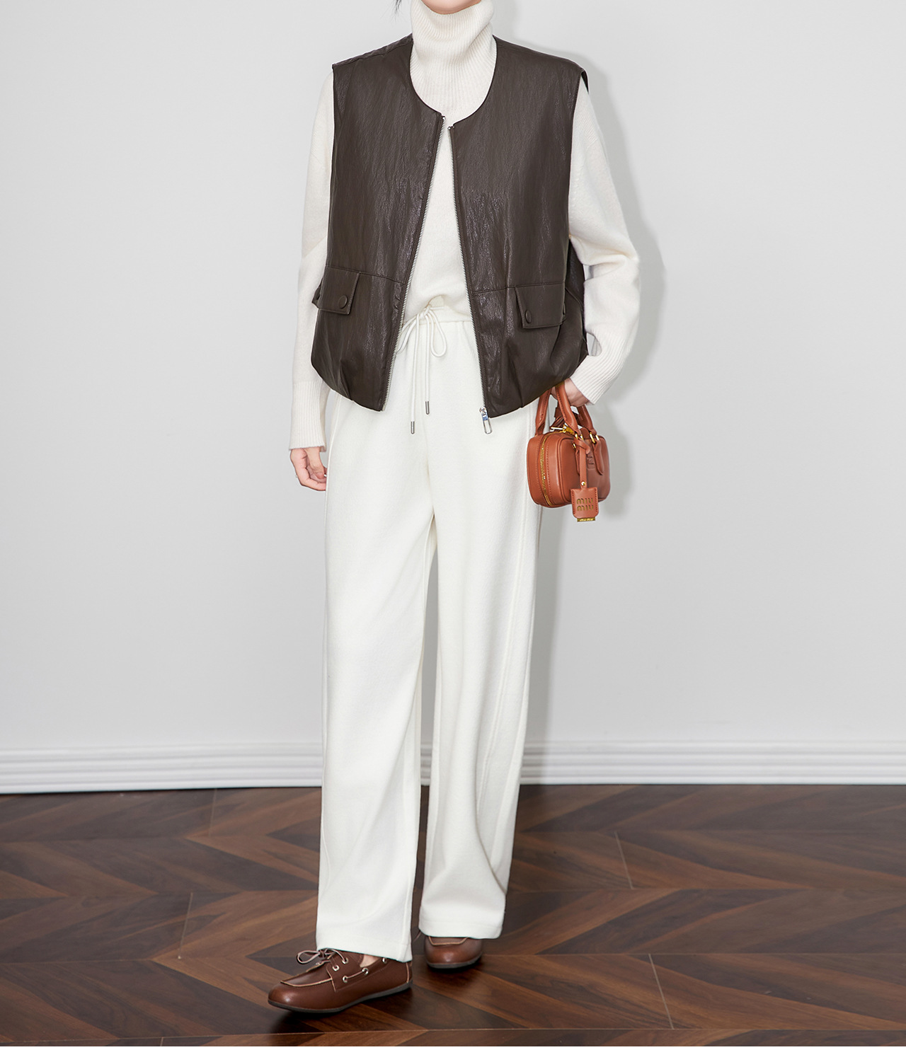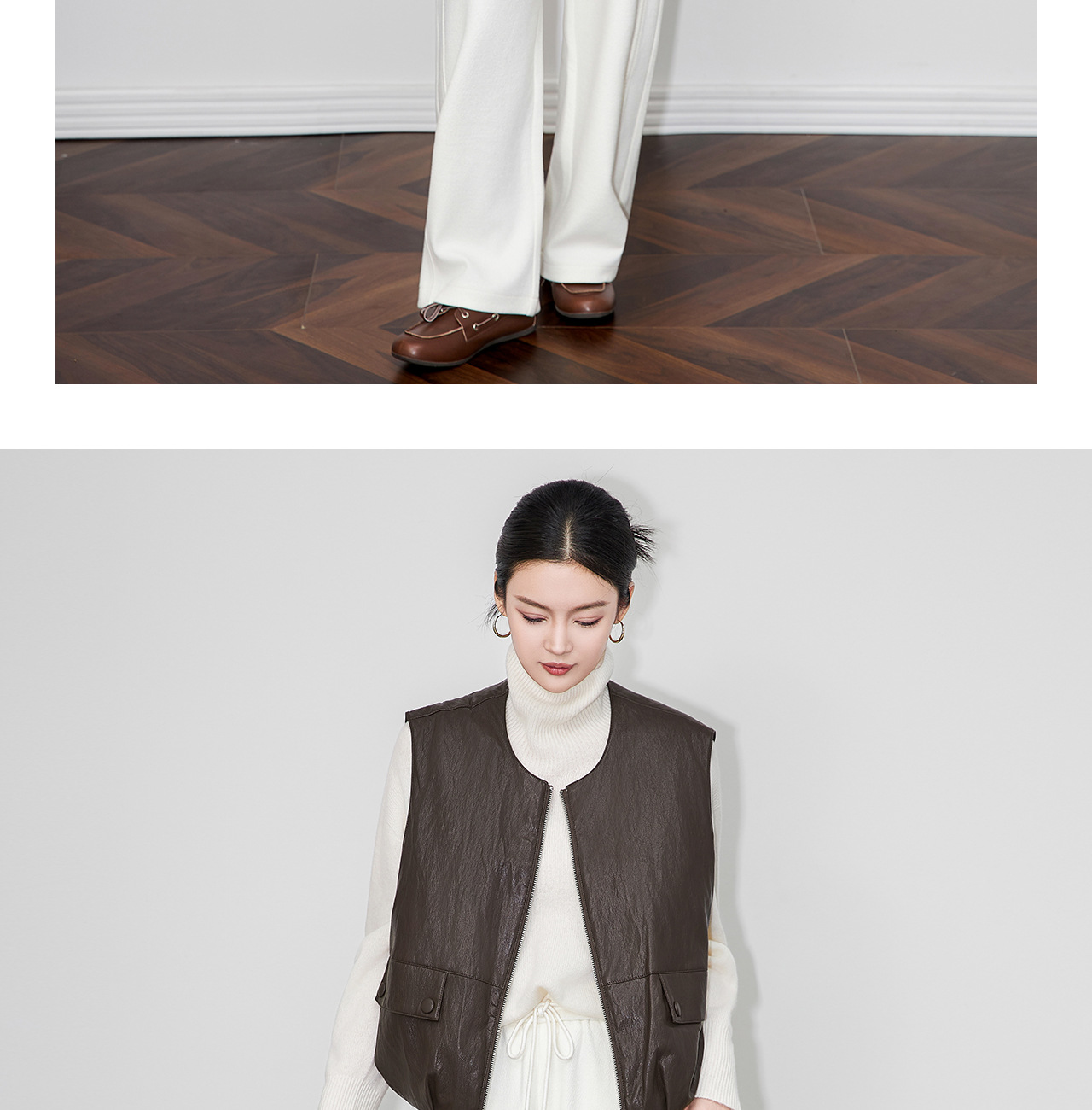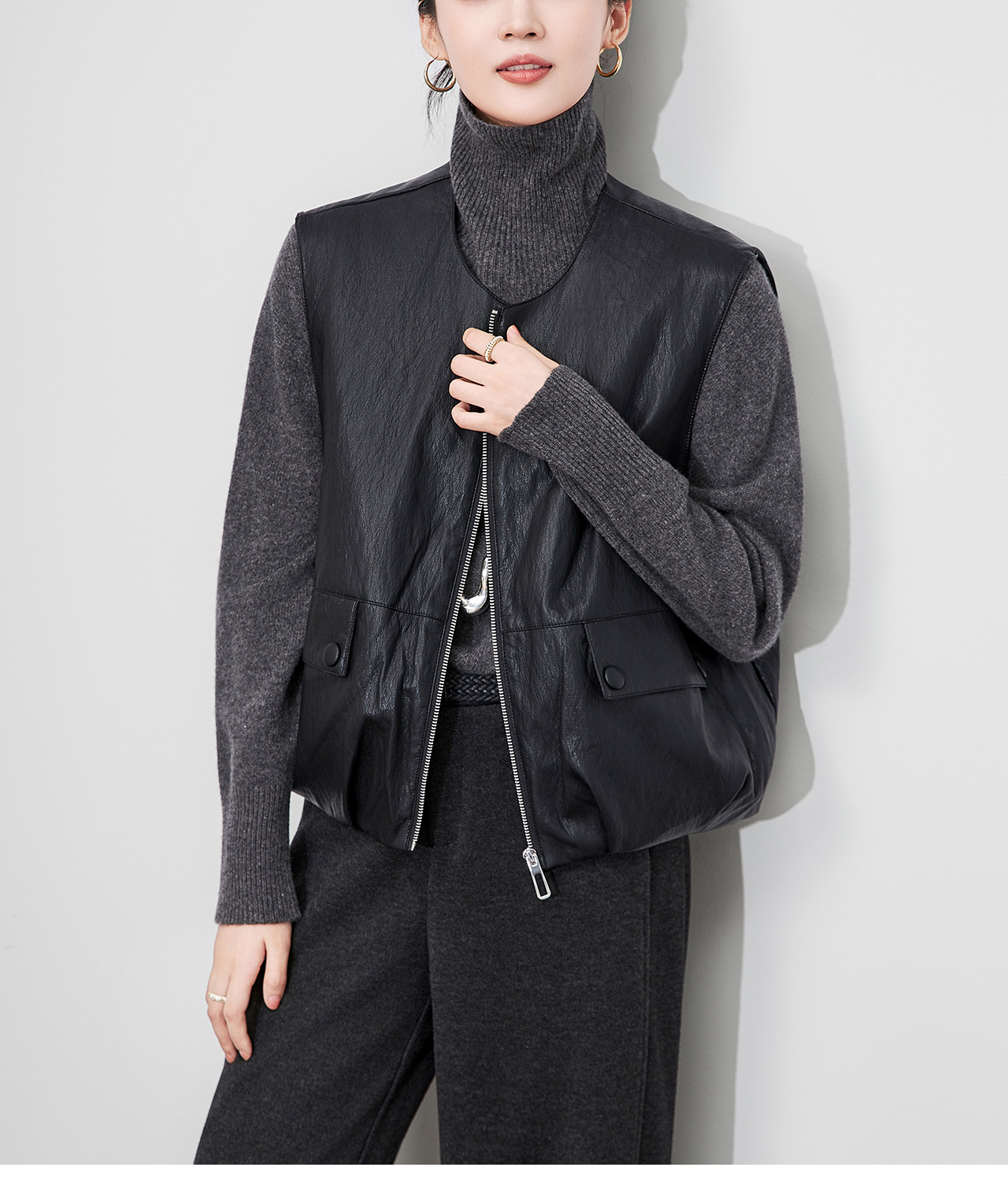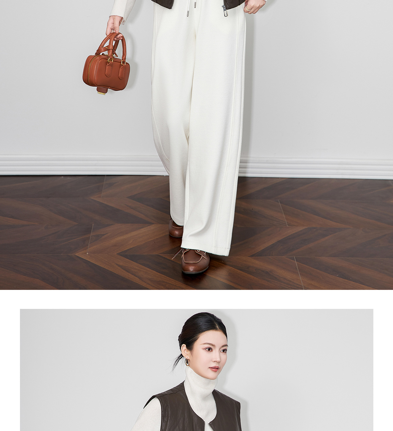 「高货wl」全新升级【铂金会员367/天猫499/差价132】(04425)洛诗琳2025秋冬老钱风蛋白皮PU轻薄白鸭绒羽绒服马甲外套