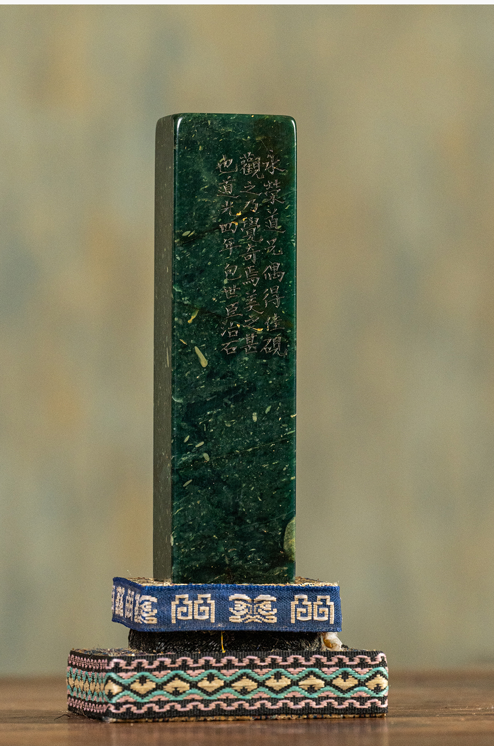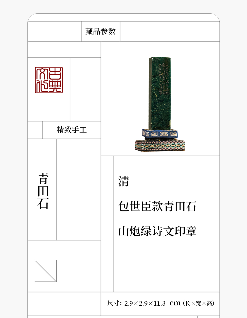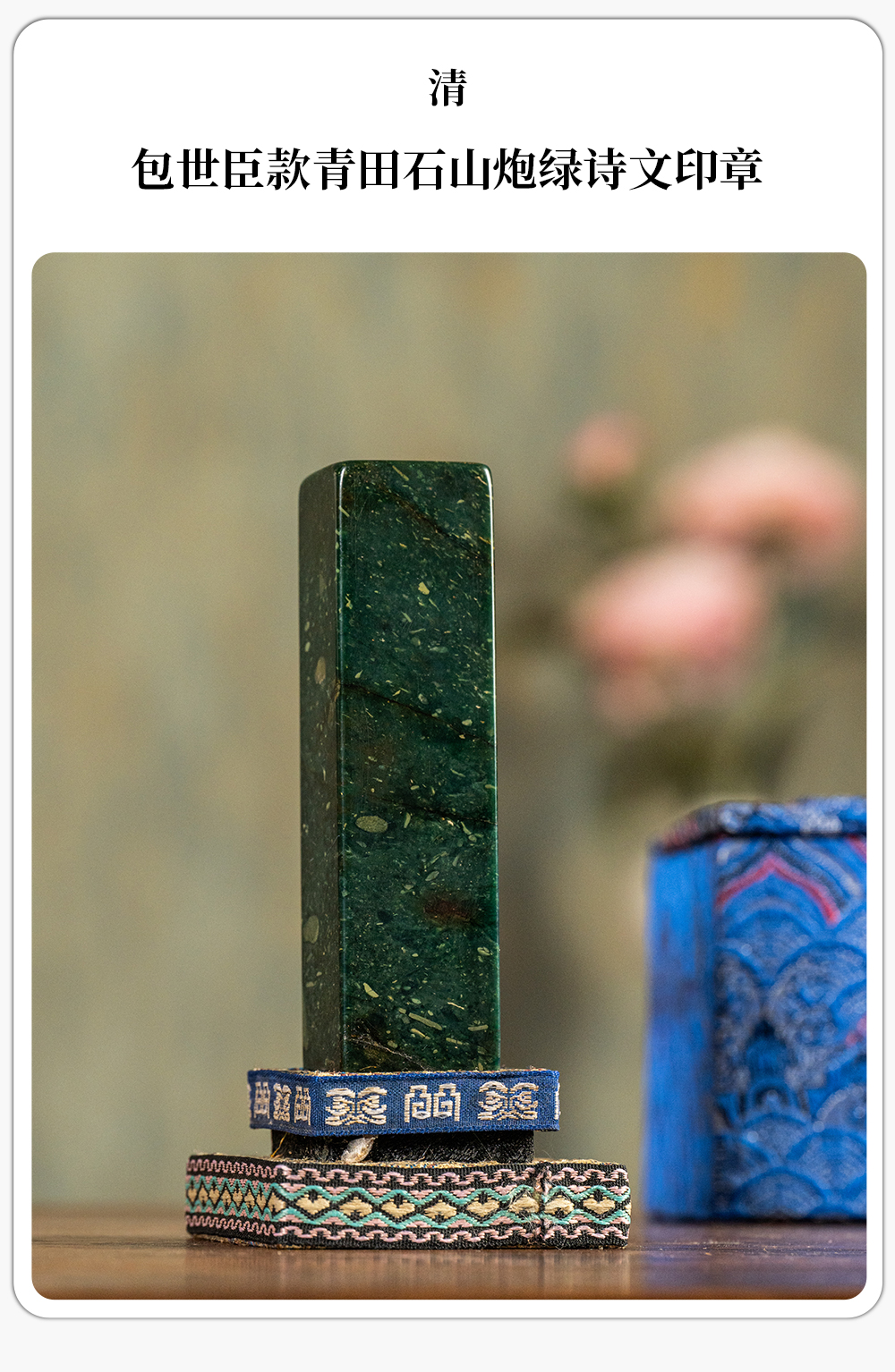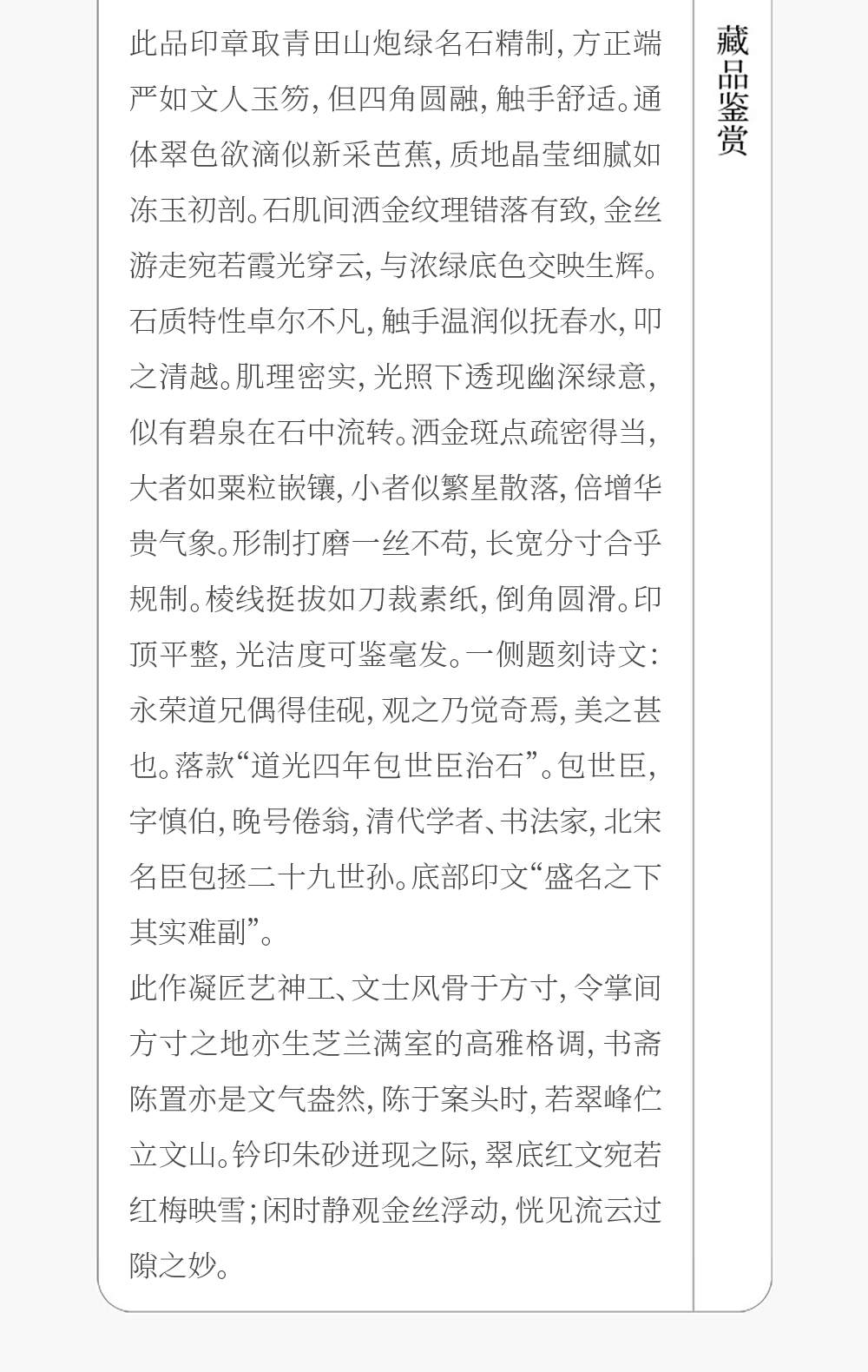 清 包世臣款青田石山炮绿诗文印章