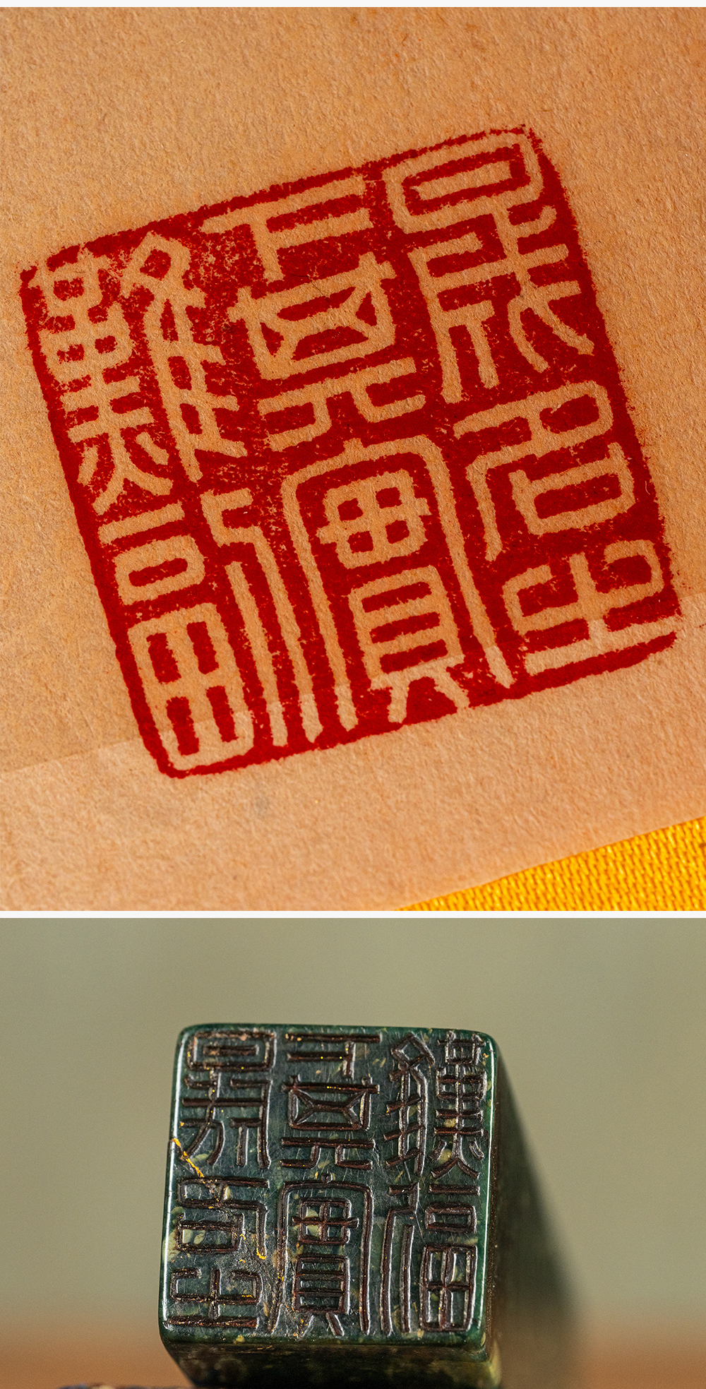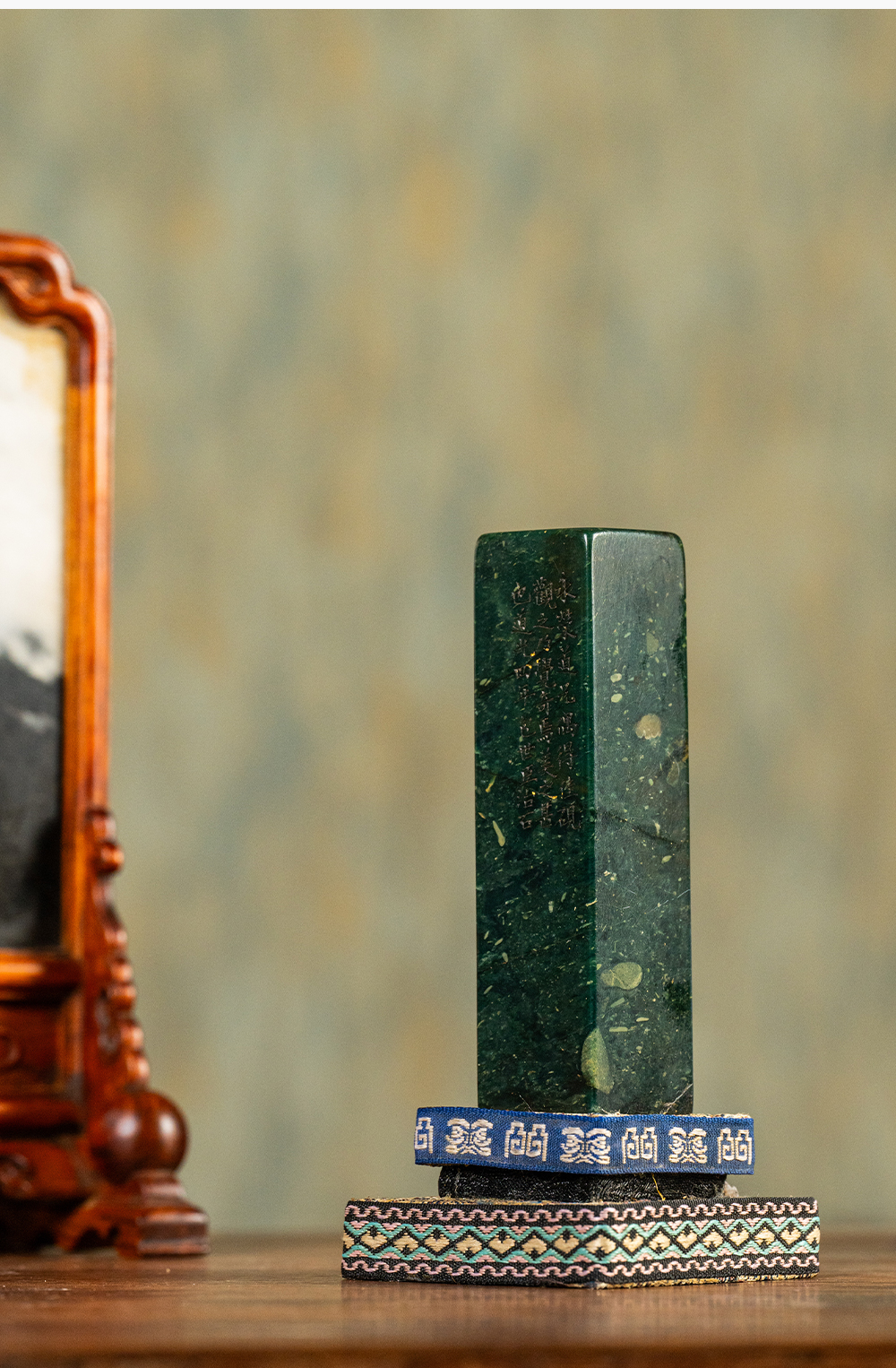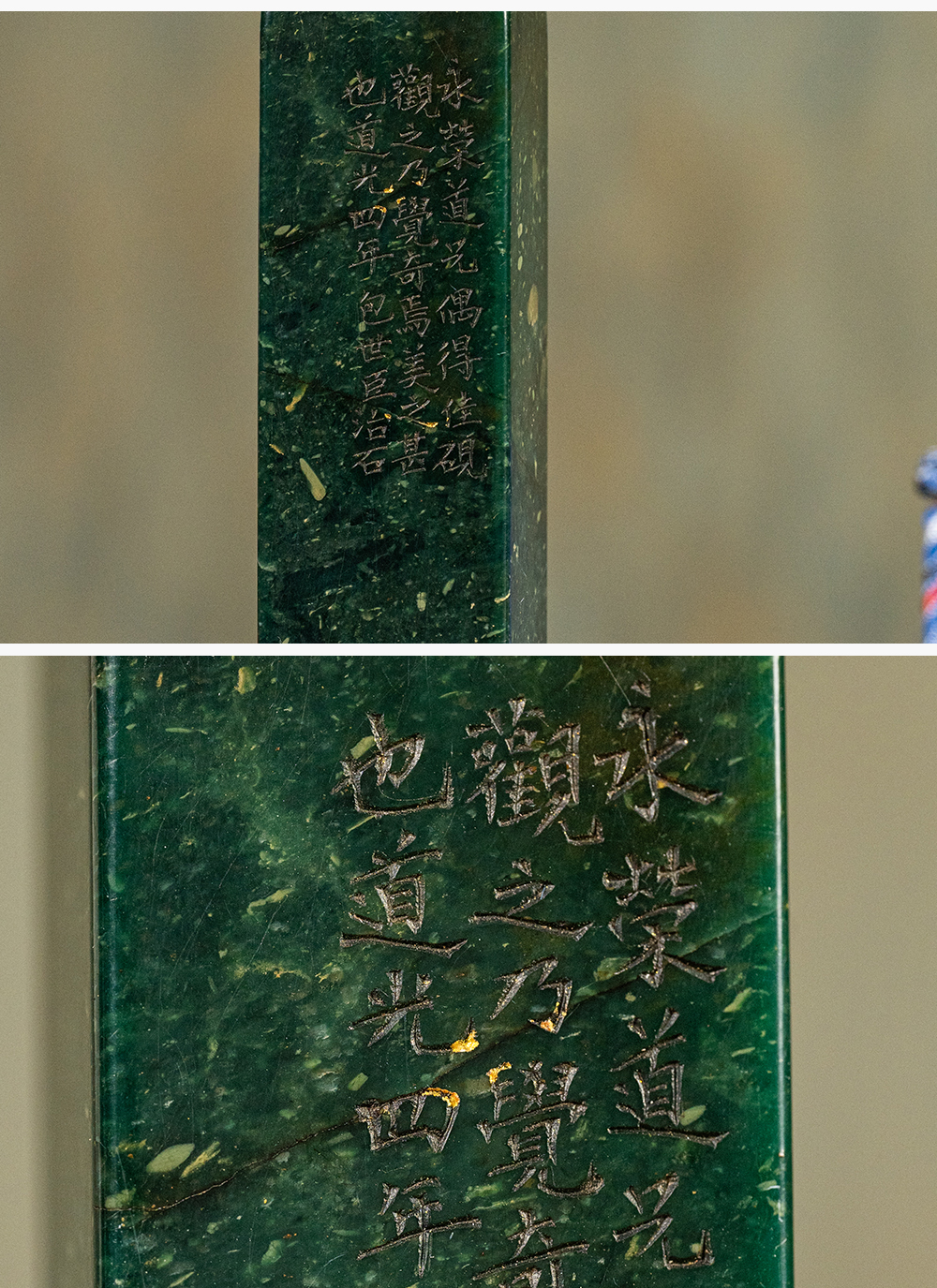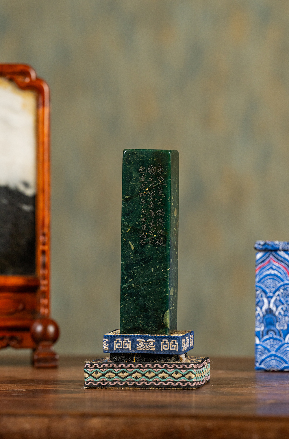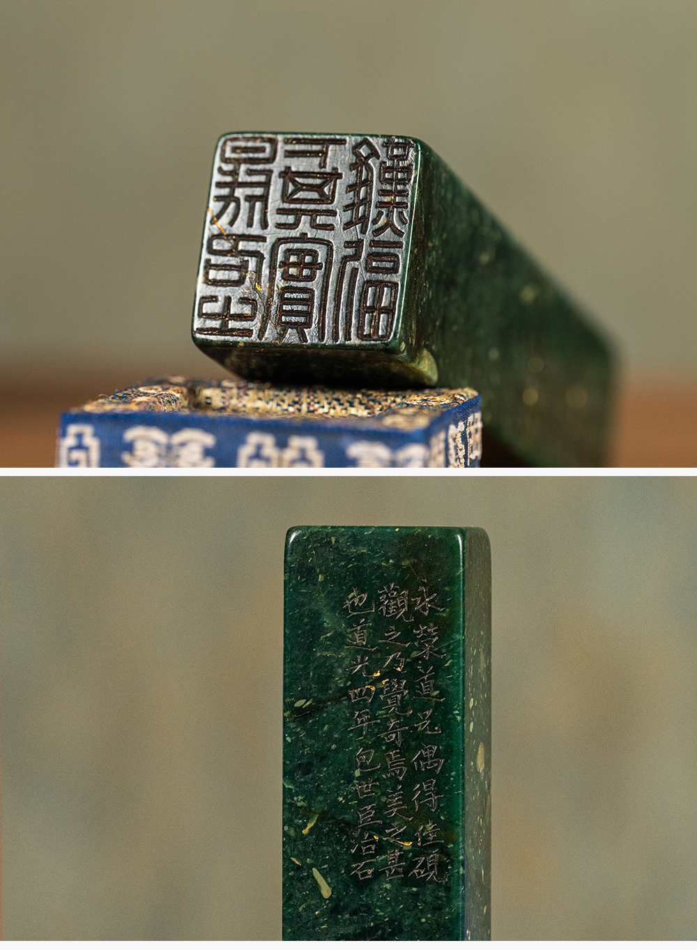 清 包世臣款青田石山炮绿诗文印章