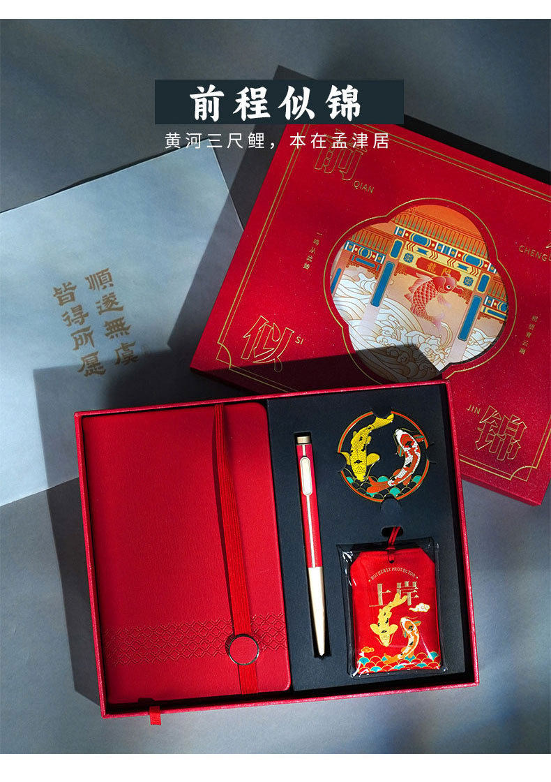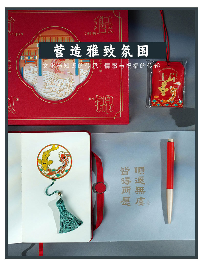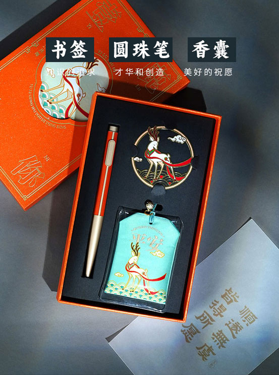【东方祥瑞文具礼盒套装】中国风签字笔笔记本书签香囊