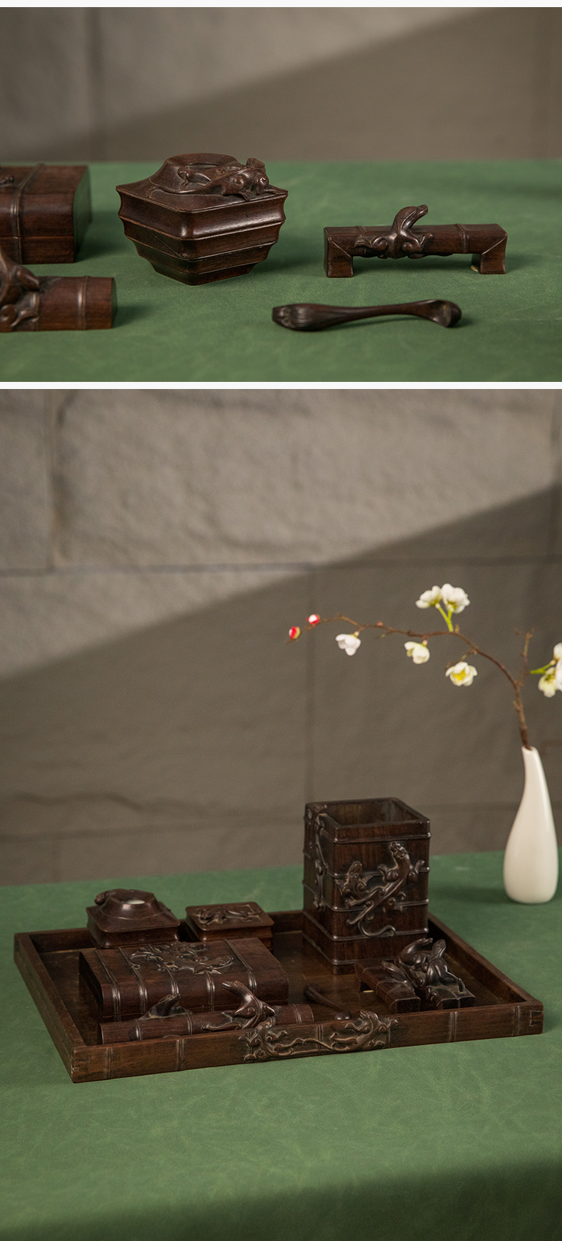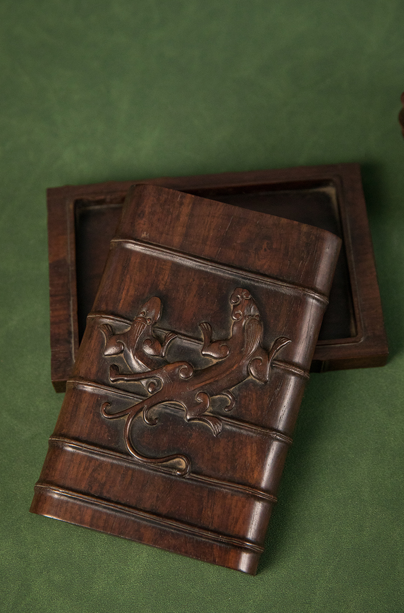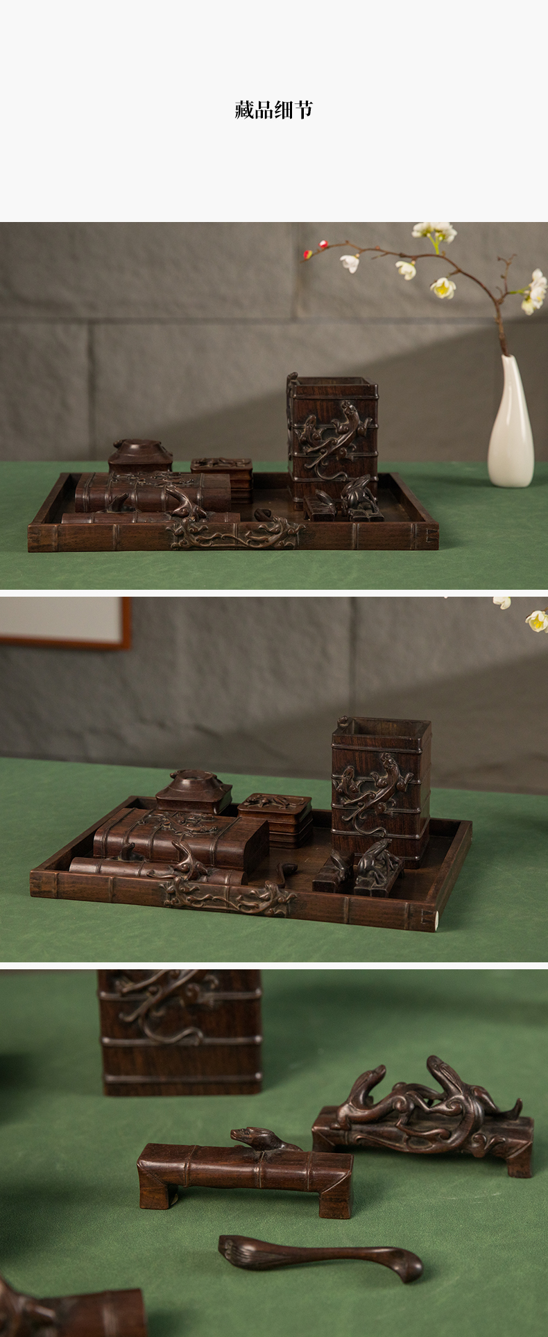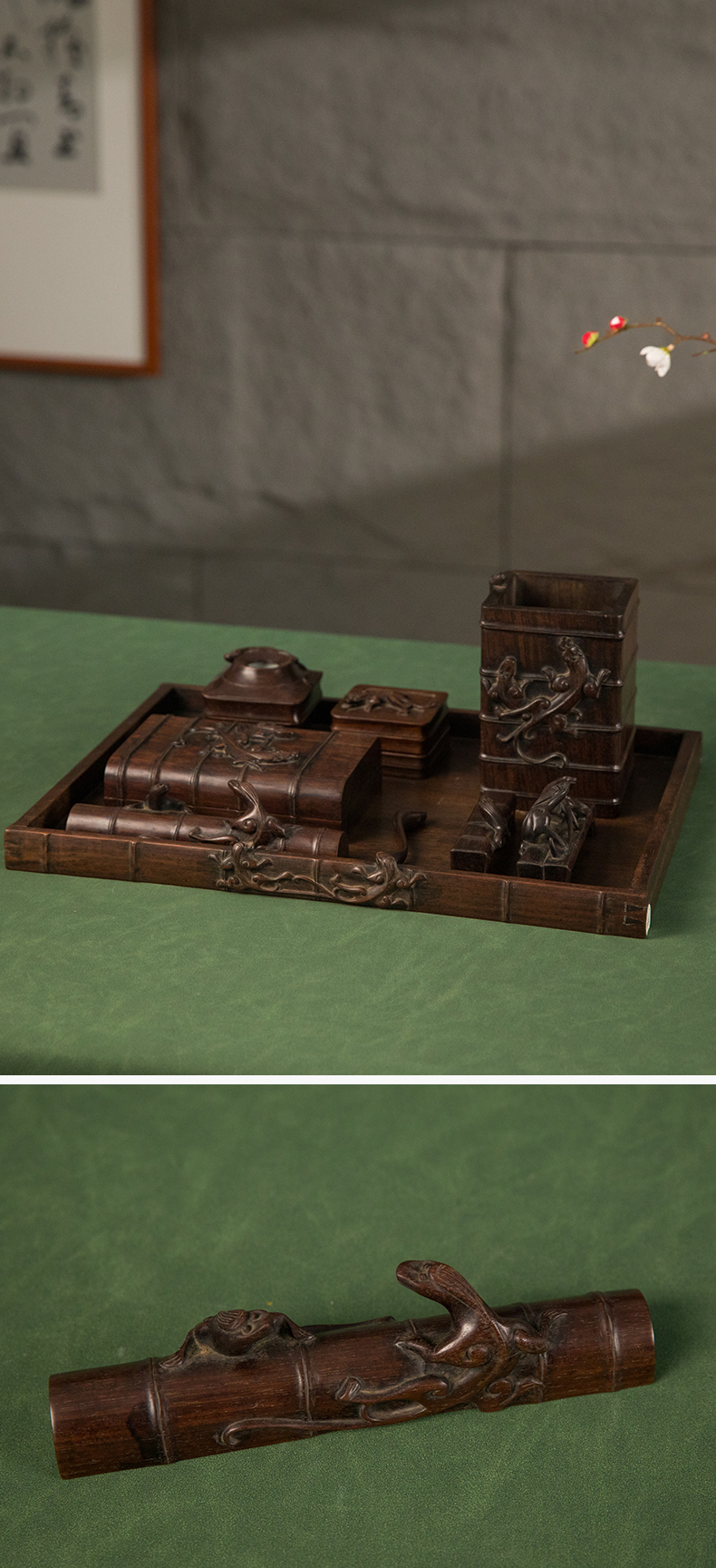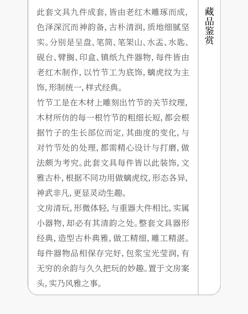 民国 红木雕竹节螭虎纹文具成套(一套九件)