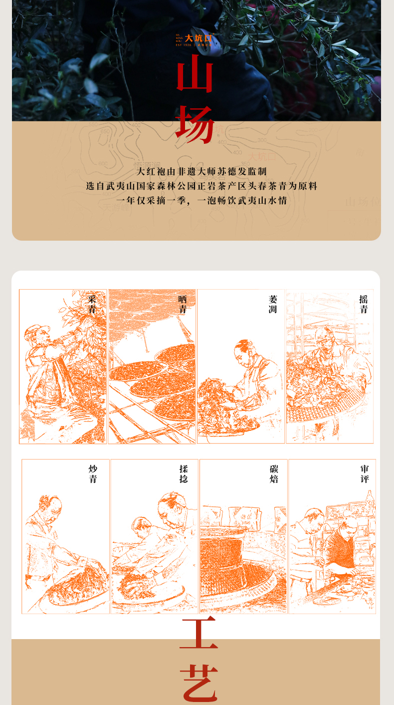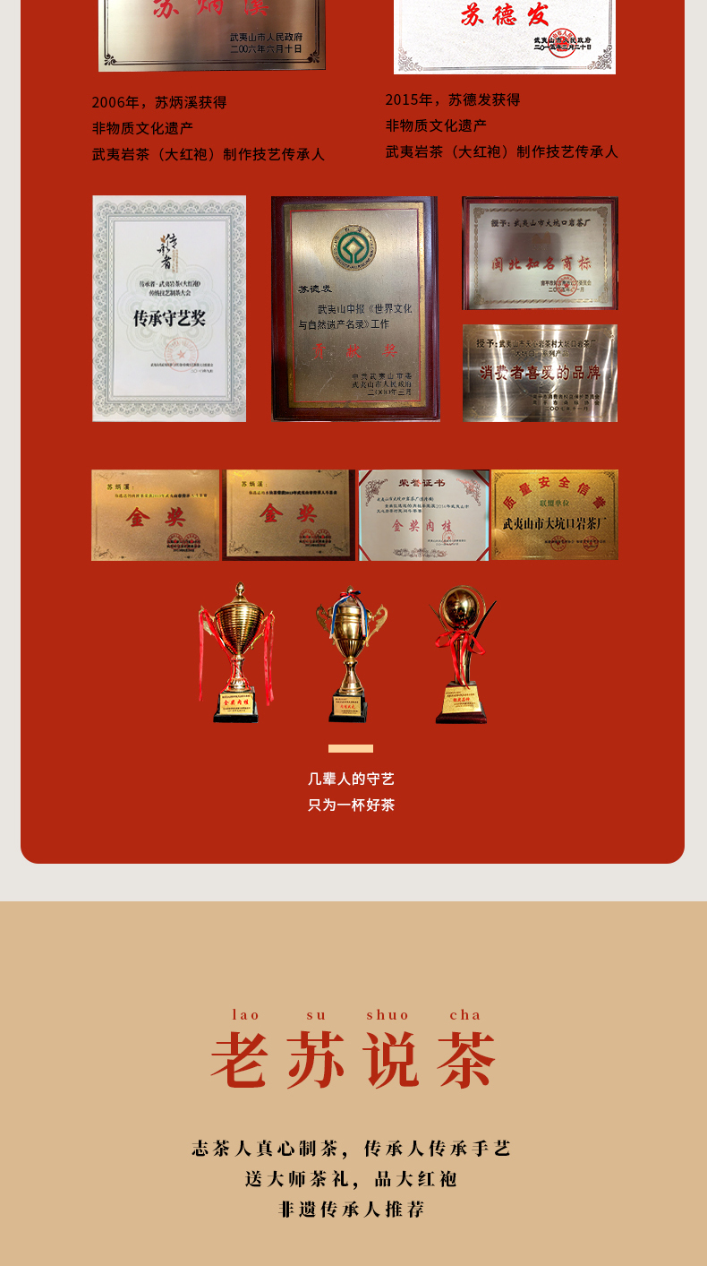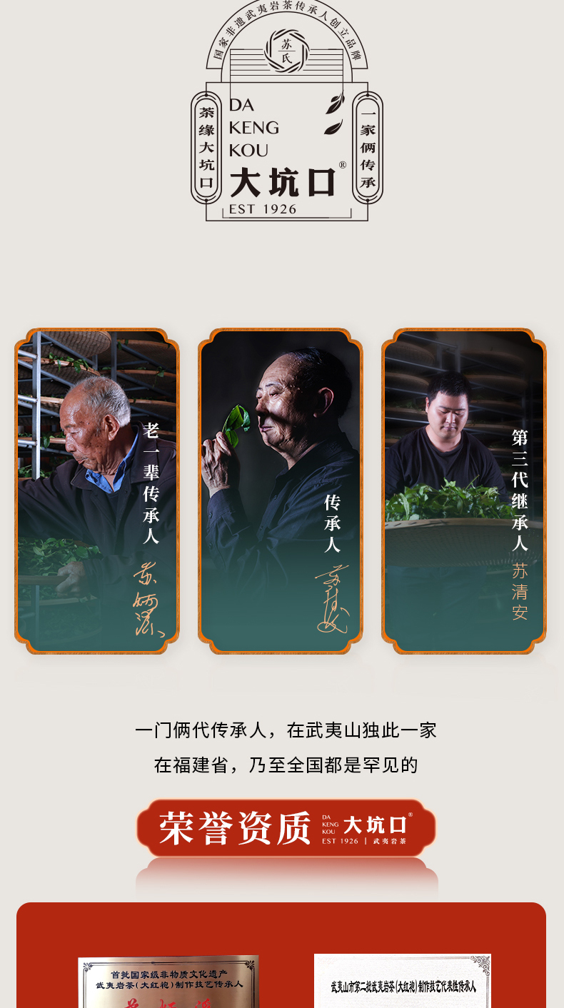 - 大坑口岩茶有限公司,位于武夷山市-天心村,茶山分布于正岩产区的“三坑、两涧”,由首批非物质文化遗产武夷岩茶制作技艺传承人:苏炳溪和第二批传承人:苏德发先生的精心手工制作,造就了大坑口岩茶的独特品质