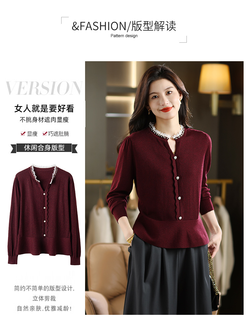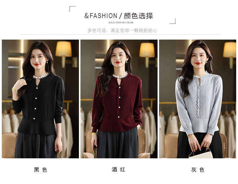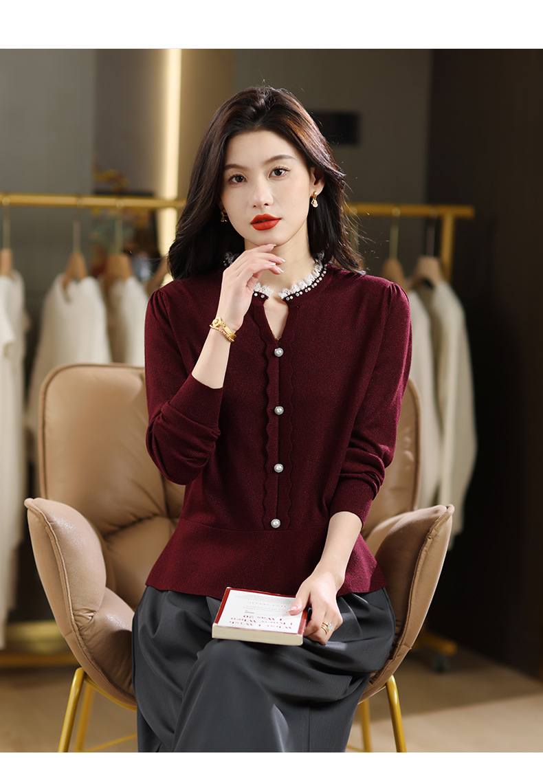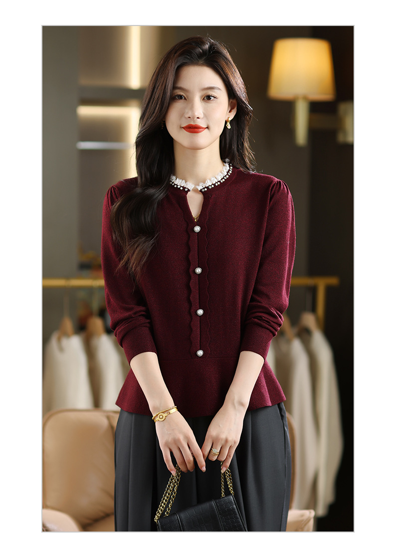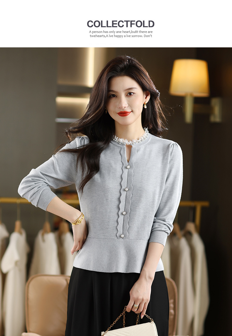 CC 101-9502拼接花边蕾丝领针织打底衫洋气收腰上衣