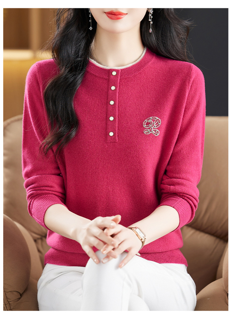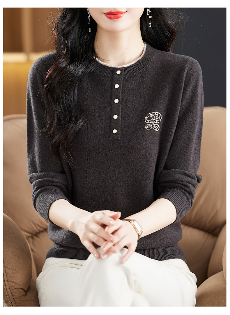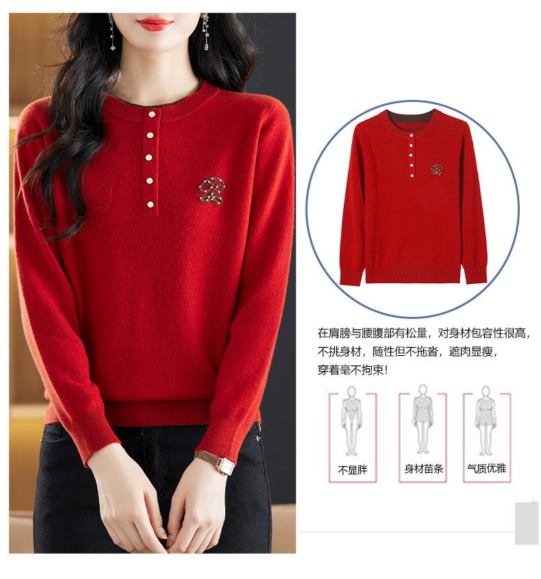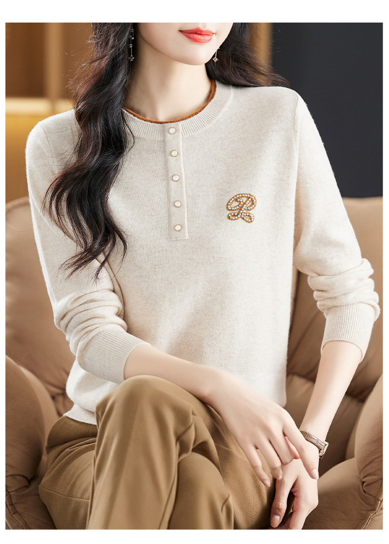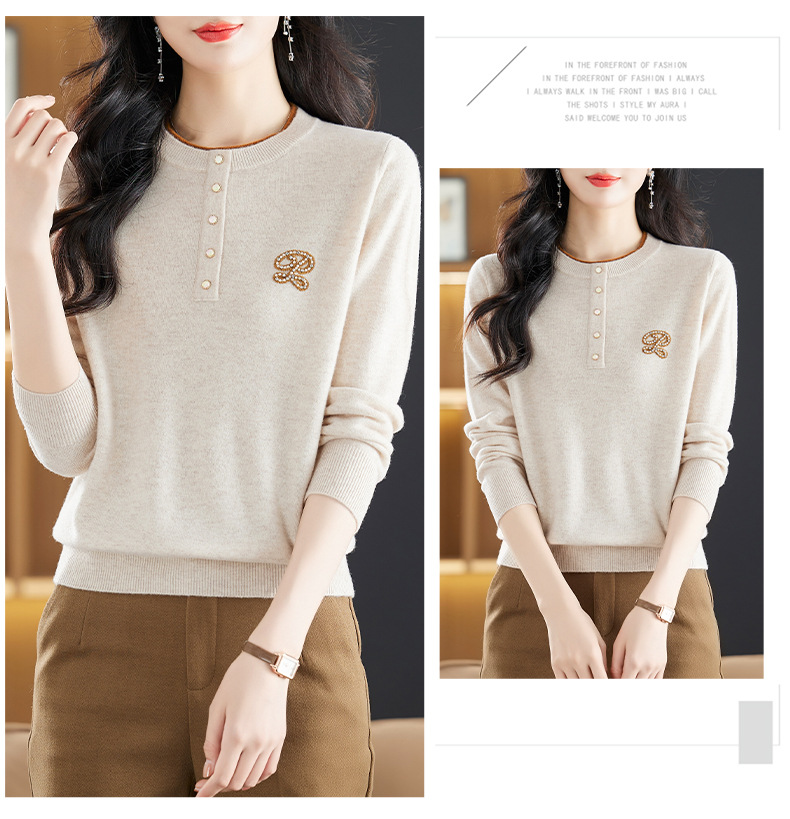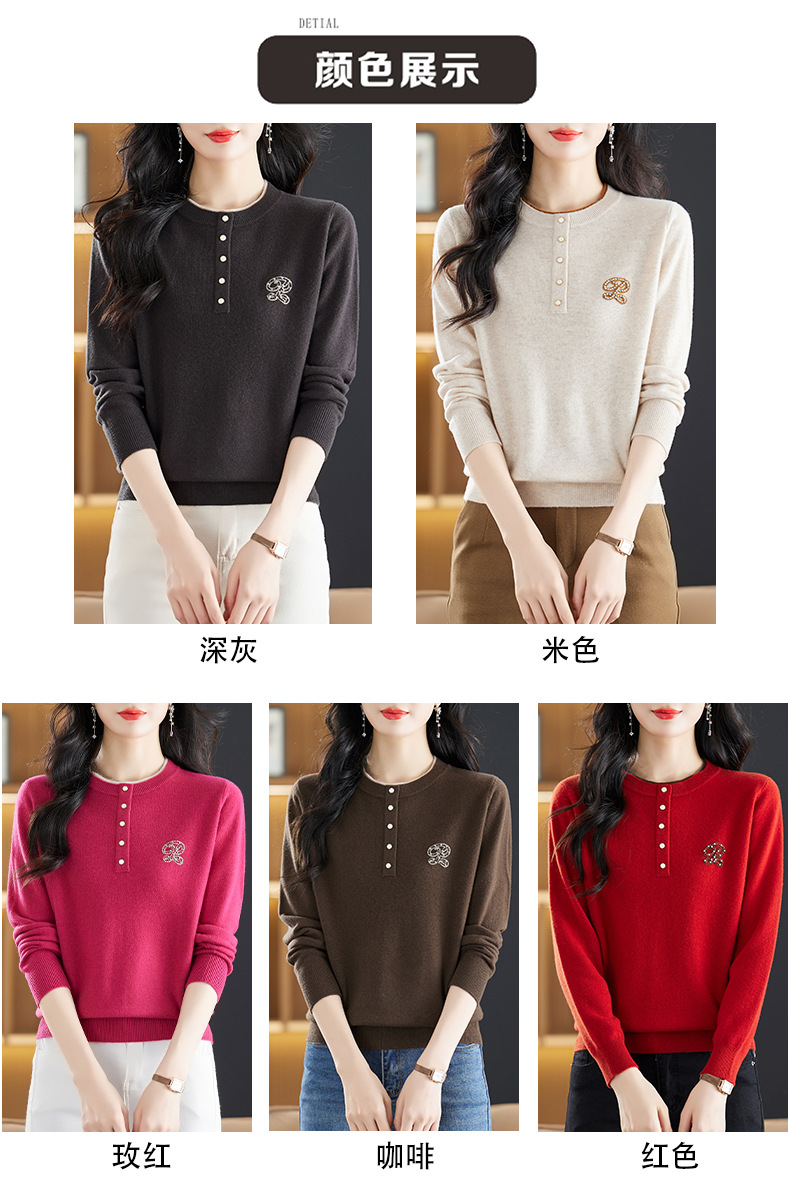 CC-DW-690短款长袖100纯羊毛衫女2024新款秋冬简约圆领打底衫针织毛衣
