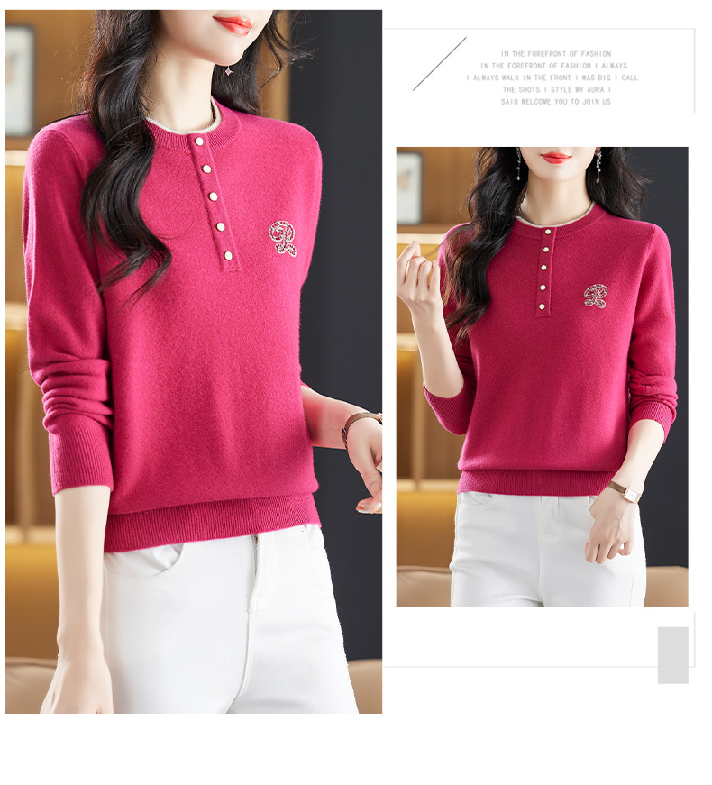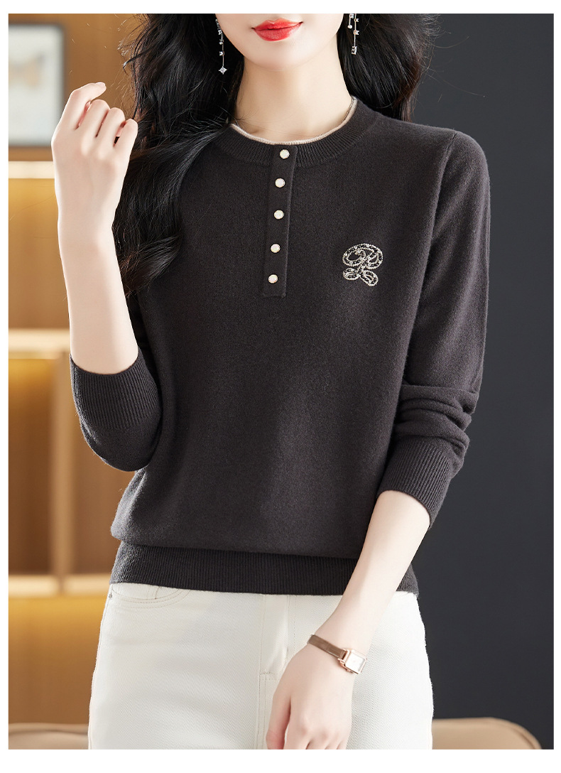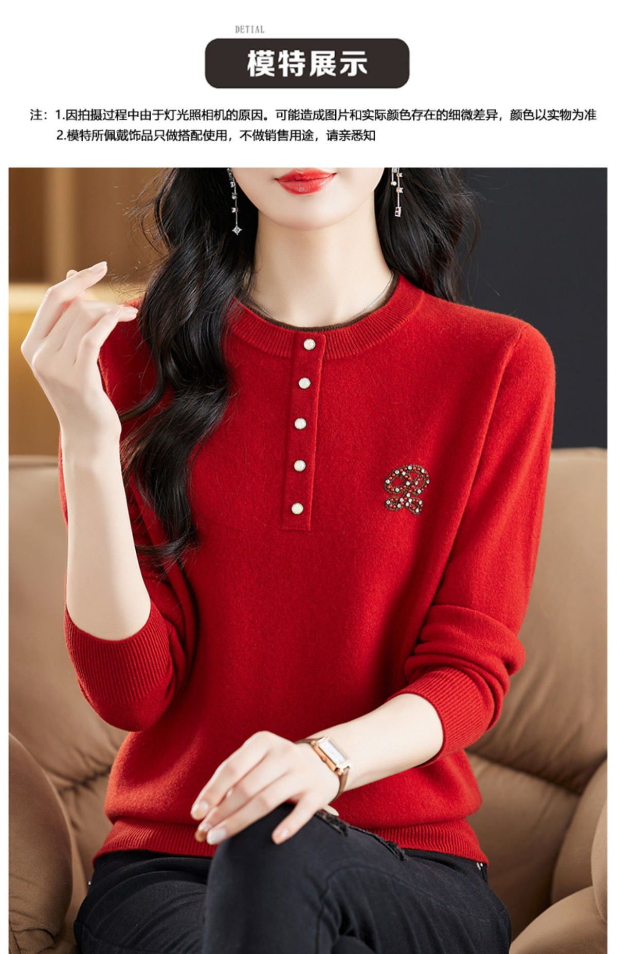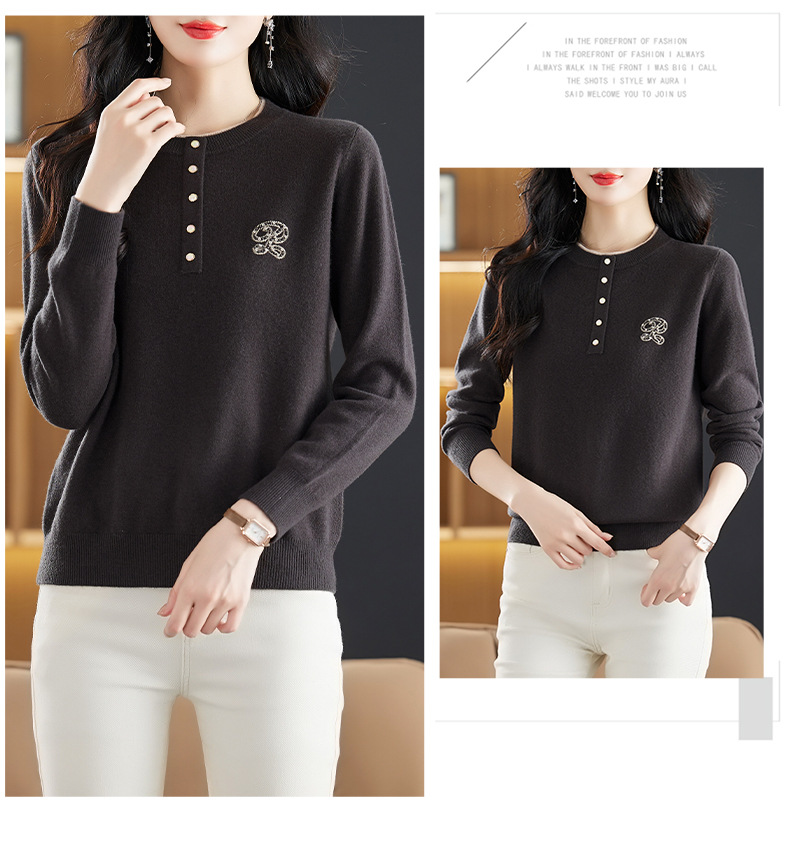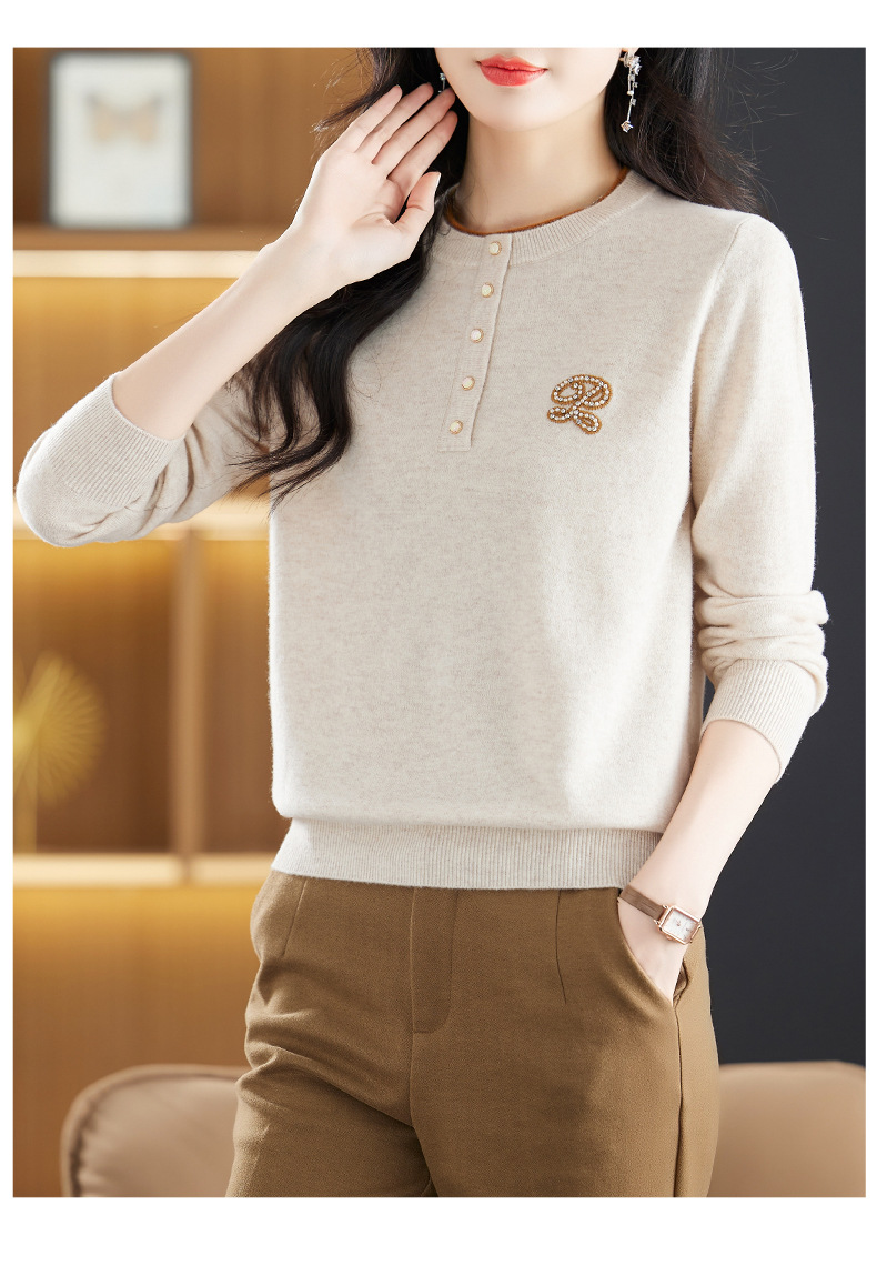 CC-DW-690短款长袖100纯羊毛衫女2024新款秋冬简约圆领打底衫针织毛衣