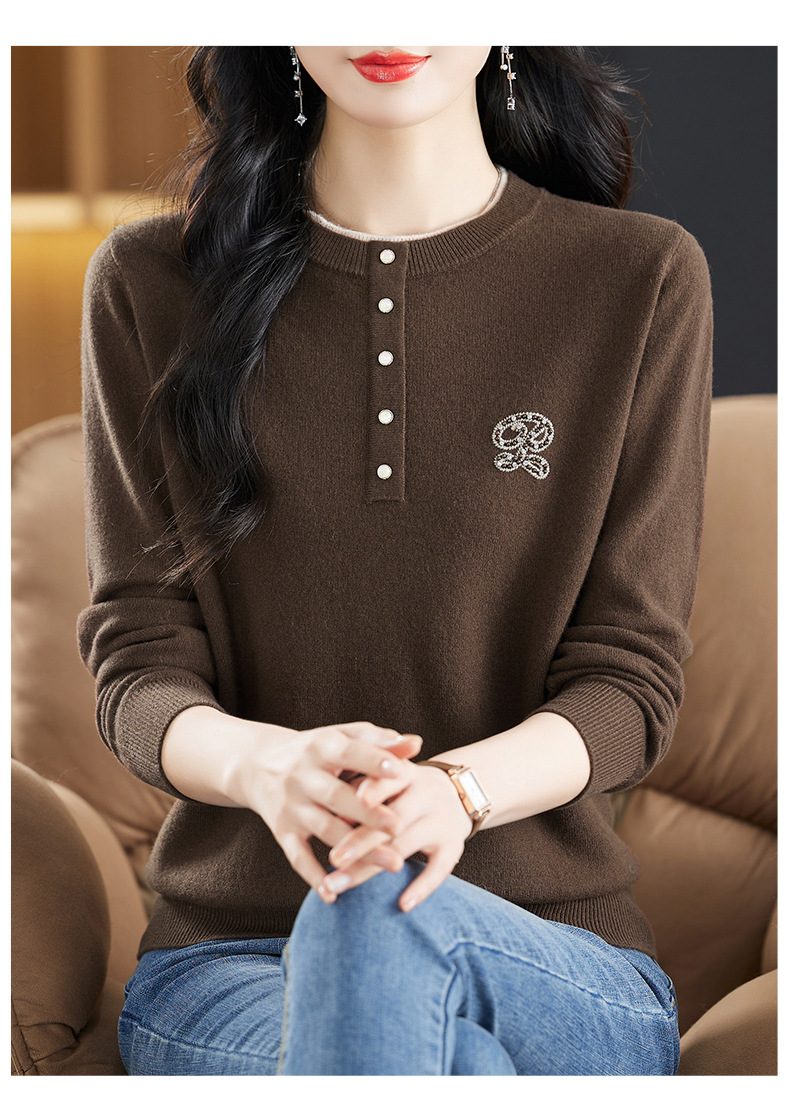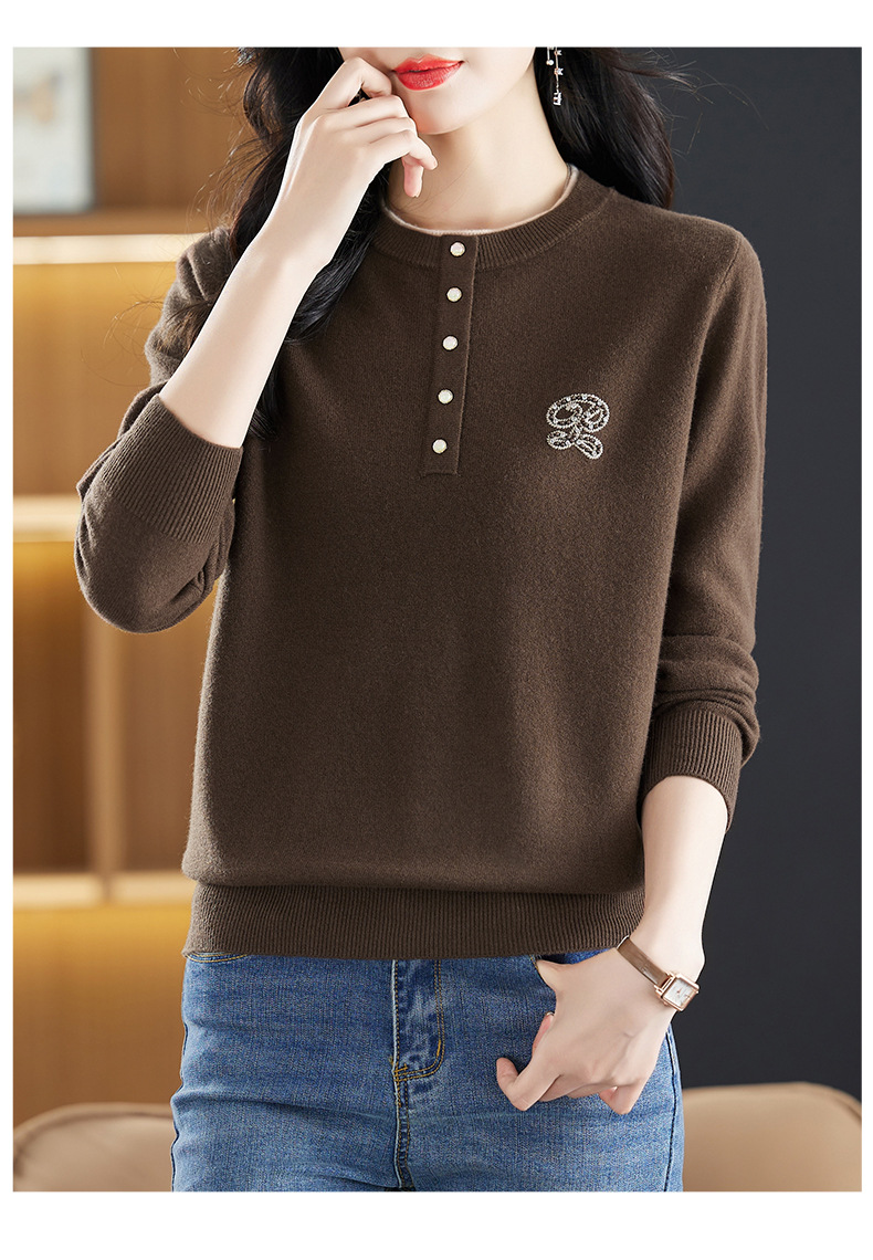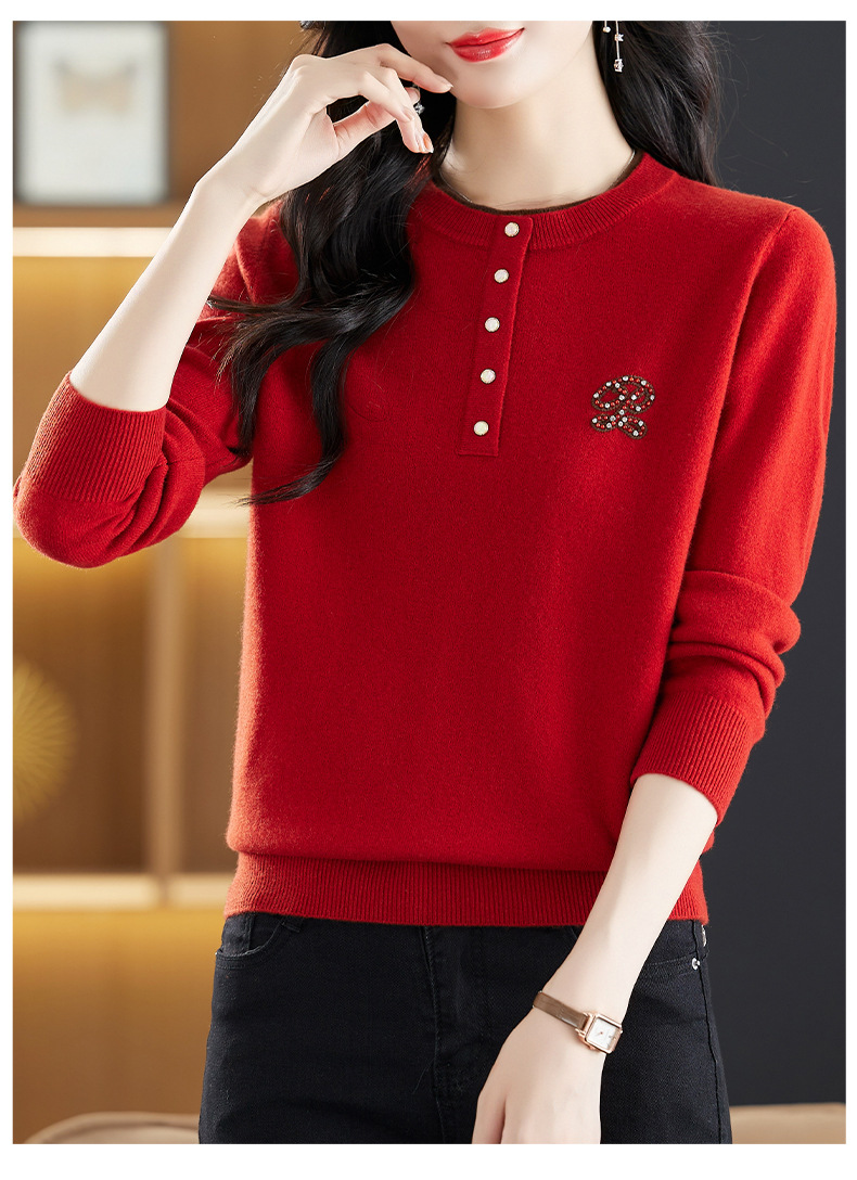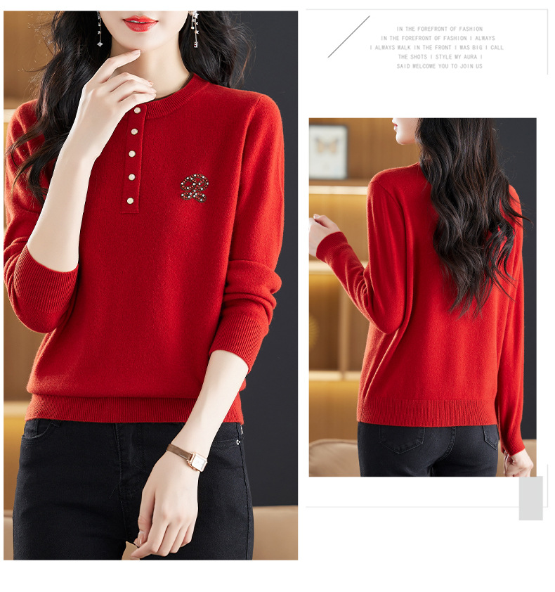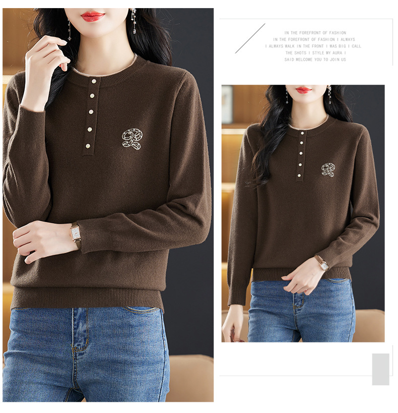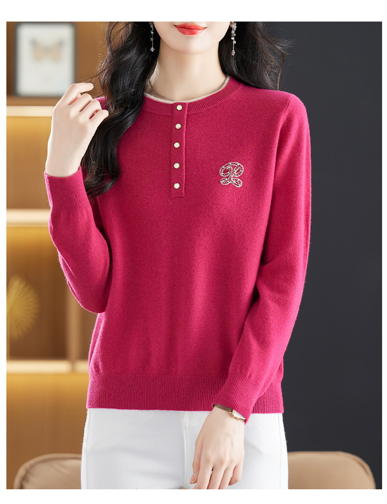 CC-DW-690短款长袖100纯羊毛衫女2024新款秋冬简约圆领打底衫针织毛衣