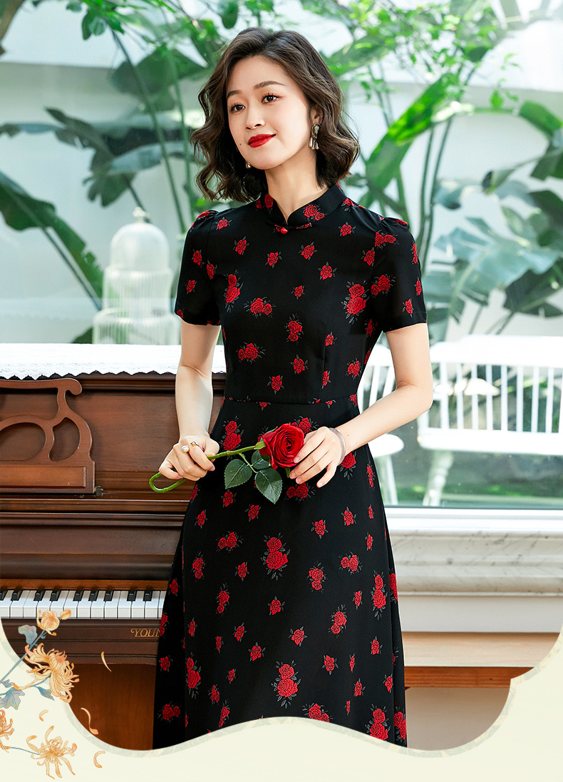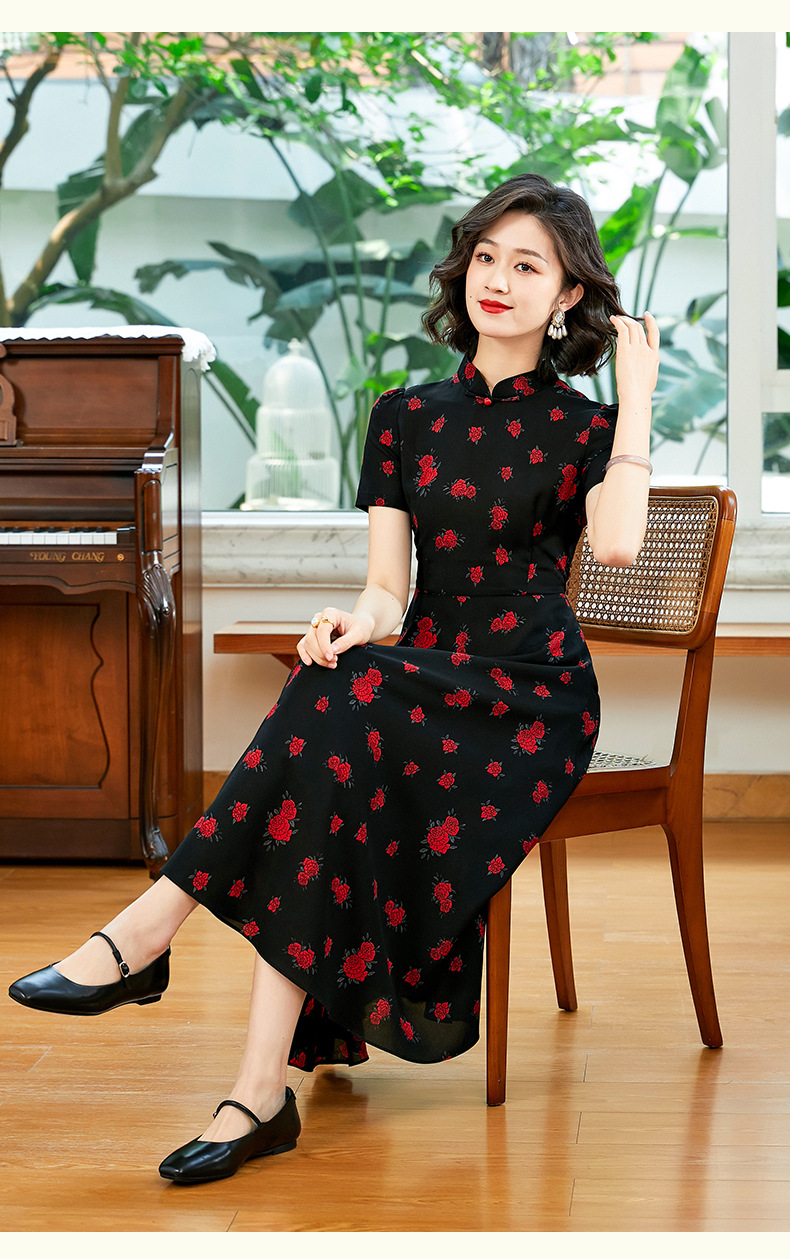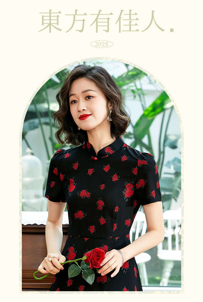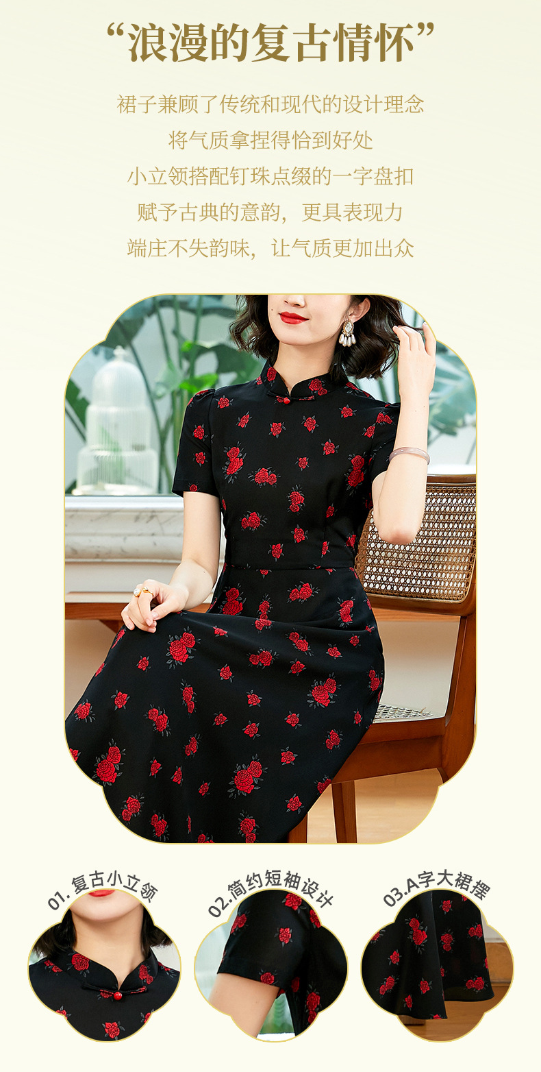 「自」全新升级【铂金会员257/天猫339/差价82】(13316)洛诗琳复古印花连衣裙2025夏季新款国风改良收腰显瘦裙子
