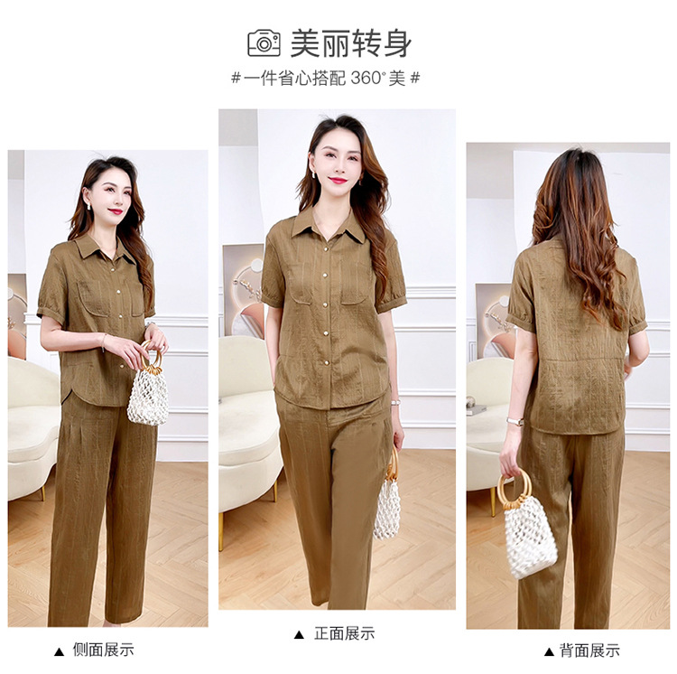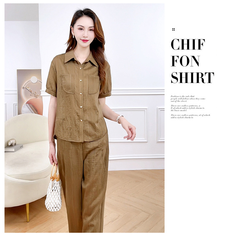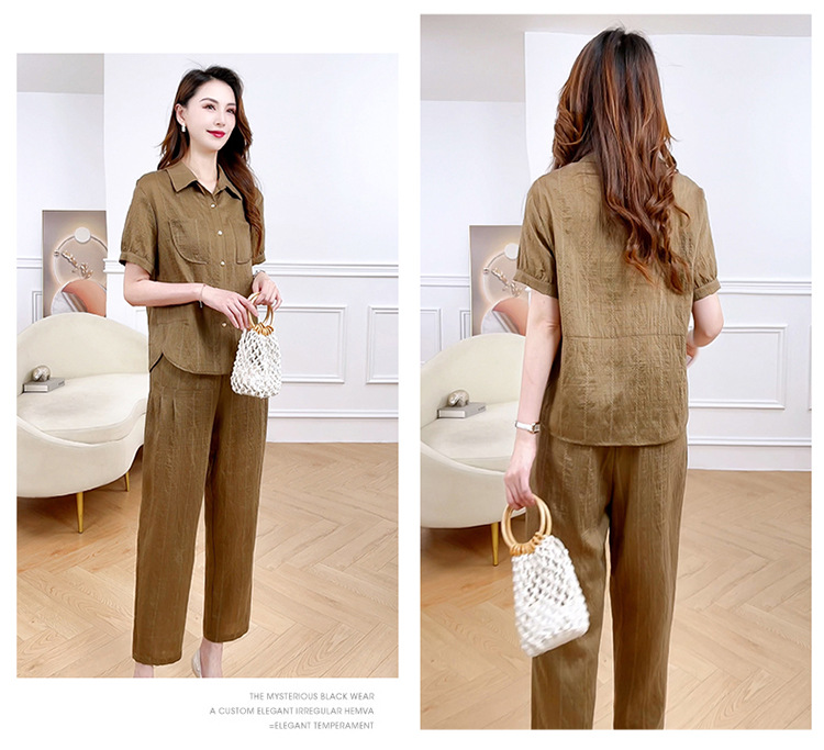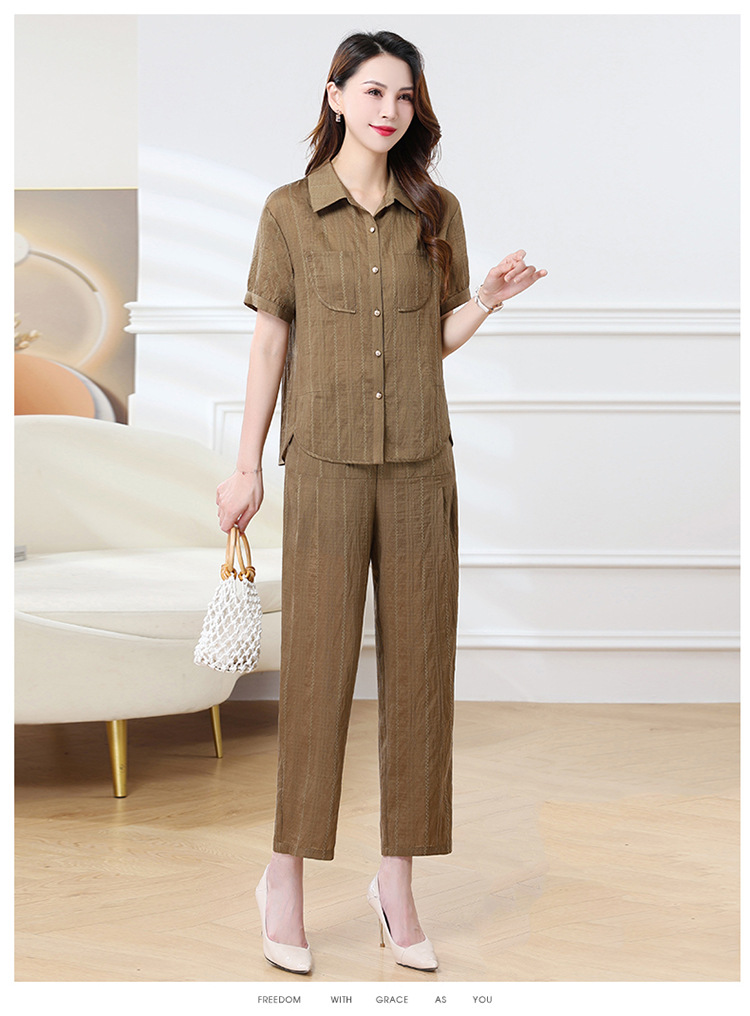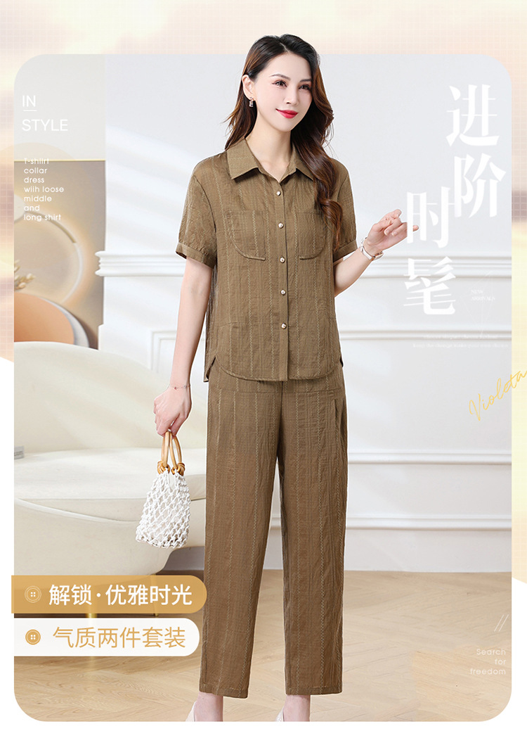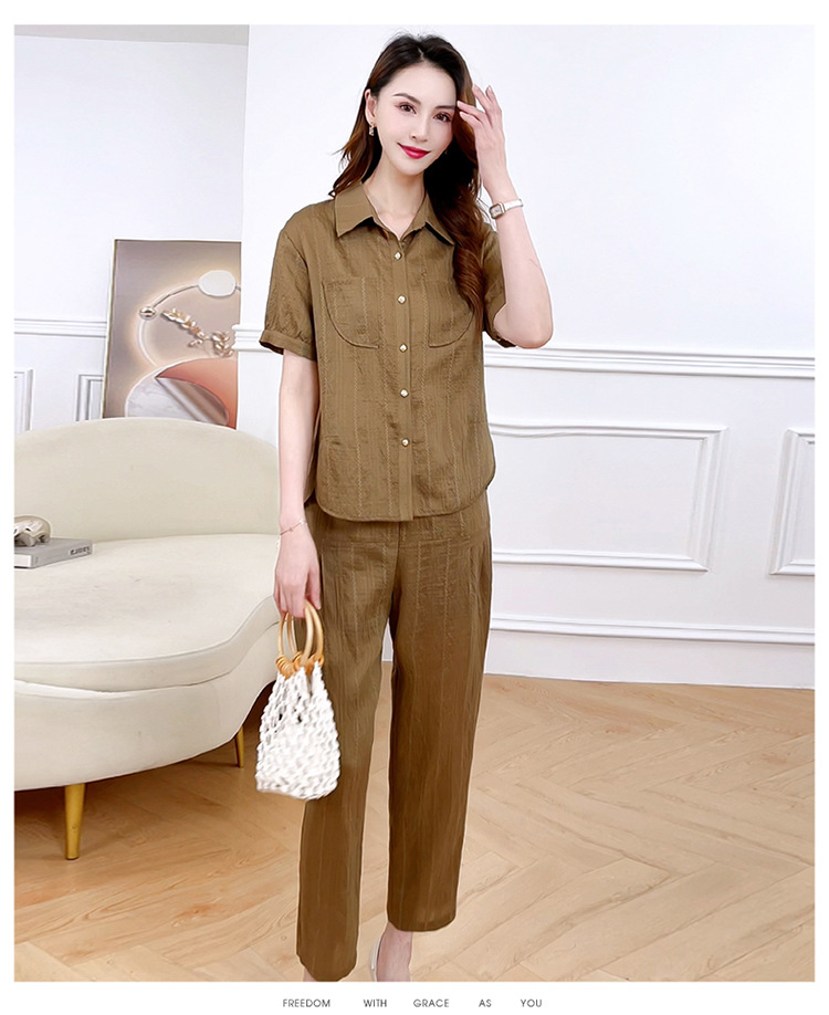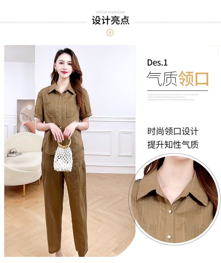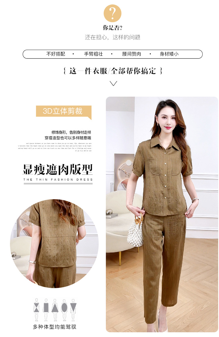 时尚POLO领短袖开衫,宽松显瘦休闲锥形裤两件套QYM-XYKL-48148-L