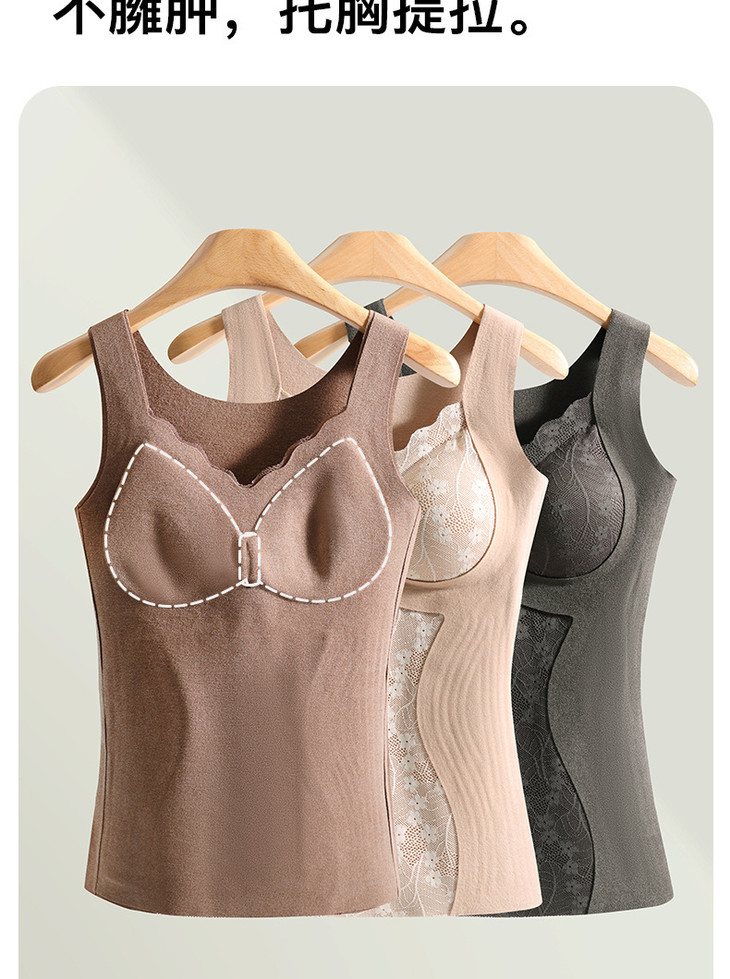 秋冬新款蕾丝收腹保暖背心免穿文胸加厚无痕保暖内衣打底发热上衣 商品图0