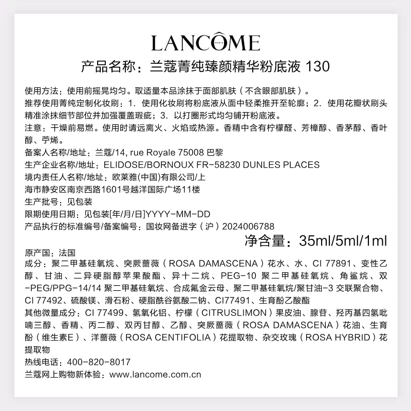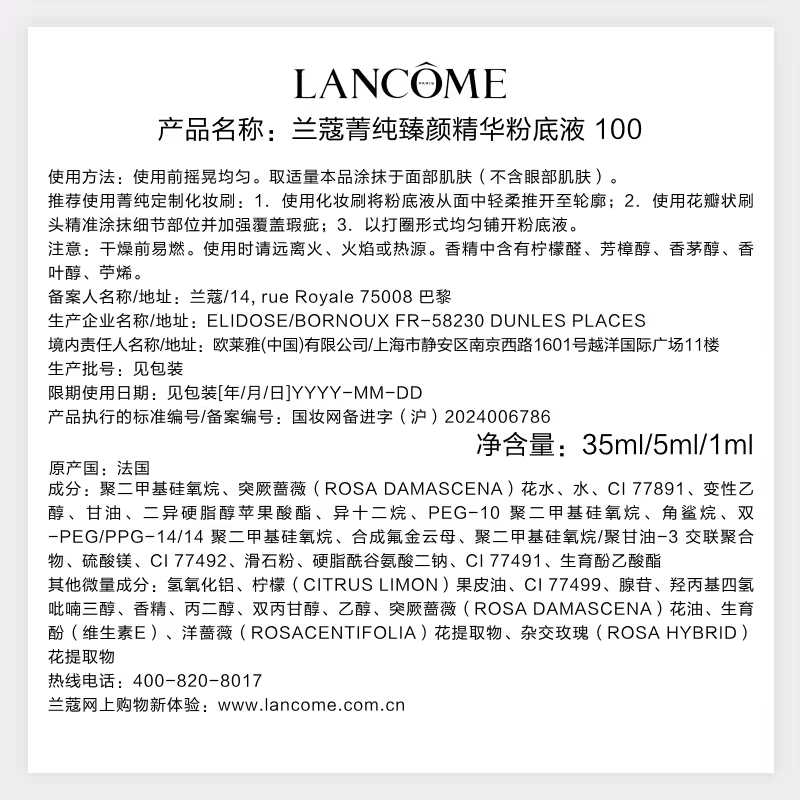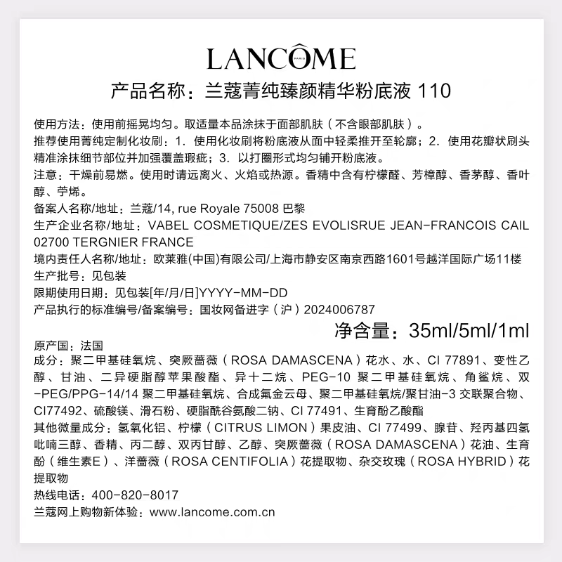 【3月】兰蔻菁纯粉底液35ml(图示赠品随机发货)