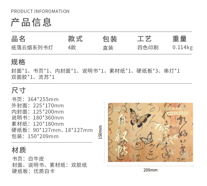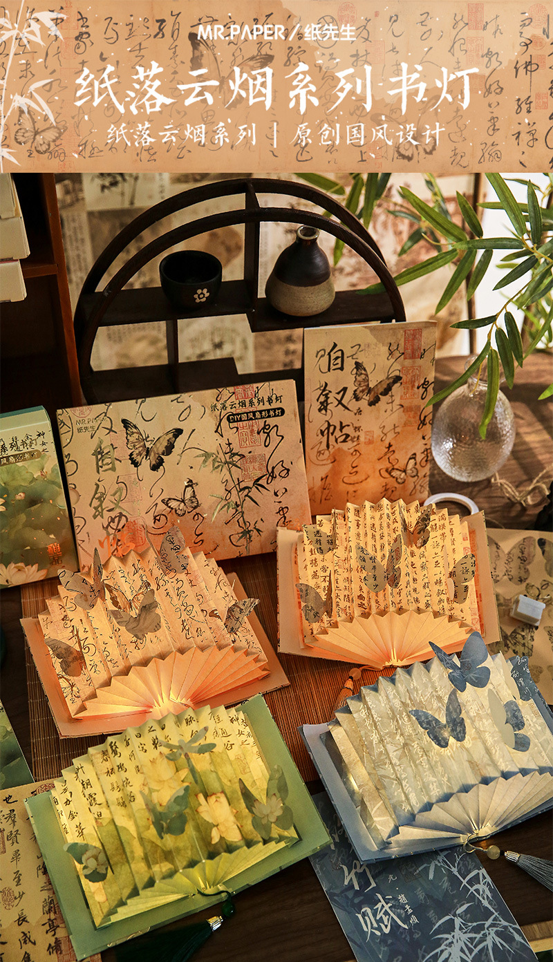 中秋节diy【纸先生国风桌面书灯】纸落云烟古风蝴蝶书法书灯 桌边摆件diy立体小夜灯 送朋友自留皆可